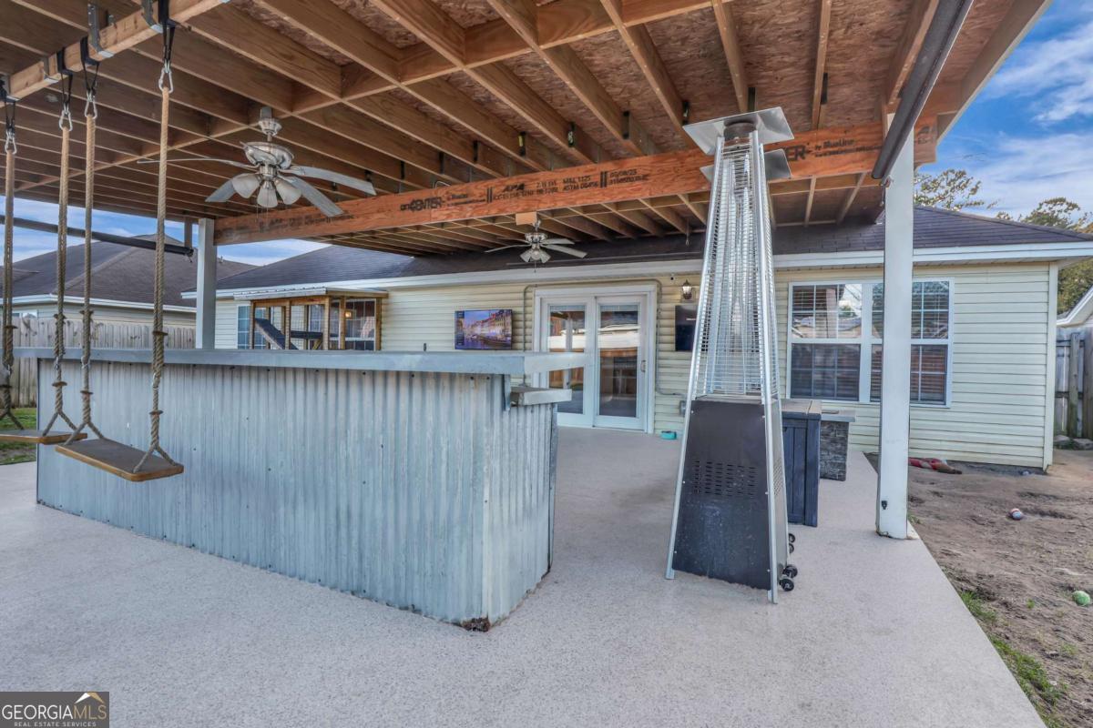 Your Holiday Home Awaits! Light up your life this Holiday Season in this spacious 3-bedroom, 2-bath home, a delightful gift with no HOA! The open layout is ideal for festive gatherings, flowing effortlessly from the living room-perfect for setting up your tree-to the eat in Kitchen. The split floor plan ensures comfort and privacy for your guests, with a private primary suite and two bedrooms conveniently situated on the opposite side. Step outside to the true holiday highlight: an amazing, expansive backyard patio for entertaining! Imagine celebrating under the huge covered patio, complete with roll-down shades, ceiling fans, and a built-in bar, ready for hot cocoa, holiday cocktails, or a festive cookout. A greenhouse is a special bonus for year-round joy! This home ready for its next chapter-and you are the author! Dont land on the Naughty list by missing your chance to own this Standout Pooler Property, and Santa will know! Schedule your showing today and unwrap your new home!
