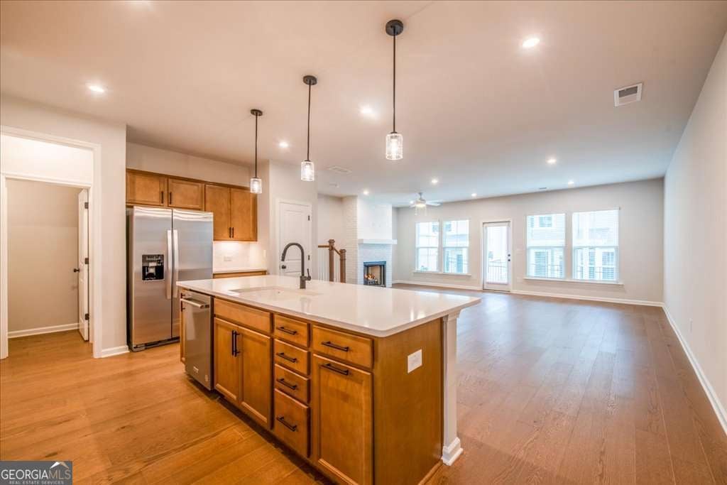 BE THE FIRST TO LIVE in this brand-new 2,035 SQ FT Cooper floorplan in the vibrant Adler Springs community! This home offers UNBEATABLE VALUE with AT&T FIBER INTERNET AND ALL LANDSCAPING INCLUDED IN THE RENT. Enjoy a maintenance-free lifestyle and high-speed connectivity at no extra cost. The main level features an open-concept layout with stunning hardwoods and a cozy fireplace. The gourmet kitchen is a chef's dream, boasting stone counters, a massive island, a 5-burner gas range, and premium stainless appliances. Retreat to the expansive Primary Suite featuring tray ceilings, a massive walk-in closet, and a spa-inspired bath with dual vanities and a bench-seated shower. An upstairs loft provides the perfect flex space for a home office or media room. ULTIMATE CONVENIENCE: Brand-new washer/dryer included in a dedicated laundry room with storage. Two-car garage with a level driveway. Steps from an entrance to the Silver Comet Trail and minutes from Historic Downtown Powder Springs. Community amenities include a pavilion, grill stations, and a dog park. Located in the McEachern High School district. Professionally managed and available for IMMEDIATE OCCUPANCY! RENTAL DETAILS & QUALIFICATIONS: Basic qualifications - combined monthly income 3x rent, and credit score of 620+ preferred (580 minimum considered with higher deposit). Requires steady employment/income, solid rental history, and no evictions or prior landlord debt. Charge-offs or other derogatory credit issues could impact approval. Tenant responsible for all utilities - landscaping, AT&T Fiber Internet, and HOA fees included in rent. Pet Policy: 1 dog under 20 lbs as an adult allowed - non-refundable pet deposit required. No smoking is allowed in any form. App fee: $65/adult. All occupants 18+ must submit separate applications and go through background screening.