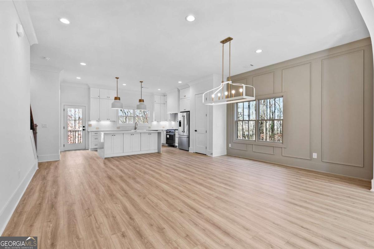 Discover the perfect fusion of luxury and leisure at Skyview on Broad, nestled in the heart of Downtown Sugar Hill. Kittle Homes,a 2 time Obie award recipient proudly presents a stunning new collection of three-story luxury townhomes, thoughtfully designed to complement your lifestyle. Entertain with ease in this expansive floorplan. Kitchen features sleek hood vented to the exterior, quartz countertops, designer backsplash, apron front sink and Bosch Appliances. Kitchen access to private deck from kitchen area. This open floorplan has an open-concept dining area and fireside family room with linear fireplace and tiles to ceiling for that transitional look that is perfect for everyday use or for entertaining. Owner's ensuite features freestanding tub, separate shower with frameless shower door with tiles to the ceiling, and double vanity. Two feature walls add class and charm to the home. The all-brick exteriors throughout the community evoke a sense of timeless luxury that will make anyone proud to call this home. Gas lanterns grace your front door to add charm and chic! Don't miss this opportunity to be part of one of Sugar Hill's most luxurious new construction communities where modern living meets hometown charm. Just outside your door, immerse yourself in the dynamic yet charming atmosphere of Sugar Hill's walkable Downtown. Explore an array of shops, restaurants, and entertainment options, all within reach. Year-round festivals and community celebrations bring the neighborhood to life, making it a welcoming and vibrant place for all ages. A community Dog Park is there for your pooch to run around and enjoy outdoors. PICTURES ARE OF MODEL HOME