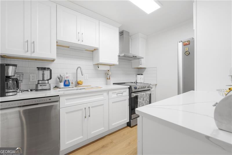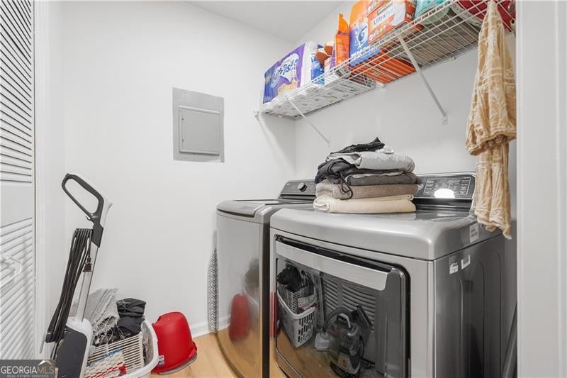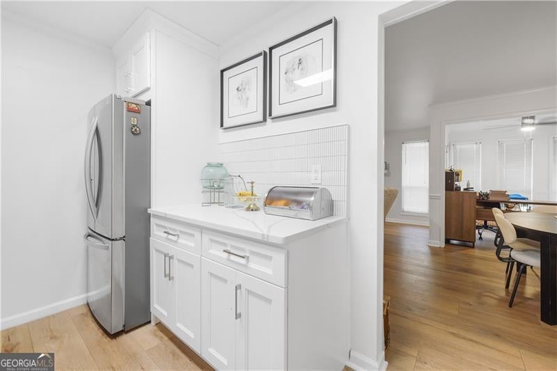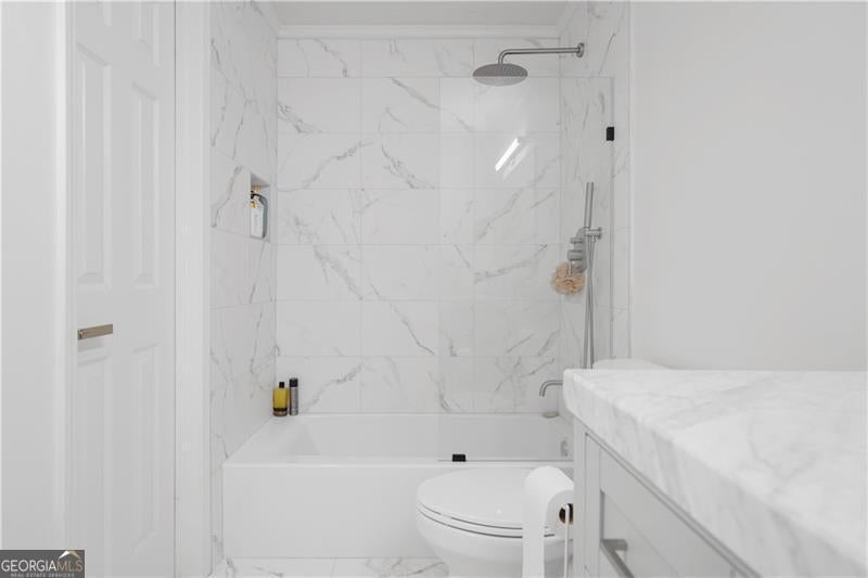 Discover a fully renovated 2-bedroom, 2-bathroom condominium in the gated Woodridge community of Tucker. This upper-level home was completely updated in November 2023 with high-end finishes, including luxury vinyl plank flooring throughout, porcelain tile in bathrooms, low-profile Kohler tubs, quartz countertops and backsplash, white shaker cabinets with soft-close hardware, and designer plumbing and light fixtures. The open roommate floor plan offers two spacious bedrooms, each with direct bathroom access, and a living room centered around a gas fireplace and private balcony. Community amenities include a saltwater swimming pool, pickleball courts, and secured gated entry. Residents enjoy a convenient location near I-85 and I-285, providing quick access to Downtown Atlanta, Buckhead, and major employment centers. Tucker is experiencing strong community investment, including the new Town Green park and event space, the Fitzgerald Park athletic complex renovation, and the Tucker Connects transportation initiative expanding pedestrian and trail networks. These improvements enhance long-term livability and value in the area. Education options include Livsey Elementary (highly rated), Tucker Middle, and Tucker High Schools, along with nearby private and charter schools. Georgia Piedmont Technical College and several Atlanta-area universities are within a short drive. This property combines turnkey living with strong community amenities and access to one of metro Atlanta's most active suburban growth corridors.