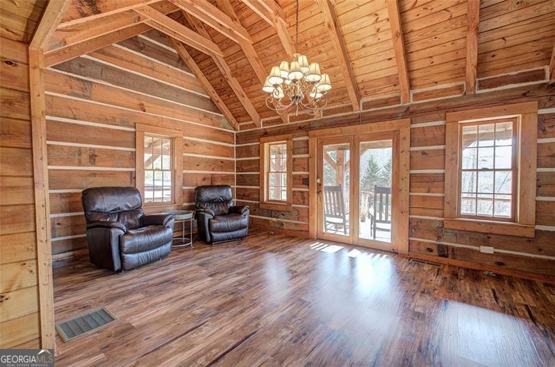 Discover true mountain living on this private 20-acre retreat atop Paris Mountain. This charming 2-bedroom, 1-bathroom cabin offers 1,390 sq. ft. of warm, inviting space with vinyl plank floors, wood walls, and wood ceilings accented by exposed wood beams, creating an authentic rustic atmosphere throughout. The kitchen features natural wood cabinets, granite countertops, and stainless steel appliances, blending mountain character with modern convenience. The cozy living room includes a wood-burning stove and a large bay window that fills the space with natural light and captures beautiful mountain views. The main level master bedroom offers a large walk-in closet that conveniently houses the laundry room. The beautifully finished bathroom includes a double vanity, clawfoot soaking tub, and a tile walk-in shower. Upstairs, the second bedroom provides a private, comfortable space for guests or family. A standout feature of this home is the expansive wraparound front porch, offering plenty of room to relax, socialize, and enjoy peaceful evenings. With porch swings and sweeping vistas, it's the perfect spot to take in stunning sunsets over the mountains. The property's 20 acres include a beautiful mixture of hardwoods and pines, creating a thriving habitat for wildlife. Deer and turkey are frequently seen on the land, and the property offers excellent hunting opportunities. A wet-weather creek runs through the acreage, adding charm, character, and natural beauty. There are also multiple potential homesites, ideal for those envisioning a family compound or additional cabins. Additional highlights include a gravel driveway, a private well housed in its own well house, and a large storage building for equipment or hobbies. A significant bonus is the 625 sq. ft. guesthouse/office space, perfect for visitors, remote work, or creative use. The home also features a brand-new HVAC unit installed in the Summer of 2025 for year-round comfort. Offering unmatched privacy, natural beauty, and true mountain charm, this property delivers the ultimate mountain lifestyle-quiet, scenic, and truly one of a kind.