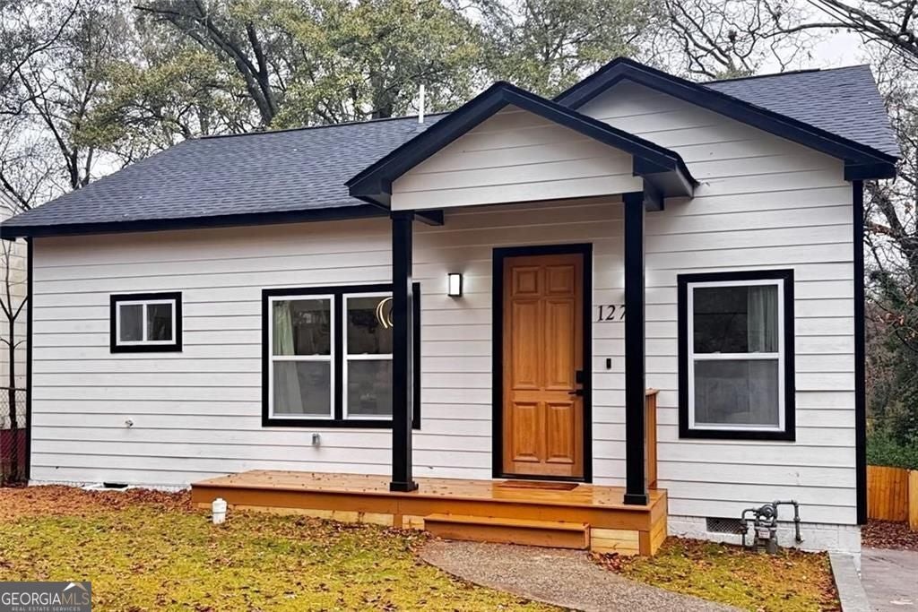 Welcome to your fully renovated home in East Point, yes, the one everyone's talking about. This property was redone with care and intention, featuring two bedrooms and two full bathrooms, a rare find for its original layout. You'll enjoy nine-foot ceilings, new windows, lots of light, new systems, new roof, fresh interior lighting, exterior Ring security lights, a doorbell camera, keyless entry, a new privacy fence in the backyard, and fresh sod in the front. This house is beautification at its finest but curb appeal here comes with a bit of character. The neighbor's siding has its own story, and the homes at the end of the block have tenure longer than your cousin's "temporary" stay on your couch. But step inside 1271 Pine Avenue, and it's a whole different story. Enter through the covered front porch into an open living, dining, and kitchen area, complete with a brand new appliance package and garbage disposal. Everything here is new and done right. The bathrooms are high-end and classically designed, with crisp white tile and river stone in the primary bath and clean white tile with a tub in the second. Both bedrooms include custom shelving built into the closets. The hallway laundry area accommodates a full-size side-by-side setup and is enclosed with doors for organization. Located near Tri-Cities High School, Kipp Academy, East Point MARTA station, the PATH Trail, and just a quick ride into downtown Atlanta, this home delivers convenience and value for working professionals, and anyone who knows a good underdog story when they see one. This home is move-in ready.