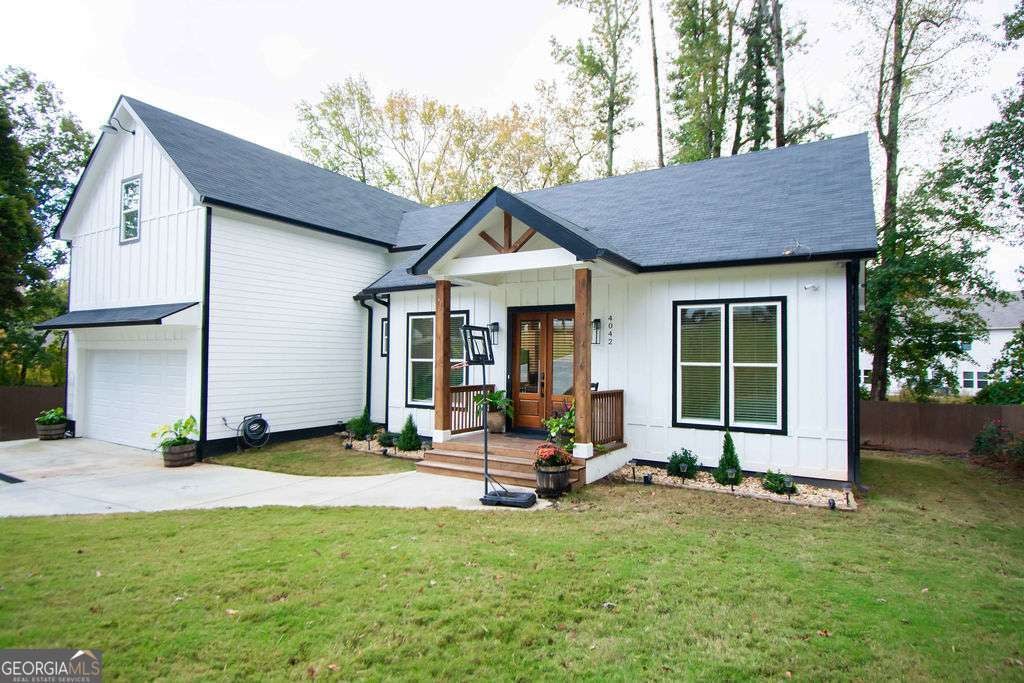 Nestled in the serene and sought-after community of Oakwood, Georgia, this impeccably crafted 2023 traditional residence offers a harmonious blend of modern elegance and functional design, inviting you into a lifestyle of comfort and convenience from the moment you arrive at 4042 Brock Drive. As you approach, the charming cement and wood siding exterior and beautifully landscaped, private 0.43-acre lot with a gently sloped yard and welcoming front porch set a tone of refined curb appeal. Step inside to be greeted by an open-concept layout where natural light pours through double-pane windows, highlighting the warm laminate and tile flooring and flowing seamlessly from the entrance foyer into the heart of the home-a stunning kitchen featuring crisp white cabinets, a spacious eat-in island, pantry, and sweeping views into the family room, perfect for both everyday living and entertaining. The main level boasts a luxurious master suite with a spa-like shower and double vanity, offering a peaceful retreat, while two additional bedrooms upstairs provide ample space for family or guests. Thoughtful upgrades like disappearing attic stairs, a dedicated office or computer room, and a versatile bonus room enhance the home's appeal, and the rear deck and porch offer serene vistas of the wooded surroundings, ideal for morning coffee or evening relaxation. Spray foam encapsulation of the whole house-tile in all bathrooms. Beyond the property, its prime location in Hall County ensures easy access to major highways including I-985, placing you minutes from vibrant shopping, dining, and entertainment options at nearby commercial hubs like the Mall of Georgia area and downtown Gainesville, while top-rated West Hall schools and recreational opportunities add to the community's allure. With a convenient two-car garage, energy-efficient gas heating and central cooling, and no HOA restrictions, this home is a rare find that combines move-in-ready sophistication with an unbeatable location-schedule your private tour today to experience firsthand the exceptional lifestyle that awaits.