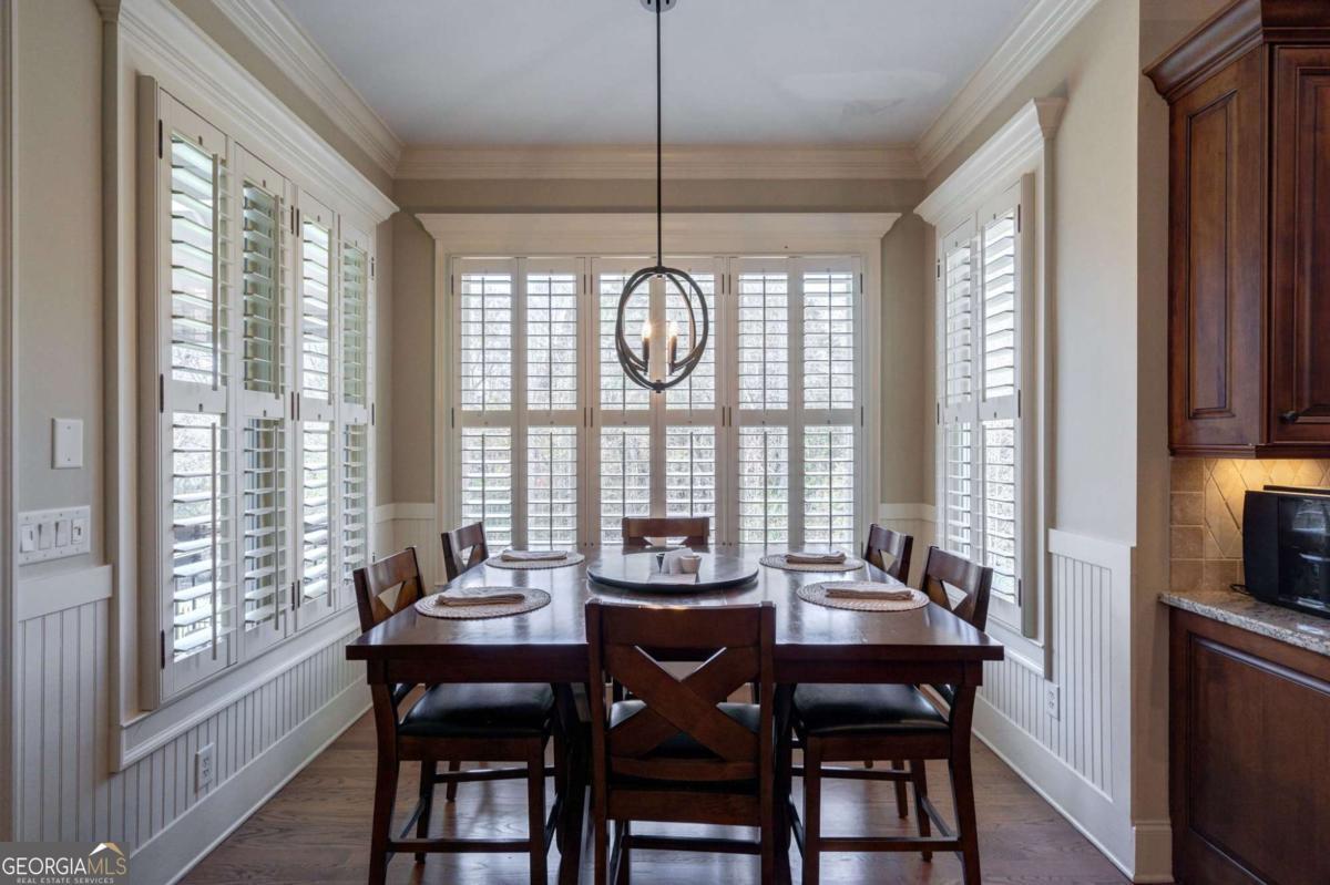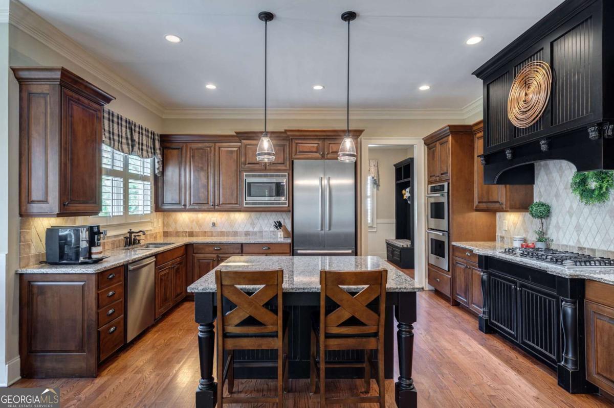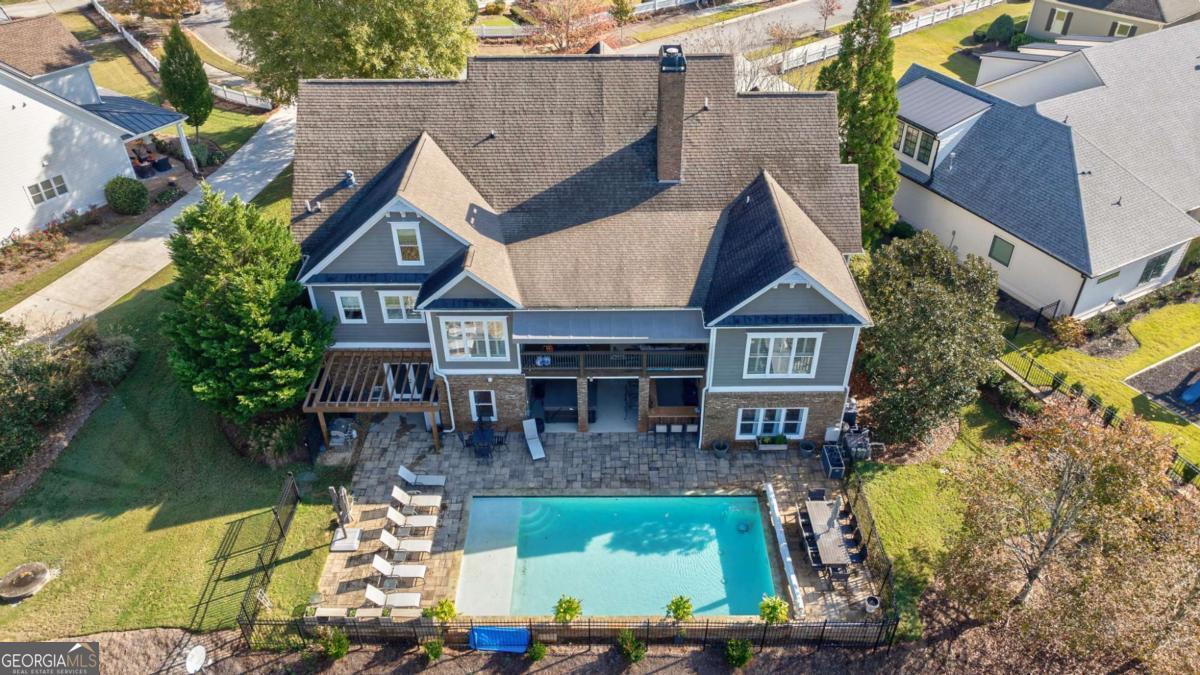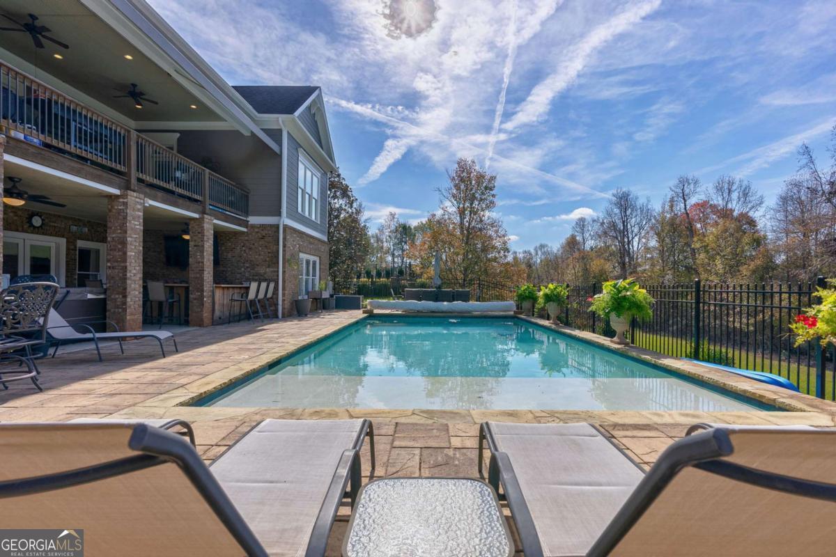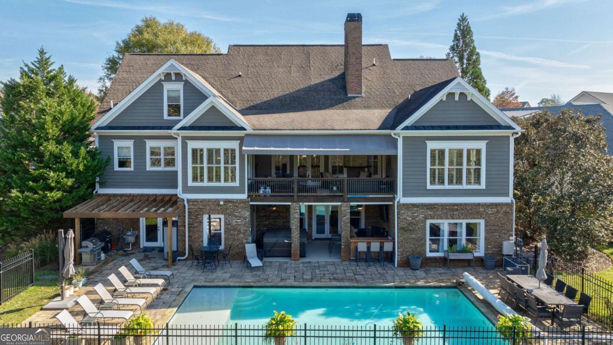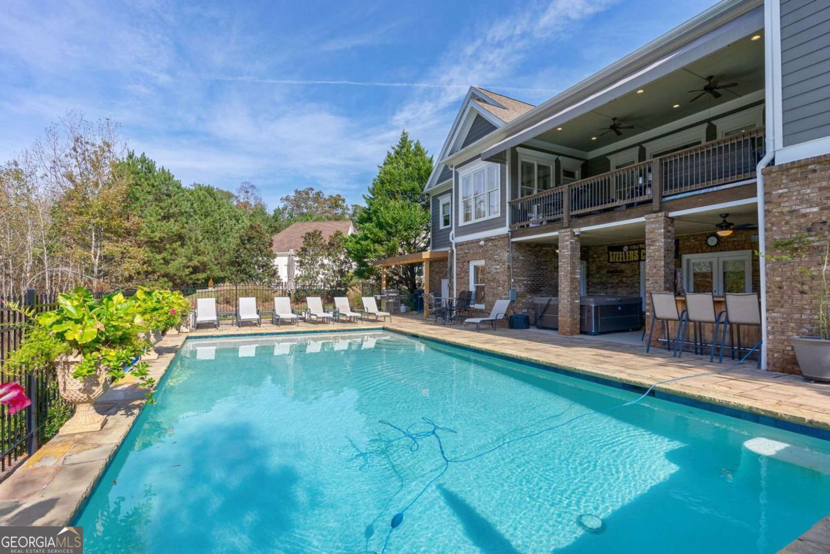 Nestled within the prestigious Georgia Club, this stunning 5-bedroom, 4-bathroom home offers an exquisite blend of luxury and comfort. The house sits on a beautifully landscaped lot, featuring a fully finished basement and a private backyard oasis complete with a shimmering pool, perfect for those warm Georgia days. The exterior, with its classic gray siding and white trim, exudes charm, complemented by a welcoming front porch that invites you into the house. As you step into the foyer, youre greeted by the rich, gleaming hardwood floors that lead your eyes towards the open layout ahead, with a staircase to the left inviting you upstairs. The formal dining room, visible to the right from the foyer, boasts elegant wainscoting, a soft green hue on the walls, and large windows that allow natural light to flood the space, creating an inviting atmosphere for gatherings. The kitchen, located to the right of the great room, features inviting design with rich wooden cabinetry, granite countertops, a central island, and stainless steel appliances, all complemented by pendant lighting and a stylish backsplash, creating a functional and aesthetically pleasing cooking space. On the left side of the main floor, you are greeted by a refined home office, distinguished by its built-in cabinetry and the warmth of hardwood flooring, ideal for work or contemplation. Steps away lies a practical full guest bathroom, enhancing the homes hospitality. Also on this side is the expansive master bedroom, a haven of comfort and elegance, which opens into a master bath designed for indulgence. The bathroom features a spacious walk-in shower, a soothing jacuzzi tub, his and her vanities for personal space, and a large custom closet that answers every storage need with style. Upstairs features two large bathrooms, a third bathroom, a spacious office, and ample attic storage space for all needs. The covered deck, accessible from both the breakfast area, great room and the master bedroom, offers a tranquil retreat with its expansive deck area. Its designed for relaxation and entertainment, featuring ample space for seating and dining, all under the protection of a awning. The newly renovated basement presents a versatile and inviting space, featuring a bar area with countertops and pendant lighting, perfect for social gatherings. Adjacent to the bar, the open layout seamlessly transitions into various functional areas, including a full bathroom for convenience, a dedicated workshop for DIY projects, a designated workout area for fitness enthusiasts, and a cozy bedroom for guests or family. Additionally, the basement includes a practical storage garage specifically for pool equipment and a golf cart, ensuring all leisure needs are catered to within the home. The overall design combines utility with comfort, making it an ideal space for both relaxation and productivity. This outdoor area features a sparkling pool for refreshing dips, a soothing hot tub for relaxation, and an outdoor bar setup perfect for entertaining. The space is designed for leisure and social gatherings, offering a blend of comfort and luxury with ample seating and shade. The Georgia Club itself is a paradise for those who love the outdoors and community activities. With a championship 27-hole golf course designed to challenge and delight players of all skill levels, a club house for social gatherings, a remodeled fitness center, and not one but two pools for community enjoyment, theres always something to do. Add to this the convenience of on-site pickleball and tennis courts, playgrounds, and beautifully maintained parks, and you have a community that supports an active and engaged lifestyle. The houses location within this gated community offers both privacy and security, making it an ideal retreat for families or anyone looking for a serene environment. The Georgia Clubs amenities and this homes features make it not just a residence, but a lifestyle choice. Dont miss out!