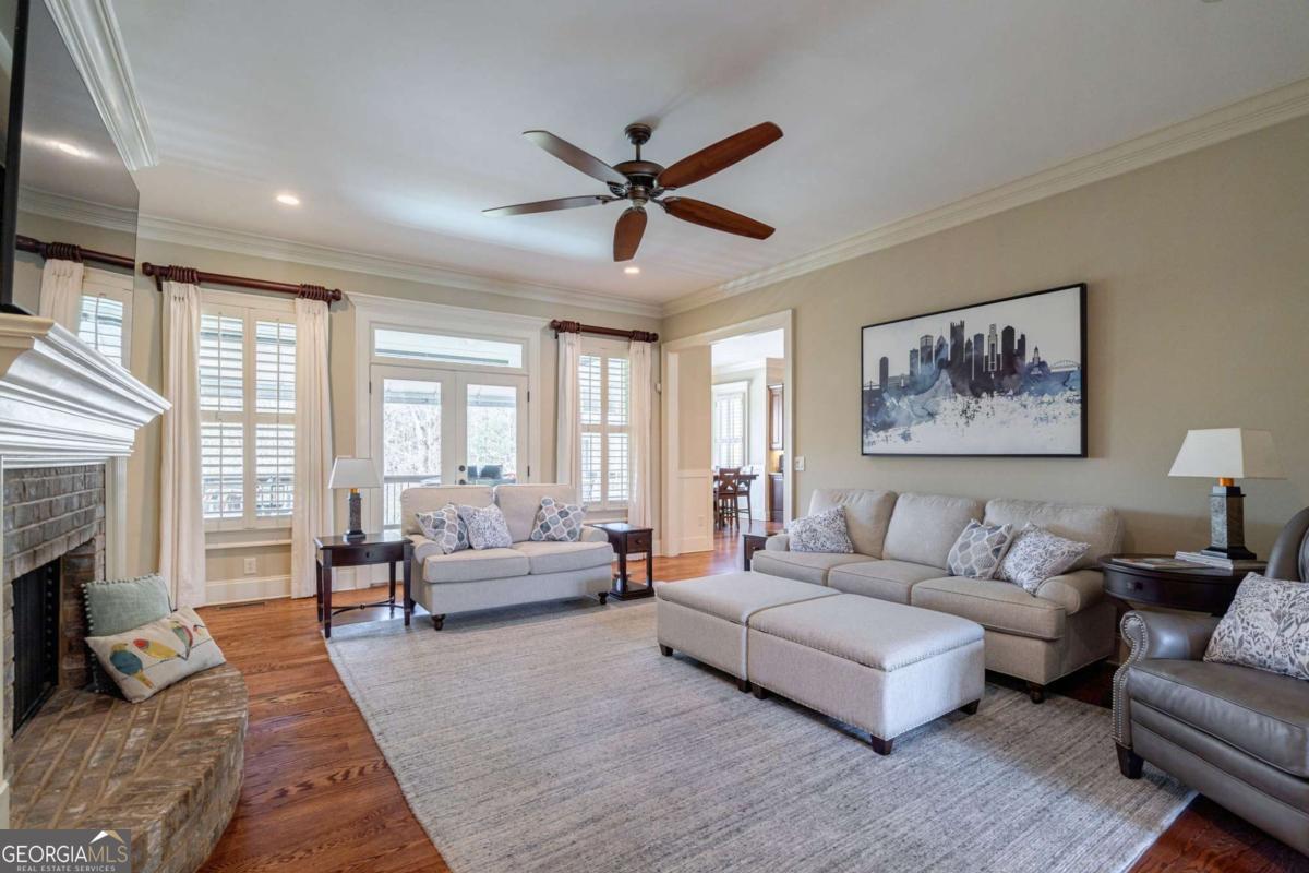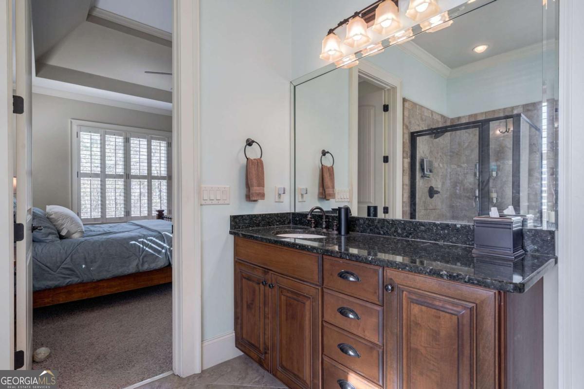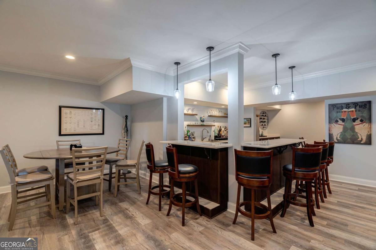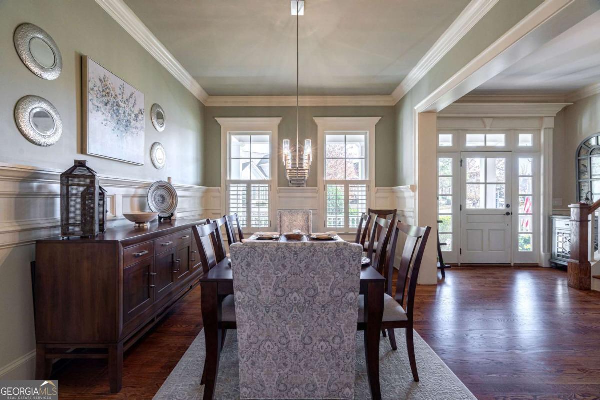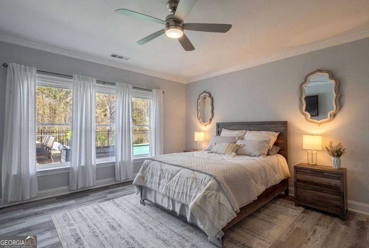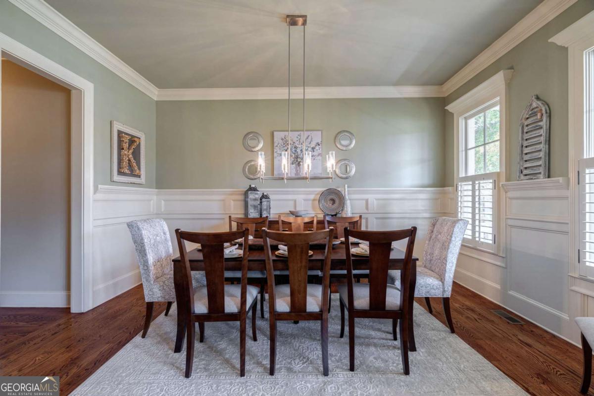 Nestled within the prestigious Georgia Club, this stunning 5-bedroom, 4-bathroom home offers an exquisite blend of luxury and comfort. The house sits on a beautifully landscaped lot, featuring a fully finished basement and a private backyard oasis complete with a shimmering pool, perfect for those warm Georgia days. The exterior, with its classic gray siding and white trim, exudes charm, complemented by a welcoming front porch that invites you into the house. As you step into the foyer, youre greeted by the rich, gleaming hardwood floors that lead your eyes towards the open layout ahead, with a staircase to the left inviting you upstairs. The formal dining room, visible to the right from the foyer, boasts elegant wainscoting, a soft green hue on the walls, and large windows that allow natural light to flood the space, creating an inviting atmosphere for gatherings. The kitchen, located to the right of the great room, features inviting design with rich wooden cabinetry, granite countertops, a central island, and stainless steel appliances, all complemented by pendant lighting and a stylish backsplash, creating a functional and aesthetically pleasing cooking space. On the left side of the main floor, you are greeted by a refined home office, distinguished by its built-in cabinetry and the warmth of hardwood flooring, ideal for work or contemplation. Steps away lies a practical full guest bathroom, enhancing the homes hospitality. Also on this side is the expansive master bedroom, a haven of comfort and elegance, which opens into a master bath designed for indulgence. The bathroom features a spacious walk-in shower, a soothing jacuzzi tub, his and her vanities for personal space, and a large custom closet that answers every storage need with style. Upstairs features two large bathrooms, a third bathroom, a spacious office, and ample attic storage space for all needs. The covered deck, accessible from both the breakfast area, great room and the master bedroom, offers a tranquil retreat with its expansive deck area. Its designed for relaxation and entertainment, featuring ample space for seating and dining, all under the protection of a awning. The newly renovated basement presents a versatile and inviting space, featuring a bar area with countertops and pendant lighting, perfect for social gatherings. Adjacent to the bar, the open layout seamlessly transitions into various functional areas, including a full bathroom for convenience, a dedicated workshop for DIY projects, a designated workout area for fitness enthusiasts, and a cozy bedroom for guests or family. Additionally, the basement includes a practical storage garage specifically for pool equipment and a golf cart, ensuring all leisure needs are catered to within the home. The overall design combines utility with comfort, making it an ideal space for both relaxation and productivity. This outdoor area features a sparkling pool for refreshing dips, a soothing hot tub for relaxation, and an outdoor bar setup perfect for entertaining. The space is designed for leisure and social gatherings, offering a blend of comfort and luxury with ample seating and shade. The Georgia Club itself is a paradise for those who love the outdoors and community activities. With a championship 27-hole golf course designed to challenge and delight players of all skill levels, a club house for social gatherings, a remodeled fitness center, and not one but two pools for community enjoyment, theres always something to do. Add to this the convenience of on-site pickleball and tennis courts, playgrounds, and beautifully maintained parks, and you have a community that supports an active and engaged lifestyle. The houses location within this gated community offers both privacy and security, making it an ideal retreat for families or anyone looking for a serene environment. The Georgia Clubs amenities and this homes features make it not just a residence, but a lifestyle choice. Dont miss out!