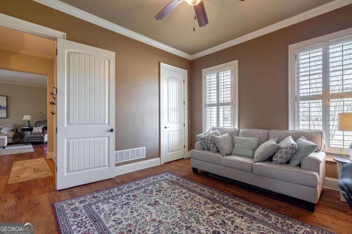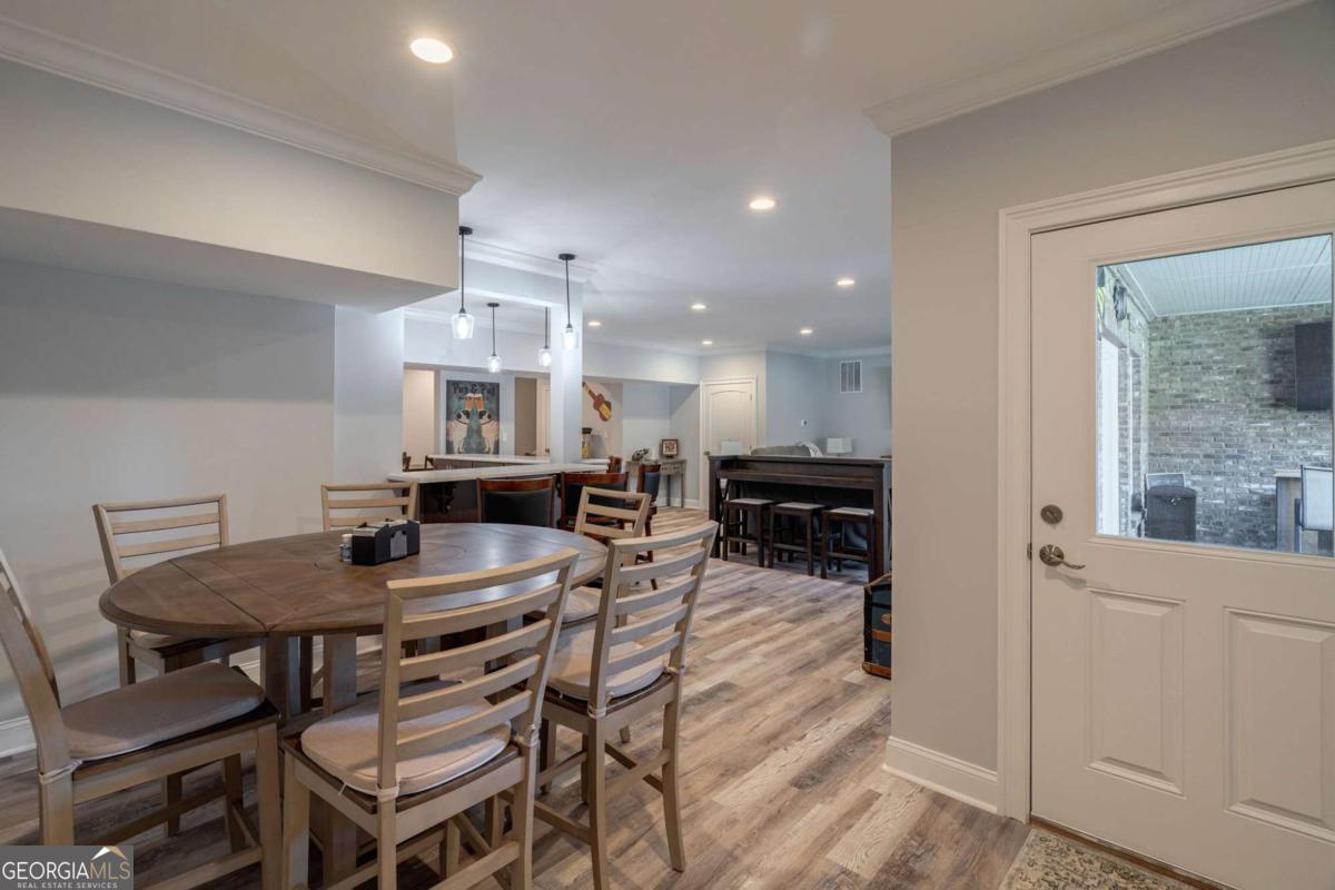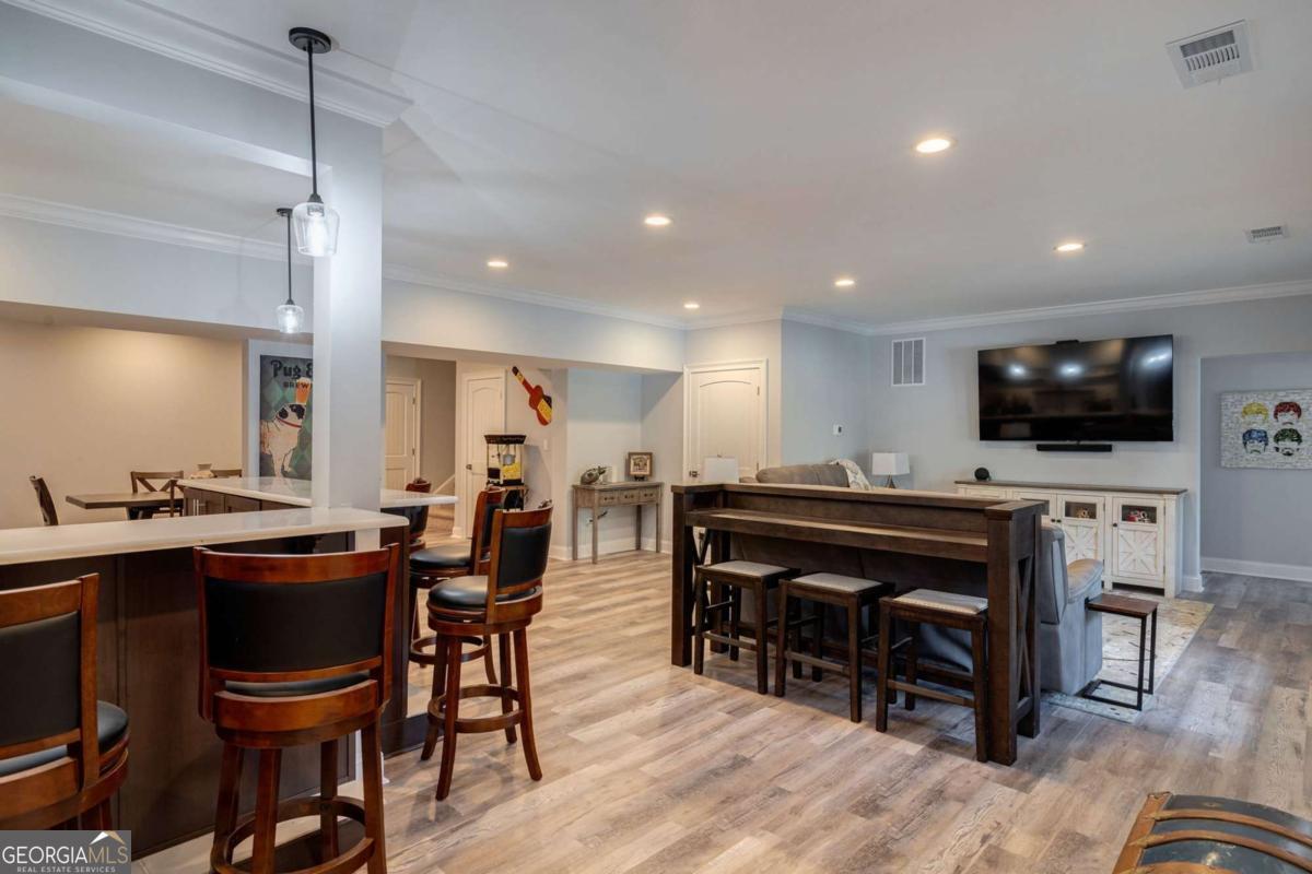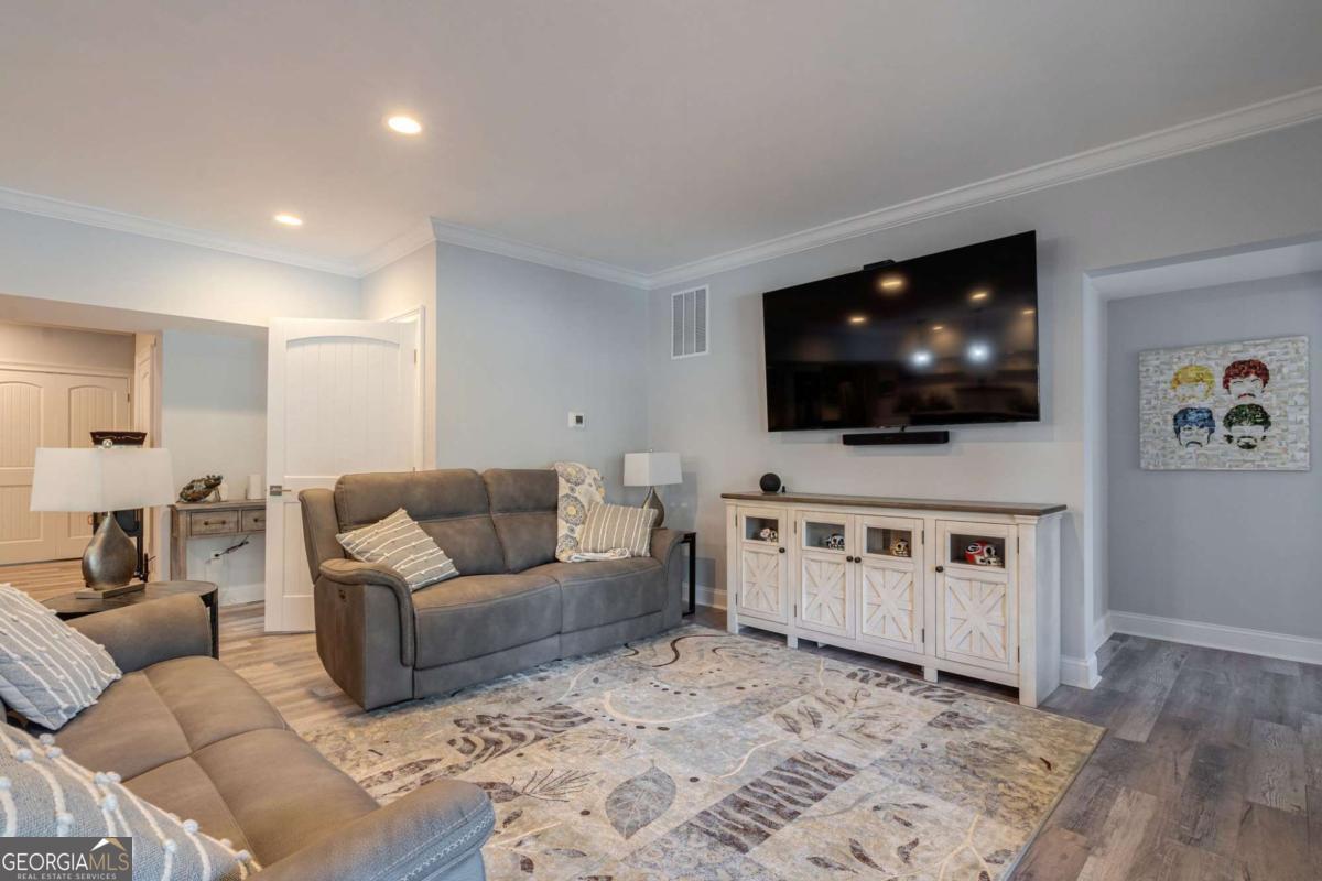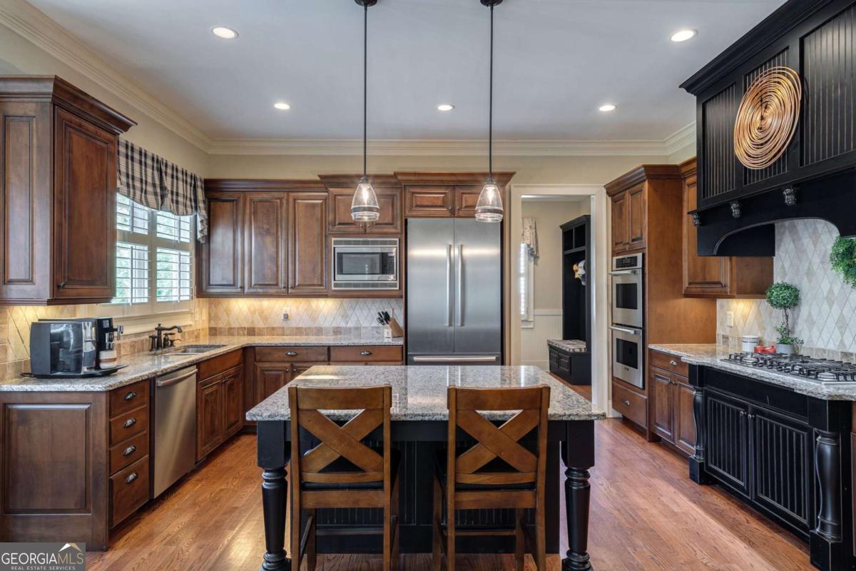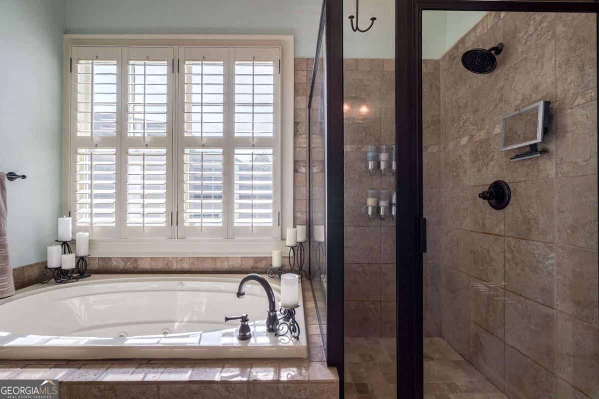 Nestled within the prestigious Georgia Club, this stunning 5-bedroom, 4-bathroom home offers an exquisite blend of luxury and comfort. The house sits on a beautifully landscaped lot, featuring a fully finished basement and a private backyard oasis complete with a shimmering pool, perfect for those warm Georgia days. The exterior, with its classic gray siding and white trim, exudes charm, complemented by a welcoming front porch that invites you into the house. As you step into the foyer, youre greeted by the rich, gleaming hardwood floors that lead your eyes towards the open layout ahead, with a staircase to the left inviting you upstairs. The formal dining room, visible to the right from the foyer, boasts elegant wainscoting, a soft green hue on the walls, and large windows that allow natural light to flood the space, creating an inviting atmosphere for gatherings. The kitchen, located to the right of the great room, features inviting design with rich wooden cabinetry, granite countertops, a central island, and stainless steel appliances, all complemented by pendant lighting and a stylish backsplash, creating a functional and aesthetically pleasing cooking space. On the left side of the main floor, you are greeted by a refined home office, distinguished by its built-in cabinetry and the warmth of hardwood flooring, ideal for work or contemplation. Steps away lies a practical full guest bathroom, enhancing the homes hospitality. Also on this side is the expansive master bedroom, a haven of comfort and elegance, which opens into a master bath designed for indulgence. The bathroom features a spacious walk-in shower, a soothing jacuzzi tub, his and her vanities for personal space, and a large custom closet that answers every storage need with style. Upstairs features two large bathrooms, a third bathroom, a spacious office, and ample attic storage space for all needs. The covered deck, accessible from both the breakfast area, great room and the master bedroom, offers a tranquil retreat with its expansive deck area. Its designed for relaxation and entertainment, featuring ample space for seating and dining, all under the protection of a awning. The newly renovated basement presents a versatile and inviting space, featuring a bar area with countertops and pendant lighting, perfect for social gatherings. Adjacent to the bar, the open layout seamlessly transitions into various functional areas, including a full bathroom for convenience, a dedicated workshop for DIY projects, a designated workout area for fitness enthusiasts, and a cozy bedroom for guests or family. Additionally, the basement includes a practical storage garage specifically for pool equipment and a golf cart, ensuring all leisure needs are catered to within the home. The overall design combines utility with comfort, making it an ideal space for both relaxation and productivity. This outdoor area features a sparkling pool for refreshing dips, a soothing hot tub for relaxation, and an outdoor bar setup perfect for entertaining. The space is designed for leisure and social gatherings, offering a blend of comfort and luxury with ample seating and shade. The Georgia Club itself is a paradise for those who love the outdoors and community activities. With a championship 27-hole golf course designed to challenge and delight players of all skill levels, a club house for social gatherings, a remodeled fitness center, and not one but two pools for community enjoyment, theres always something to do. Add to this the convenience of on-site pickleball and tennis courts, playgrounds, and beautifully maintained parks, and you have a community that supports an active and engaged lifestyle. The houses location within this gated community offers both privacy and security, making it an ideal retreat for families or anyone looking for a serene environment. The Georgia Clubs amenities and this homes features make it not just a residence, but a lifestyle choice. Dont miss out!