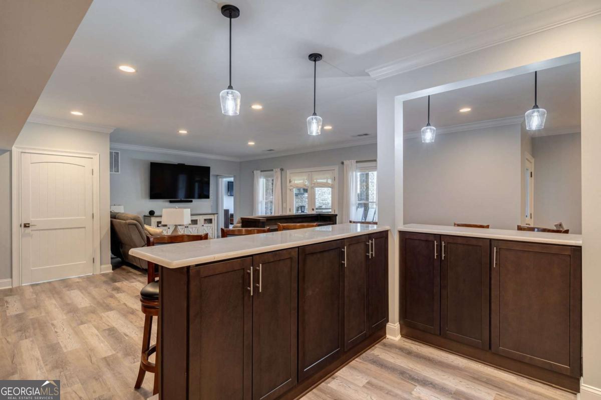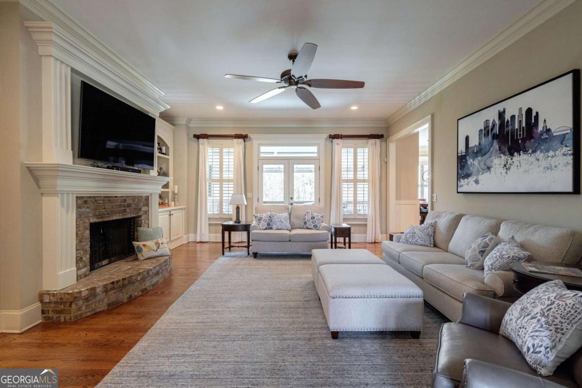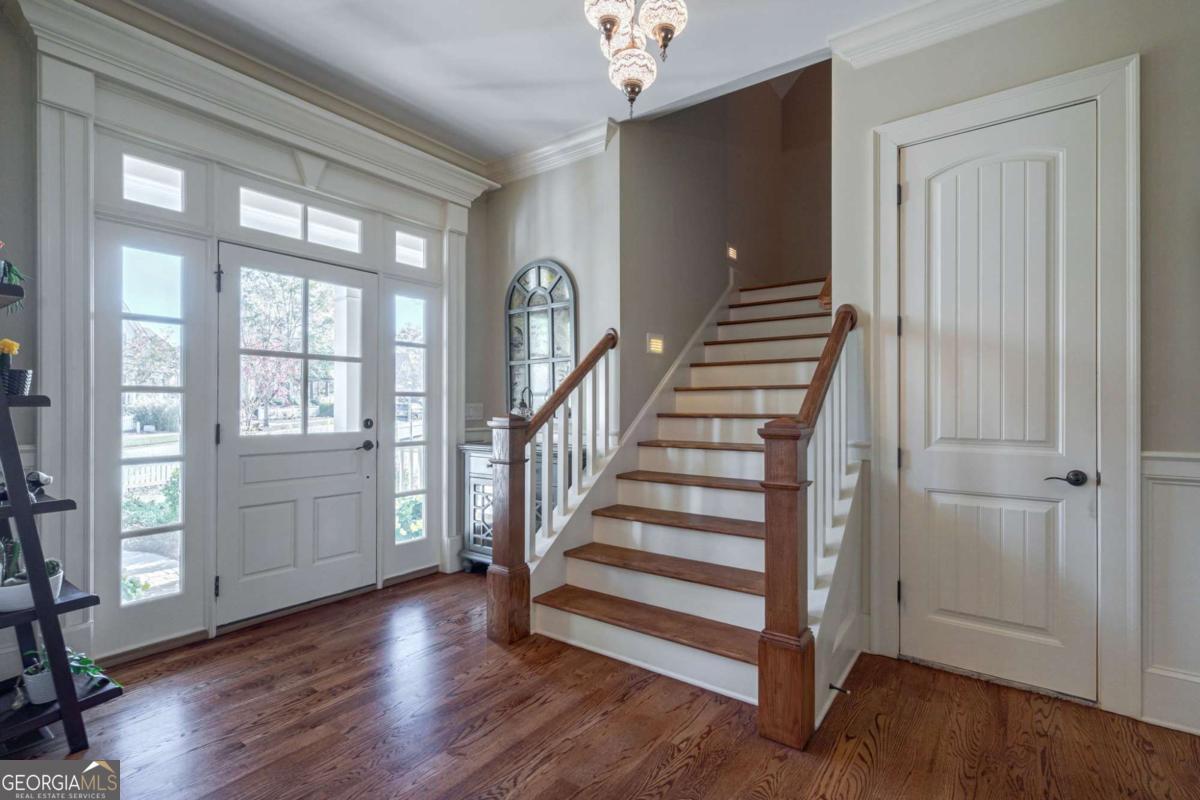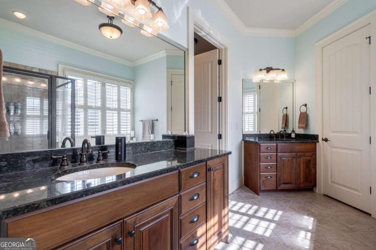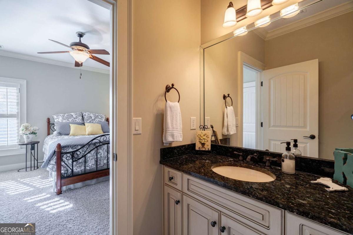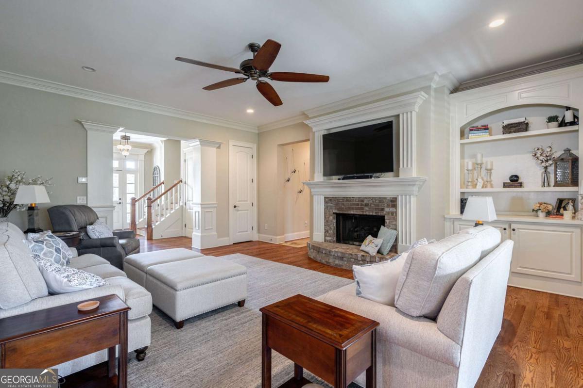 Nestled within the prestigious Georgia Club, this stunning 5-bedroom, 4-bathroom home offers an exquisite blend of luxury and comfort. The house sits on a beautifully landscaped lot, featuring a fully finished basement and a private backyard oasis complete with a shimmering pool, perfect for those warm Georgia days. The exterior, with its classic gray siding and white trim, exudes charm, complemented by a welcoming front porch that invites you into the house. As you step into the foyer, youre greeted by the rich, gleaming hardwood floors that lead your eyes towards the open layout ahead, with a staircase to the left inviting you upstairs. The formal dining room, visible to the right from the foyer, boasts elegant wainscoting, a soft green hue on the walls, and large windows that allow natural light to flood the space, creating an inviting atmosphere for gatherings. The kitchen, located to the right of the great room, features inviting design with rich wooden cabinetry, granite countertops, a central island, and stainless steel appliances, all complemented by pendant lighting and a stylish backsplash, creating a functional and aesthetically pleasing cooking space. On the left side of the main floor, you are greeted by a refined home office, distinguished by its built-in cabinetry and the warmth of hardwood flooring, ideal for work or contemplation. Steps away lies a practical full guest bathroom, enhancing the homes hospitality. Also on this side is the expansive master bedroom, a haven of comfort and elegance, which opens into a master bath designed for indulgence. The bathroom features a spacious walk-in shower, a soothing jacuzzi tub, his and her vanities for personal space, and a large custom closet that answers every storage need with style. Upstairs features two large bathrooms, a third bathroom, a spacious office, and ample attic storage space for all needs. The covered deck, accessible from both the breakfast area, great room and the master bedroom, offers a tranquil retreat with its expansive deck area. Its designed for relaxation and entertainment, featuring ample space for seating and dining, all under the protection of a awning. The newly renovated basement presents a versatile and inviting space, featuring a bar area with countertops and pendant lighting, perfect for social gatherings. Adjacent to the bar, the open layout seamlessly transitions into various functional areas, including a full bathroom for convenience, a dedicated workshop for DIY projects, a designated workout area for fitness enthusiasts, and a cozy bedroom for guests or family. Additionally, the basement includes a practical storage garage specifically for pool equipment and a golf cart, ensuring all leisure needs are catered to within the home. The overall design combines utility with comfort, making it an ideal space for both relaxation and productivity. This outdoor area features a sparkling pool for refreshing dips, a soothing hot tub for relaxation, and an outdoor bar setup perfect for entertaining. The space is designed for leisure and social gatherings, offering a blend of comfort and luxury with ample seating and shade. The Georgia Club itself is a paradise for those who love the outdoors and community activities. With a championship 27-hole golf course designed to challenge and delight players of all skill levels, a club house for social gatherings, a remodeled fitness center, and not one but two pools for community enjoyment, theres always something to do. Add to this the convenience of on-site pickleball and tennis courts, playgrounds, and beautifully maintained parks, and you have a community that supports an active and engaged lifestyle. The houses location within this gated community offers both privacy and security, making it an ideal retreat for families or anyone looking for a serene environment. The Georgia Clubs amenities and this homes features make it not just a residence, but a lifestyle choice. Dont miss out!