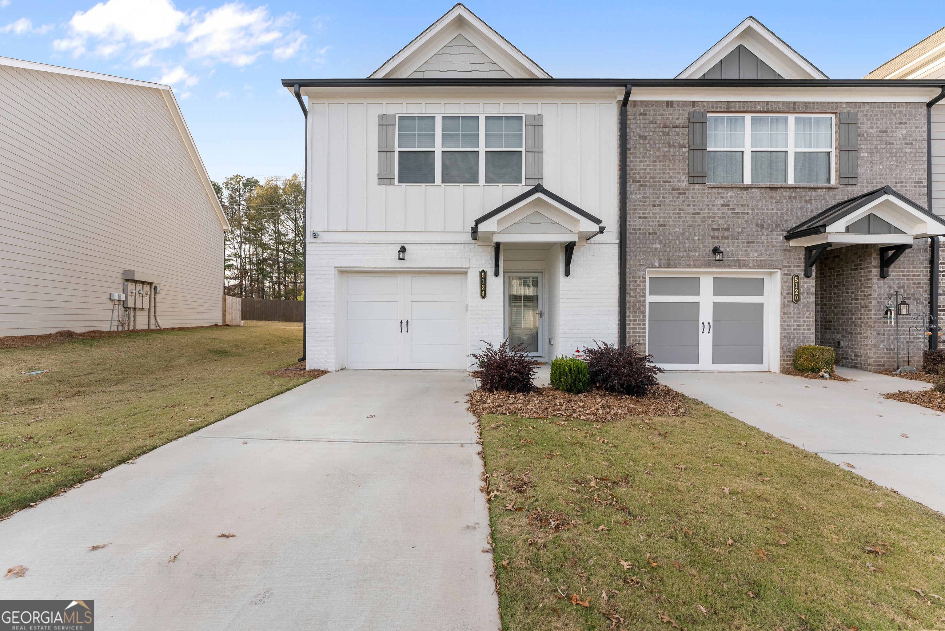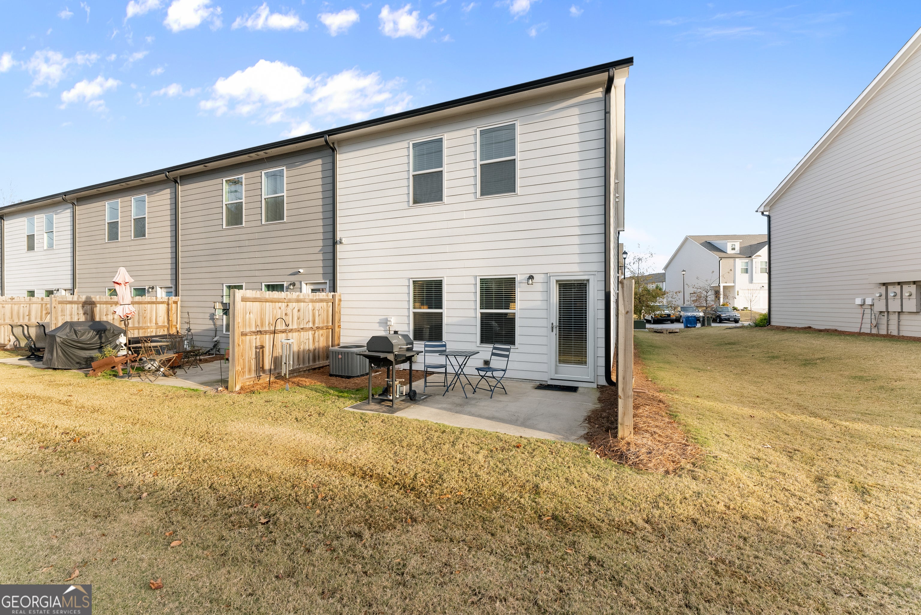 This beautifully maintained end-unit townhome is in the desirable Silver Fox community in Hall County, near Gainesville and Lake Lanier. It boasts an open-concept design with granite countertops, stainless steel appliances, a tile backsplash, and an oversized island. Ideal for cooking and entertaining. The main level offers a light-filled family room with an electric fireplace, luxury vinyl plank flooring throughout, and a half bath. The second level hosts a spacious owner's suite with a trayed ceiling and a private full bath with a large walk-in shower, two secondary bedrooms, a second full bathroom, and an upstairs laundry. Silver Fox residents enjoy access to a community pool, including yard maintenance, beautifully landscaped common areas, sidewalks, and streetlights.
