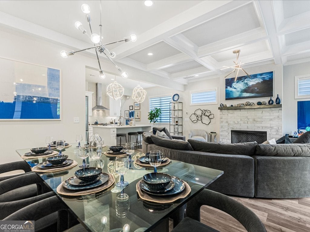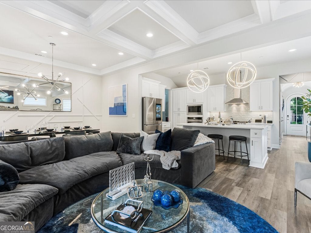 Welcome to this stunning, 2022 built end unit townhome located in the gated community of Tuscany Village, where modern design, comfort, and convenience come together seamlessly. This thoughtfully designed home features 3 spacious bedrooms, 2.5 bathrooms, and a bright, open concept layout that flows effortlessly from the oversized island kitchen into the dining and living areas. The kitchen is a true centerpiece, equipped with a gas cooktop and vent hood, a wall-mounted microwave combo, perfect for both everyday living and entertaining. Upstairs, a curved staircase leads to a cozy loft-style flex space, ideal for a home office, media room, or reading nook. The upper level also includes a large walk-in laundry room with built-in cabinetry, as well as a generous owner's suite featuring dual walk-in closets and a spa-like bath with a freestanding soaking tub, dual vanities, and a walk-in tiled shower. Additional highlights include custom accent walls and detailed millwork throughout, a renovated guest bedroom, and a secondary bedroom fitted with California Closets perfect for someone with a large wardrobe, though easily converted back depending on the buyer's needs. As an end unit, this home also offers added privacy, a fenced and turfed backyard for low maintenance outdoor enjoyment, and convenient proximity to guest parking. Residents will love the low maintenance lifestyle provided by the beautifully landscaped, HOA maintained grounds. Spend time at the dog park, play a game of bocce, relax at the community pavilion, or head out to one of the 69 eateries within a 5 mile radius. Set within the highly rated River Ridge High School district and surrounded by everyday conveniences, this home is ideal to lock and leave, reside and raise, rest and relax, or connect and commute. Tuscany Village offers the perfect balance of accessibility and tranquility, with quick access to Downtown Woodstock, The Outlet Shoppes, major grocers, and local dining favorites. Commuters will appreciate the easy routes to Hwy 575, Peach Pass lanes, and Hwy 400. This is a rare opportunity to own a highly upgraded, move in ready home in one of Woodstock's most desirable gated communities.