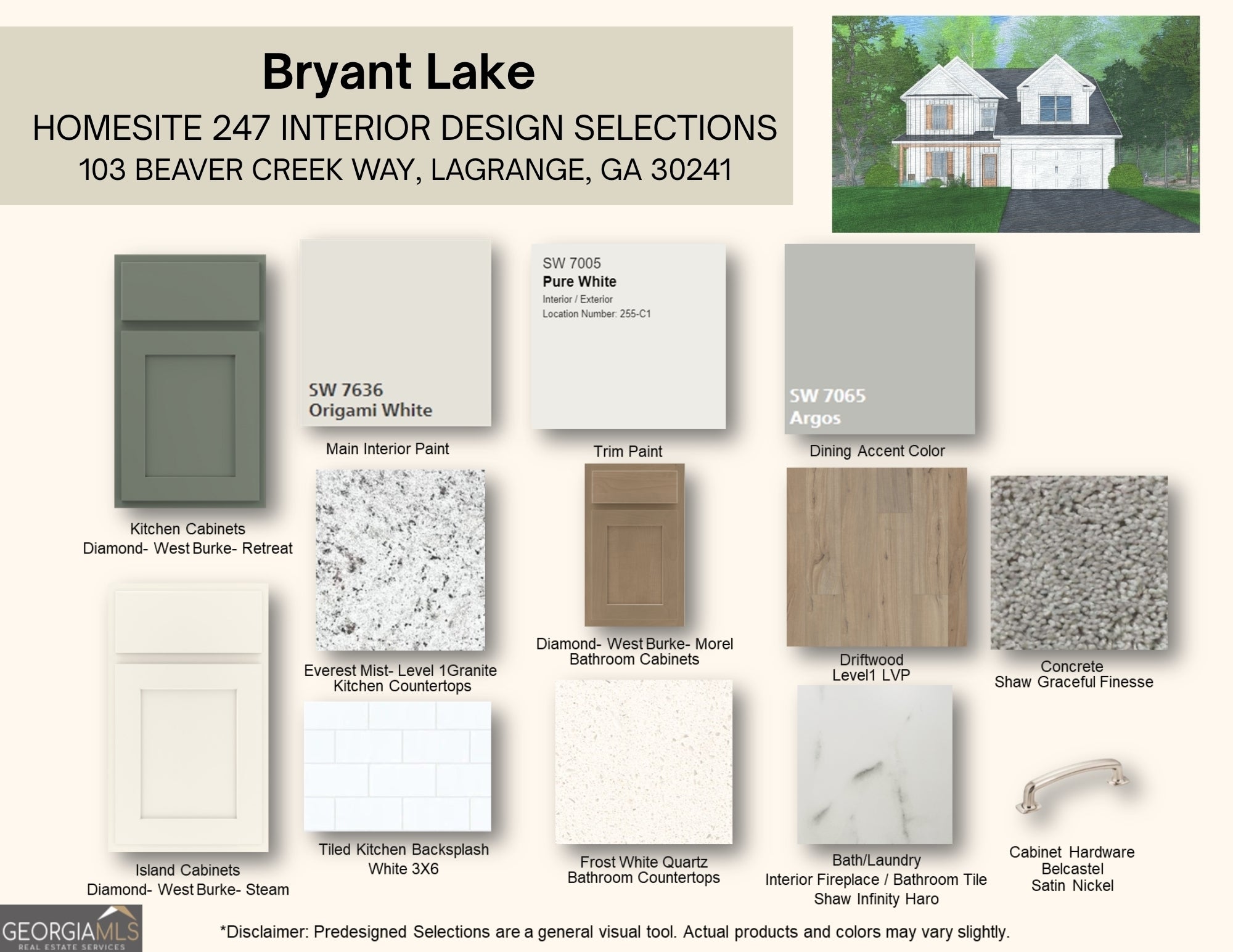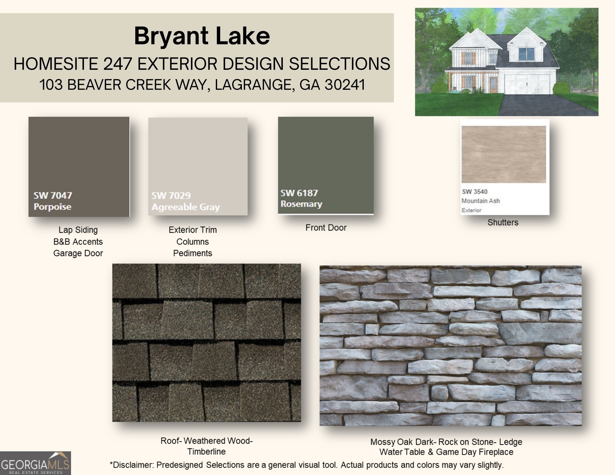 Welcome to Bryant Lake, a scenic, tree-lined lakefront community by Hughston Homes in LaGrange, GA. Enjoy lakeside homesites and amenities, including sidewalks, tennis courts, a swimming pool, a playground, and a clubhouse, creating the ideal balance of nature, recreation, and convenience. Introducing the Aspen B floorplan, offering 2,671 sq. ft. of thoughtfully designed living space with 4 bedrooms, 3.5 baths. Step into a bright foyer that opens into an inviting great room complete with a wood-burning fireplace. The chef's kitchen features abundant cabinetry, granite countertops, tile backsplash, stainless steel appliances, including a gas range, recessed lighting, and a large center island with sink and built-in dishwasher, perfect for gatherings and seamless connection to the dining area. Just off the garage entry, you'll find the dedicated laundry area and our signature Drop Zone with built-in cubbies. The main-level owner's suite boasts tray ceilings, natural light, and a spa-like bath with a garden tub, tiled shower, and a large closet with its own window. Upstairs, enjoy the versatile media room, ideal as a movie lounge, game space, or additional living area. Along with spacious secondary bedrooms, generous closets, a Jack-and-Jill bath between bedrooms 2 and 3, and an additional full bath with separate access. Durable LVP flooring extends through the main living spaces, with thoughtful features throughout, including a gas tankless water heater, 2" front-facing blinds, smart home options, and of course, the Gameday Patio with outdoor fireplace, fan, and speakers. Elevate your lifestyle and make every day feel extraordinary. This Aspen home is ready for your next chapter!