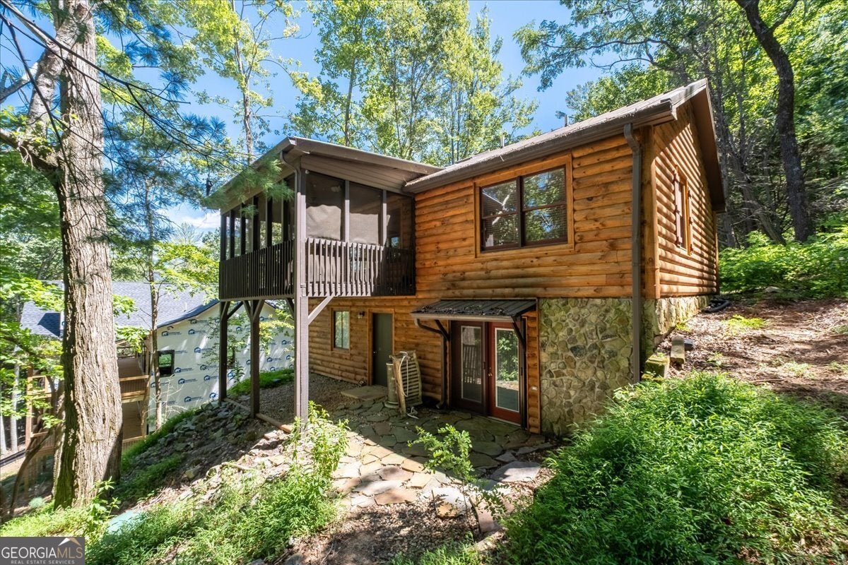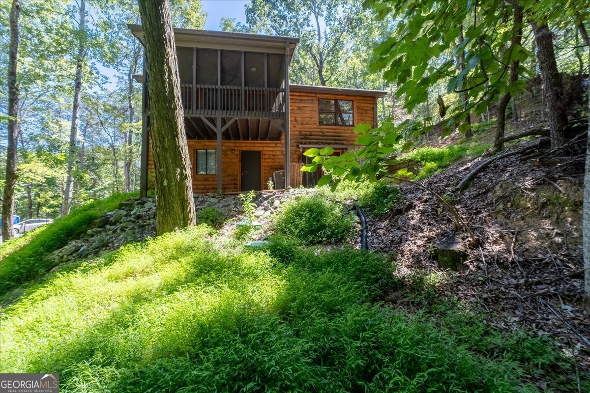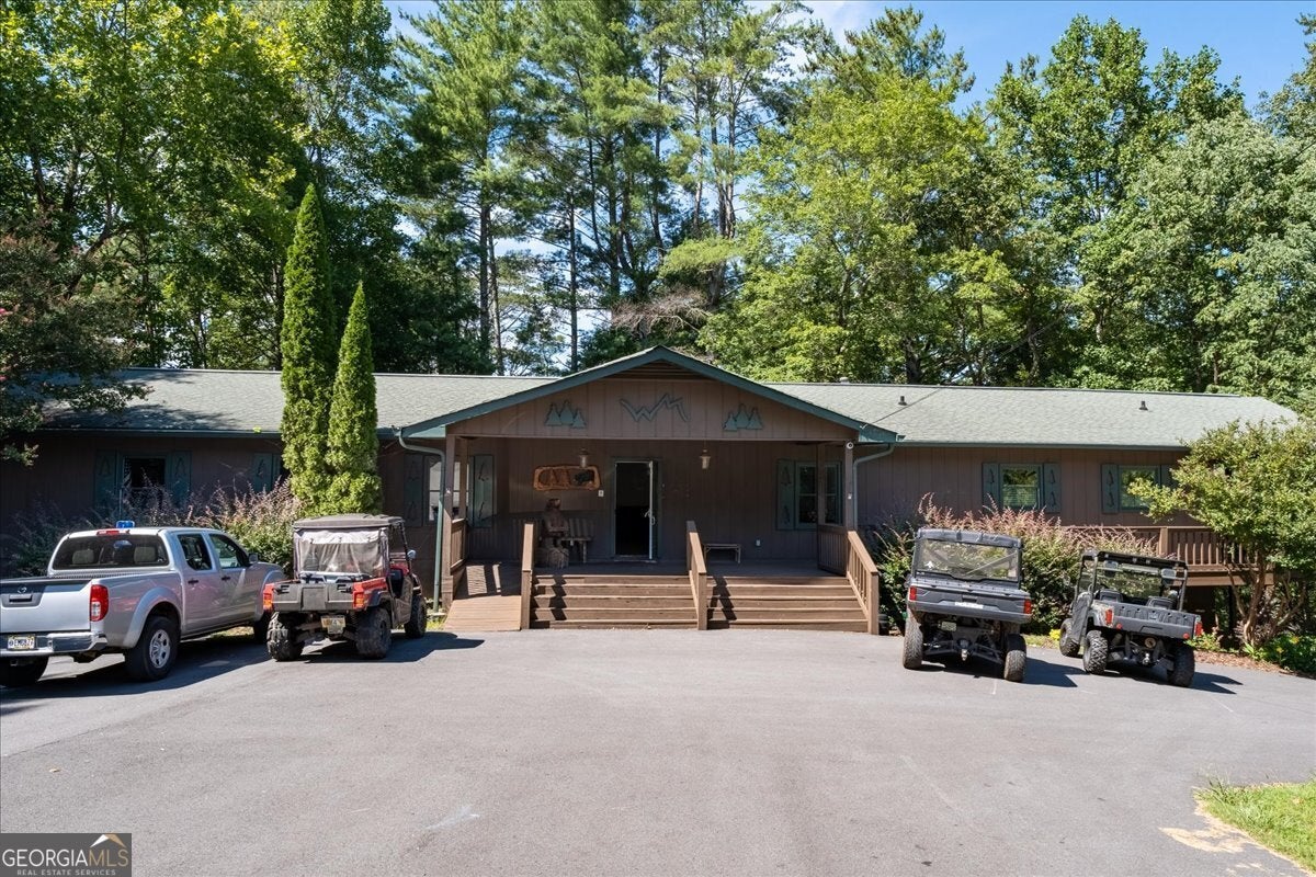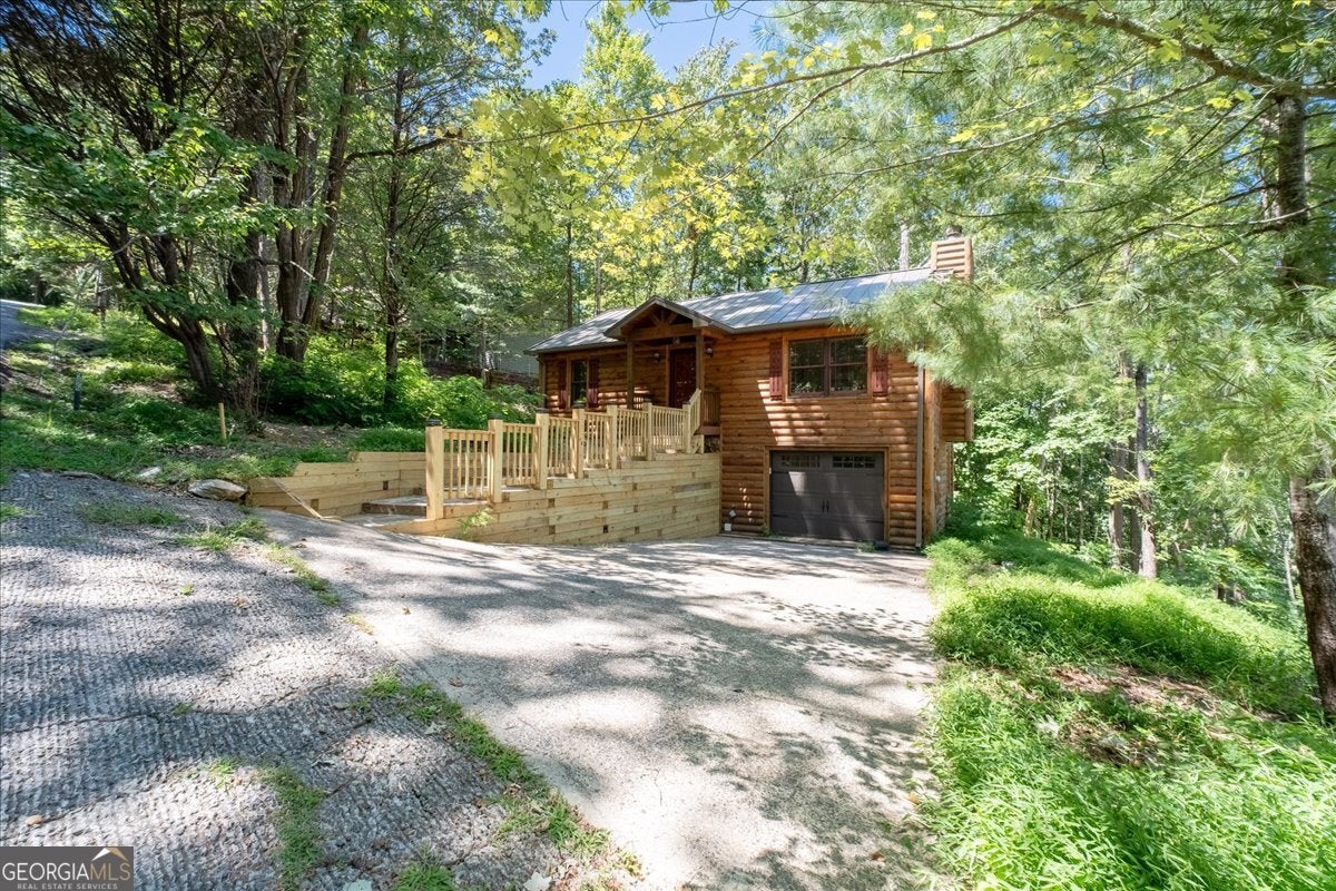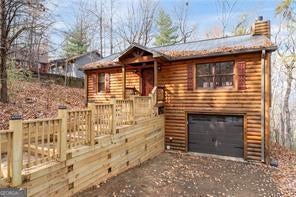 Welcome to the Walnut Mountain Community where life is good and everyone gets to enjoy the experience of summer camp year round! This is an established and tucked away, gated mountain community that offers lots of play opportunities with lakes, rivers and pools, tennis and basketball courts, hiking trails, a dog park, a playground and more. And all of that is a short walk from where your cabin is located on the mountain. Not to mention you are a quick drive right to historic, downtown Ellijay to enjoy shopping and dining. And don't forget Ellijay is home to the annual Georgia Apple Festival for over 50 years each Autumn. The home feels large with the vaulted wood beam ceilings in the main living area, lots of windows and a log cabin aesthetic inside and out. This home offers some separation for sleeping quarters with 1 bedroom and 1 full bath on each level as well as an open floor plan so you can prepare your meals while connecting with friends and family gathering around the fireplace or in the dining area. Picture time away from home with your easy-to-maintain mountain getaway, or your primary home in nature. Enjoy time on the screened porch with a quiet, long view of the woods in the back. There is an extra room behind the garage for storage or a workshop. New roof, retaining wall and front walkway. Please note, if you want to make income on this home, this community is short term rental friendly.