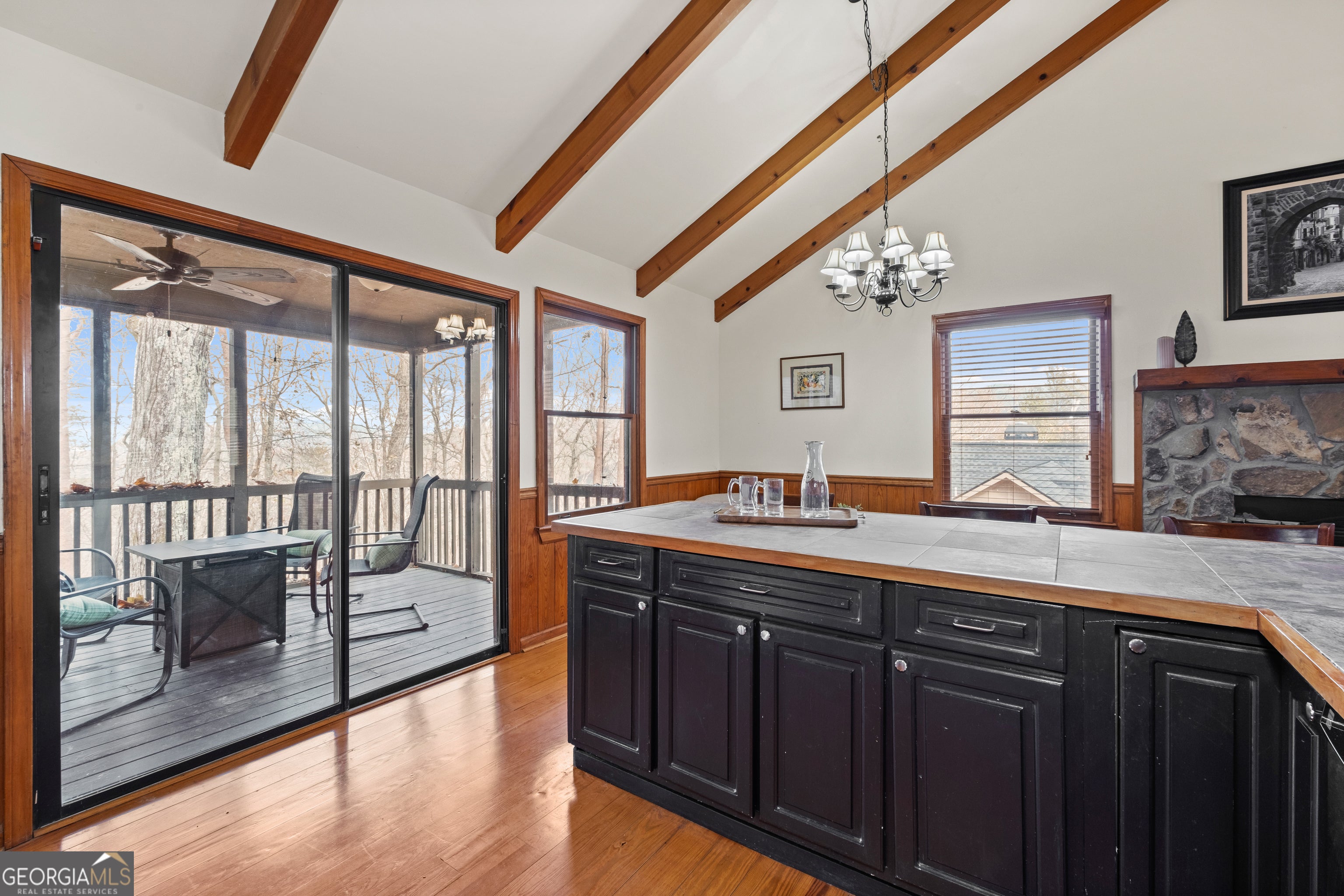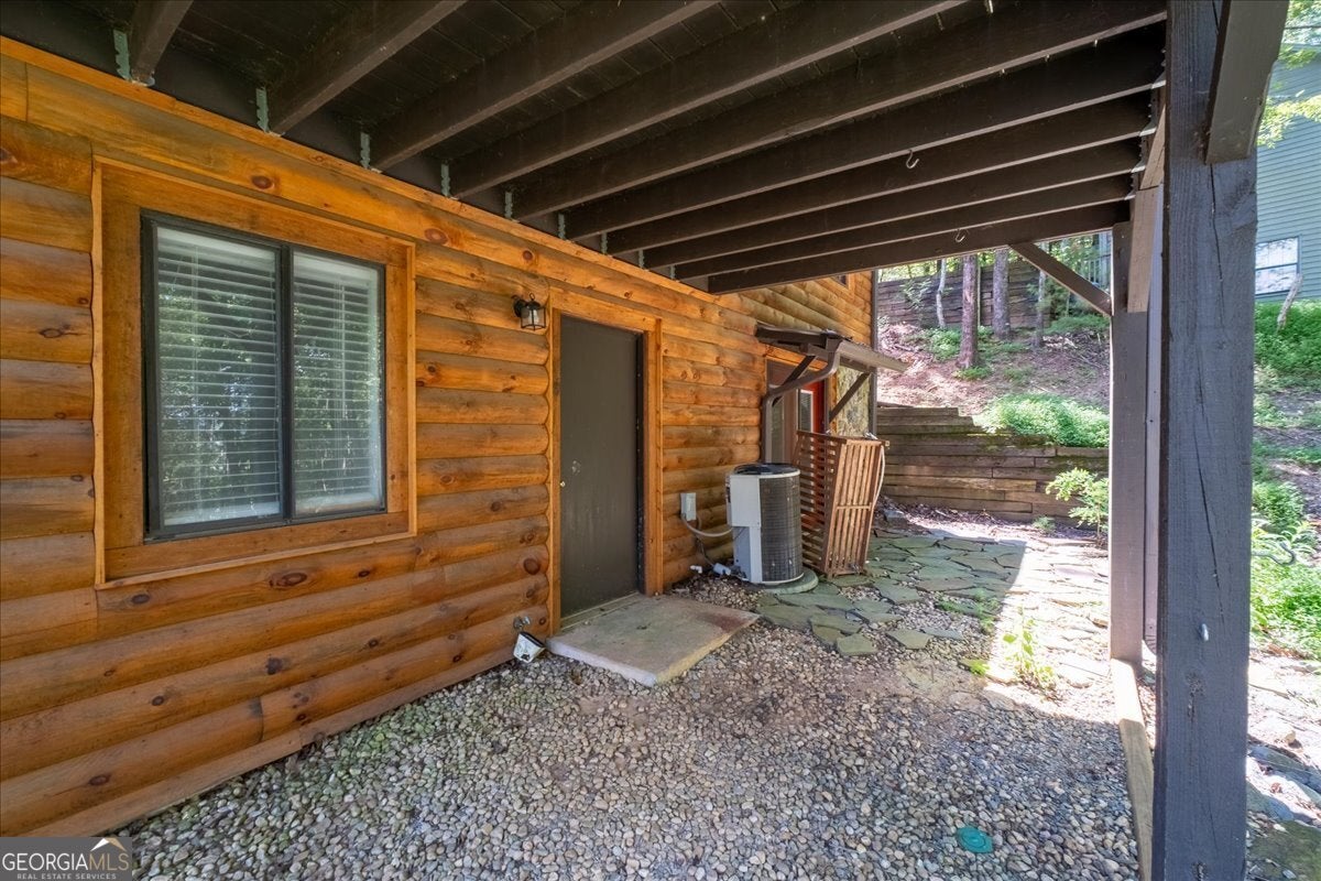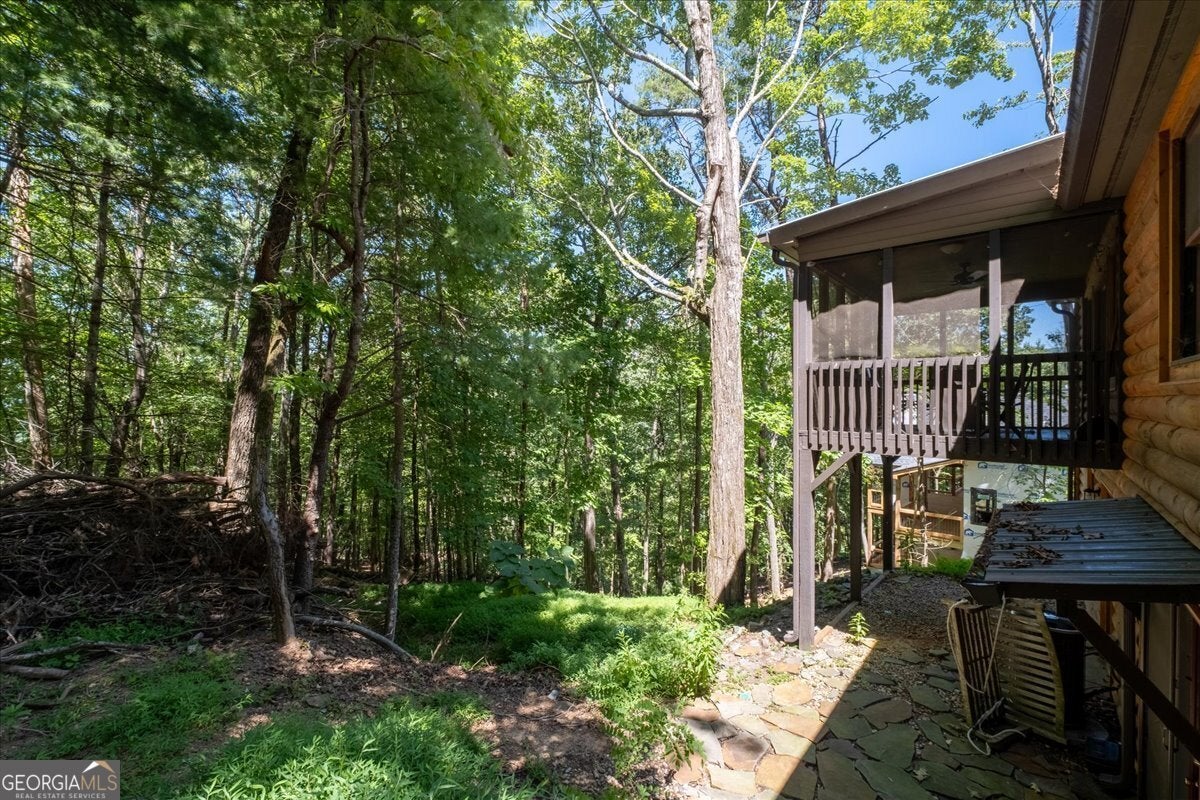 Welcome to the Walnut Mountain Community where life is good and everyone gets to enjoy the experience of summer camp year round! This is an established and tucked away, gated mountain community that offers lots of play opportunities with lakes, rivers and pools, tennis and basketball courts, hiking trails, a dog park, a playground and more. And all of that is a short walk from where your cabin is located on the mountain. Not to mention you are a quick drive right to historic, downtown Ellijay to enjoy shopping and dining. And don't forget Ellijay is home to the annual Georgia Apple Festival for over 50 years each Autumn. The home feels large with the vaulted wood beam ceilings in the main living area, lots of windows and a log cabin aesthetic inside and out. This home offers some separation for sleeping quarters with 1 bedroom and 1 full bath on each level as well as an open floor plan so you can prepare your meals while connecting with friends and family gathering around the fireplace or in the dining area. Picture time away from home with your easy-to-maintain mountain getaway, or your primary home in nature. Enjoy time on the screened porch with a quiet, long view of the woods in the back. There is an extra room behind the garage for storage or a workshop. New roof, retaining wall and front walkway. Please note, if you want to make income on this home, this community is short term rental friendly.