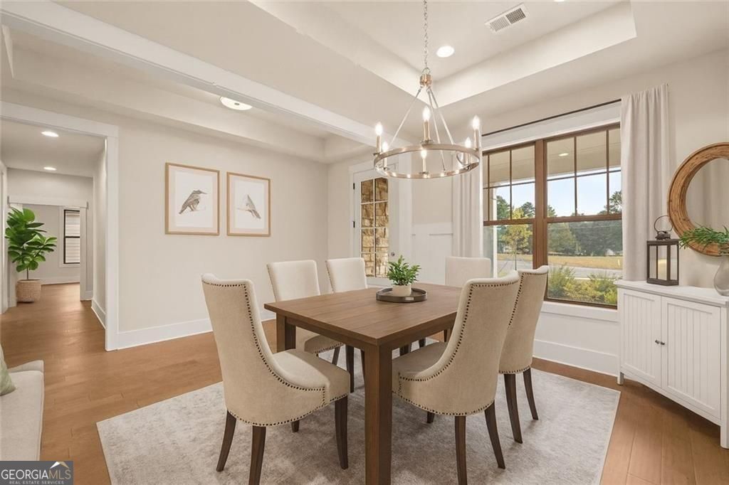 Welcome to Soleil Summit Chase! A Gated Luxury Resort Style 55 and Better Active Adult community by award Winning Builder Patrick Malloy Communities. Nestled in a quiet setting of established communities and pastoral estates, Soleil Summit Chase will offer the resort style of living unlike anything in the Gwinnett area! The community offers an approximate 4,500 sq ft Clubhouse with a Great Room and Bar for relaxation and socializing, a Catering Kitchen for events by the Resort Director! There is a Fitness Room and a Yoga Patio as well as two Card/Game rooms for a fun game night, Flex room book club or other activities. In addition to fitness and yoga patio, you could always enjoy the swimming pool with sun shelf! For those who love the outdoors, a Grilling and Fire Pit area, a community Garden, Event Lawn, a Dog Park, Bocce ball and Pickleball Courts. And enjoy the many future events or tournaments planned by the community's very own Resort Director! Our Montrose plan is another favorite for Soleil homeowners, at 2264 open concept living space with soaring 11-foot ceilings! A covered front porch greets you at foyer entry an adjacent formal dining room. Moving into your open concept living area is your Family room, Kitchen with huge island with breakfast bar, walk-in pantry, stainless appliances and a separate eating area with access to huge covered rear patio! The primary bedroom with spa-like ensuite with zero entry shower with bench and his/hers closets! In true split bedroom style, a secondary bedroom and bonus room are off of hallway, the bonus room may easily be converted into a 3rd bedroom. A full bath for guest and linen closet storage, laundry room with upgraded sink with cabinetry. HOA includes yard maintenance, Internet, and securing monitoring system. Don't miss out on the savings offered now on this gorgeous move-in ready home at a now reduced price! Soleil Summit Chase isn't just a community of Ranch style homes; it is truly a New Lifestyle where it's all about You!!