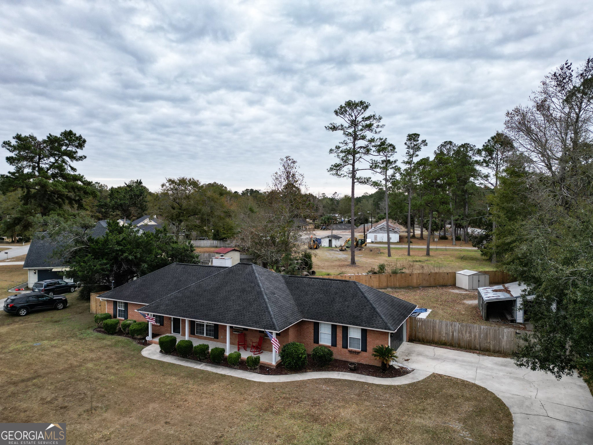 a 1-year home warranty is included. Beautiful well-cared-for partial-brick home sits on a 0.51-acre corner lot and welcomes you with a comfortable front porch and a practical split floor plan in Pembroke, GA.. Inside, the living room immediately feels warm and inviting with the added ceiling beams, laminate flooring, and a wood-burning fireplace that the owners have truly enjoyed. The kitchen has been thoughtfully updated and provides an easy, functional layout for everyday cooking and gathering, including an instant hot water heater at the kitchen sink for added convenience. The primary suite includes a renovated tile walk-in shower with a bench, and the guest bathroom has also been refreshed. New flooring has been added in the hallway and bathrooms, giving the home a clean, updated feel throughout. The backyard has been a favorite space for the owners. It offers an in-ground saltwater pool with cool deck, a storage house, a separate wood shop, and a covered wood-house patio. The landscaping has grown in beautifully over the years. During the fall months, the owners usually keep the pool covered to protect it from the leaves-typically about two months out of the year. Photos show the pool both covered and uncovered. Most of the privacy fencing has been replaced as well. Several major upgrades were recently completed, including a new HVAC system with a hospital-grade Aprilaire filtration system (only one filter change needed per year), new appliances, saltwater pool conversion, renovated spare bathroom, updated flooring, added beams in the living room, and a whole-home Generac generator with an automatic transfer switch for peace of mind. The home is roughly 20 minutes from Fort Stewart and 30 minutes from Pooler, and there is no HOA.
