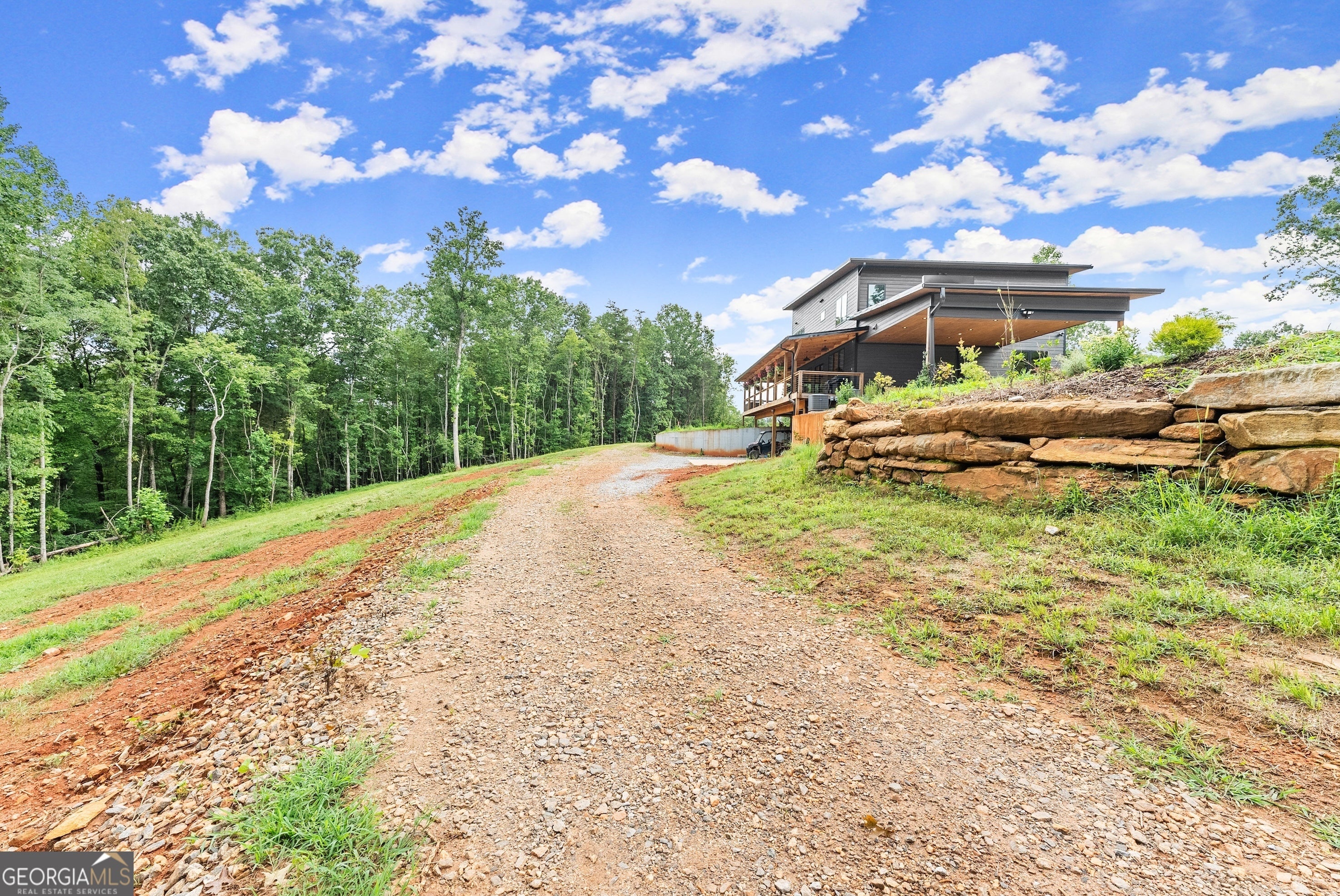 Experience the best of modern living wrapped in nature on 60+ breathtaking acres, with sweeping panoramic views of Mount Yonah and an extended stretch of Tesnatee Creek frontage. This contemporary home features an airy open floor plan, rich hardwood floors, a warm and inviting family room, and dedicated office space for work or study. Upstairs, the spacious primary suite and comfortable guest room provide a private, restful escape. Downstairs, the unfinished basement is a blank canvas-perfect for adding extra bedrooms, a home gym, or an exceptional entertainment area. Step outside and the adventure begins: explore wooded trails, enjoy open pasture, ride the off-road system, or take advantage of the on-site motorcycle track. Whether you're seeking peaceful seclusion, outdoor thrills, or the perfect balance of both, this property is a rare retreat that delivers tranquility and excitement in equal measure.