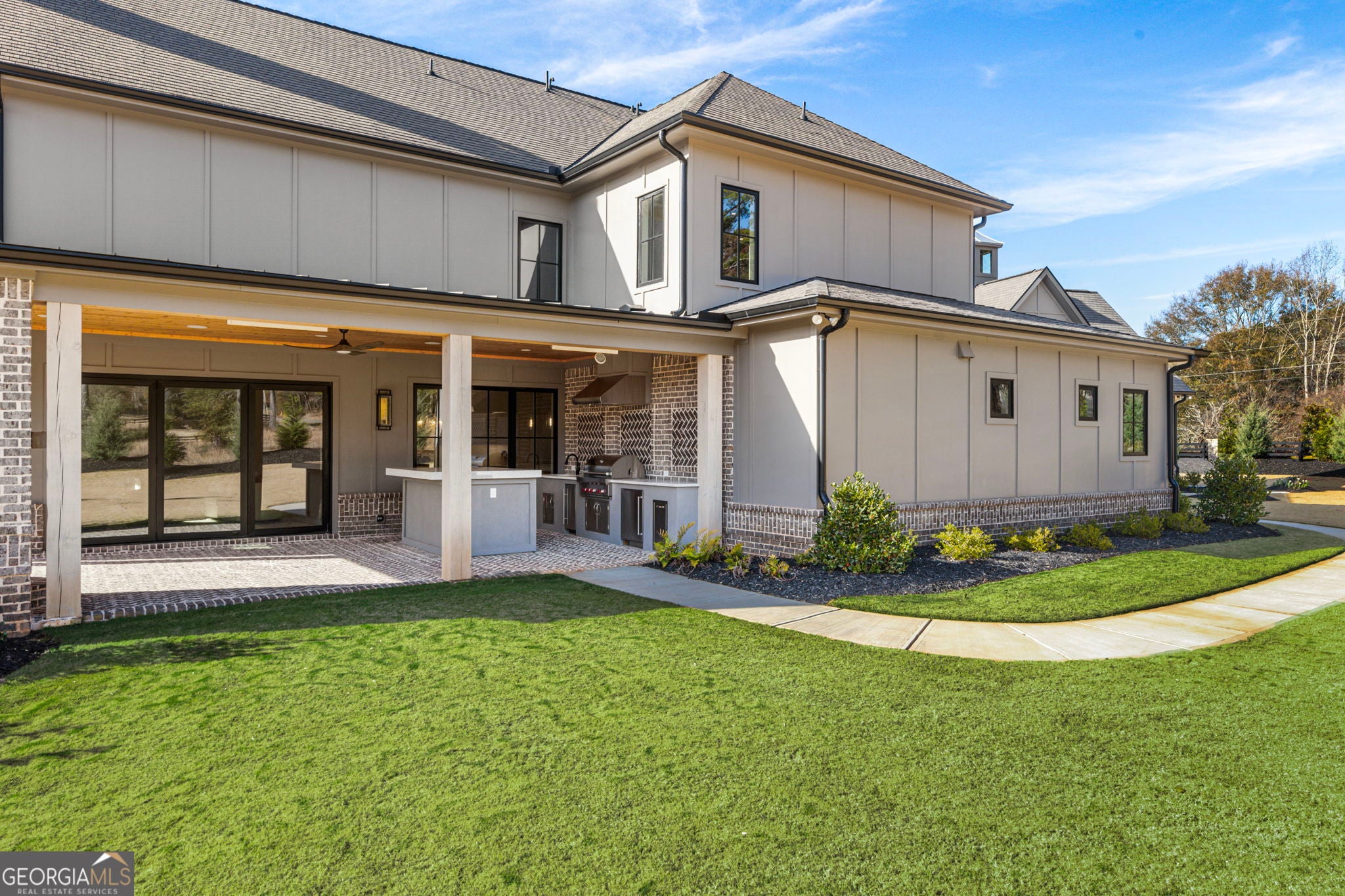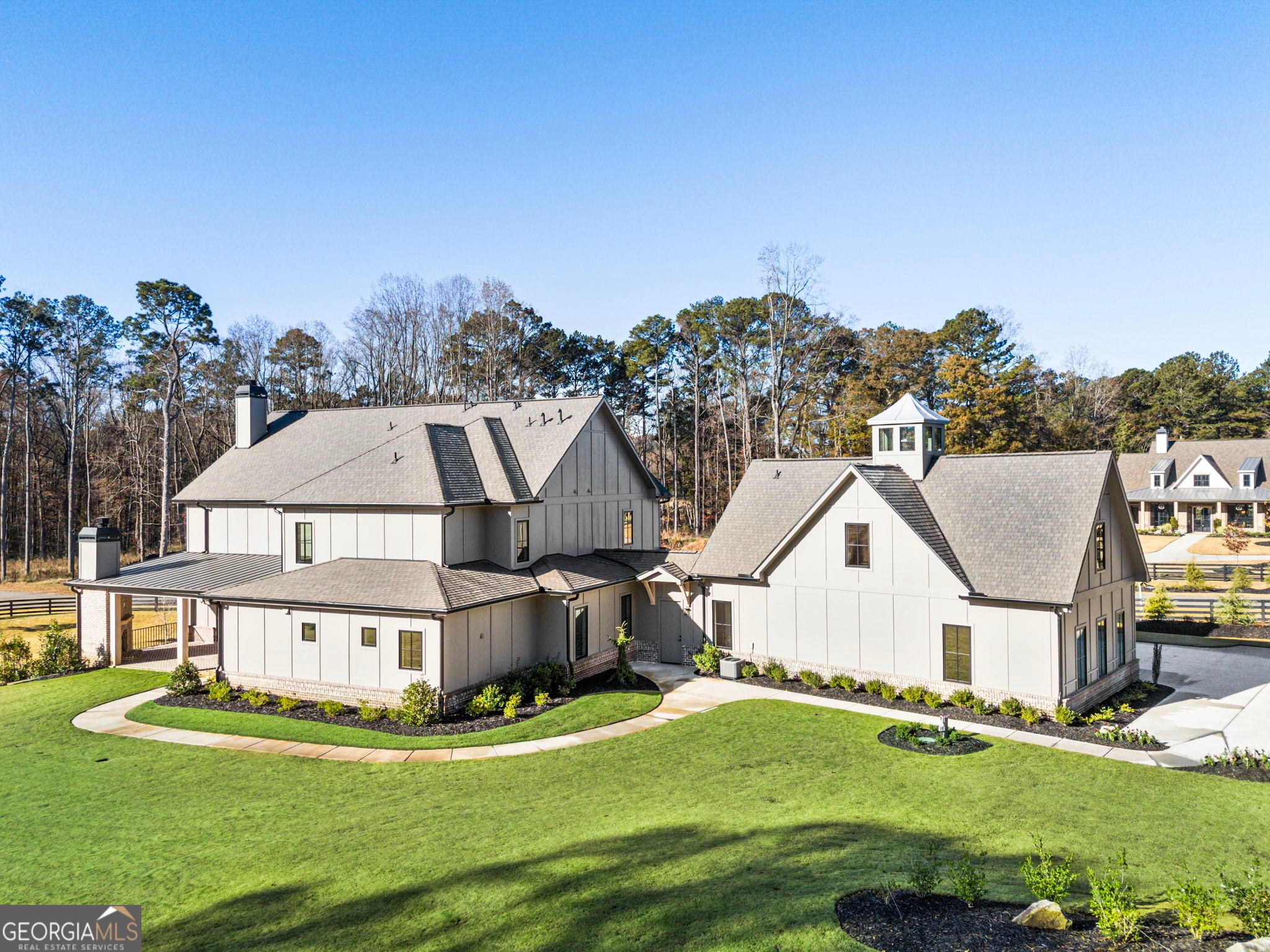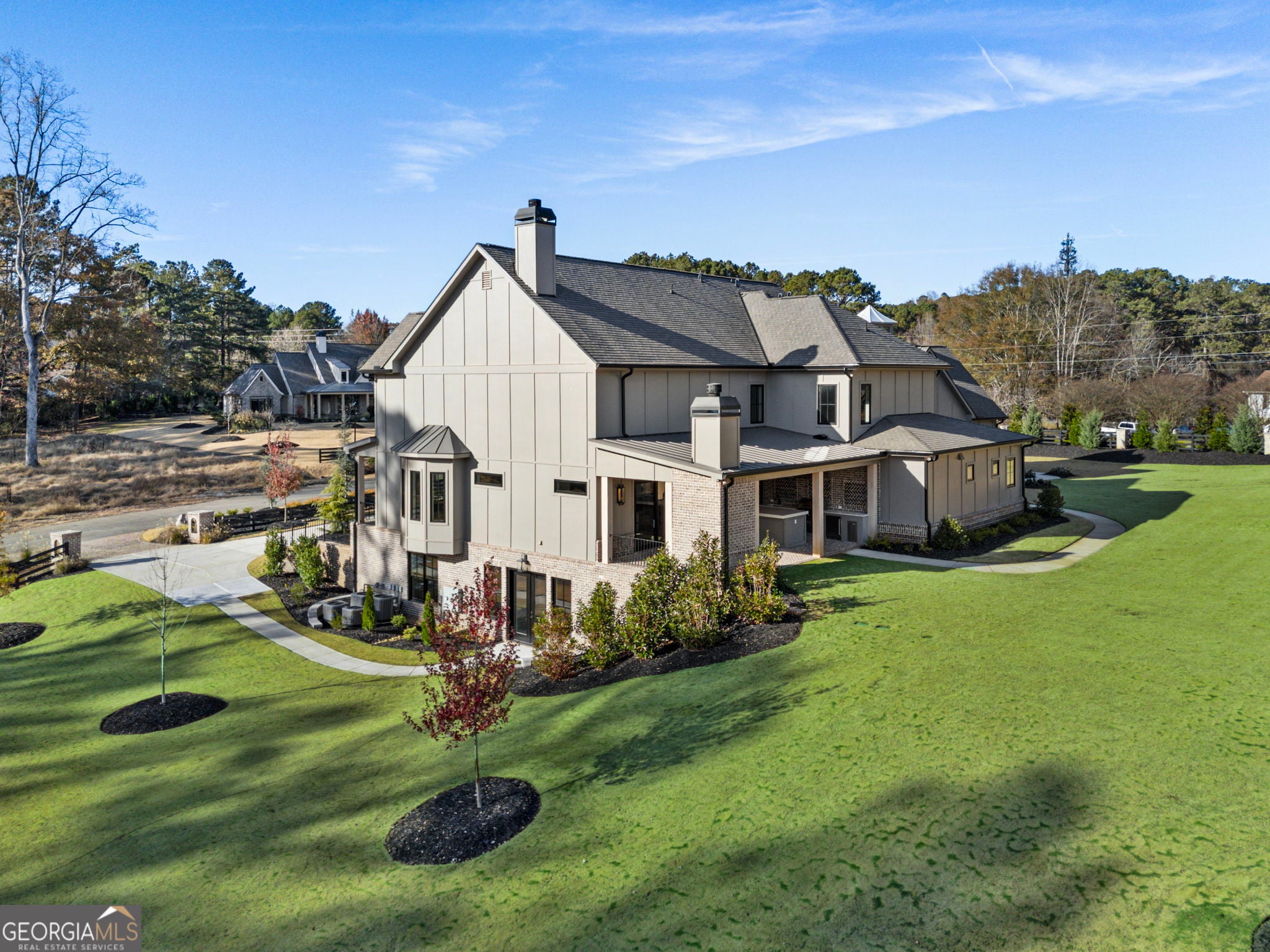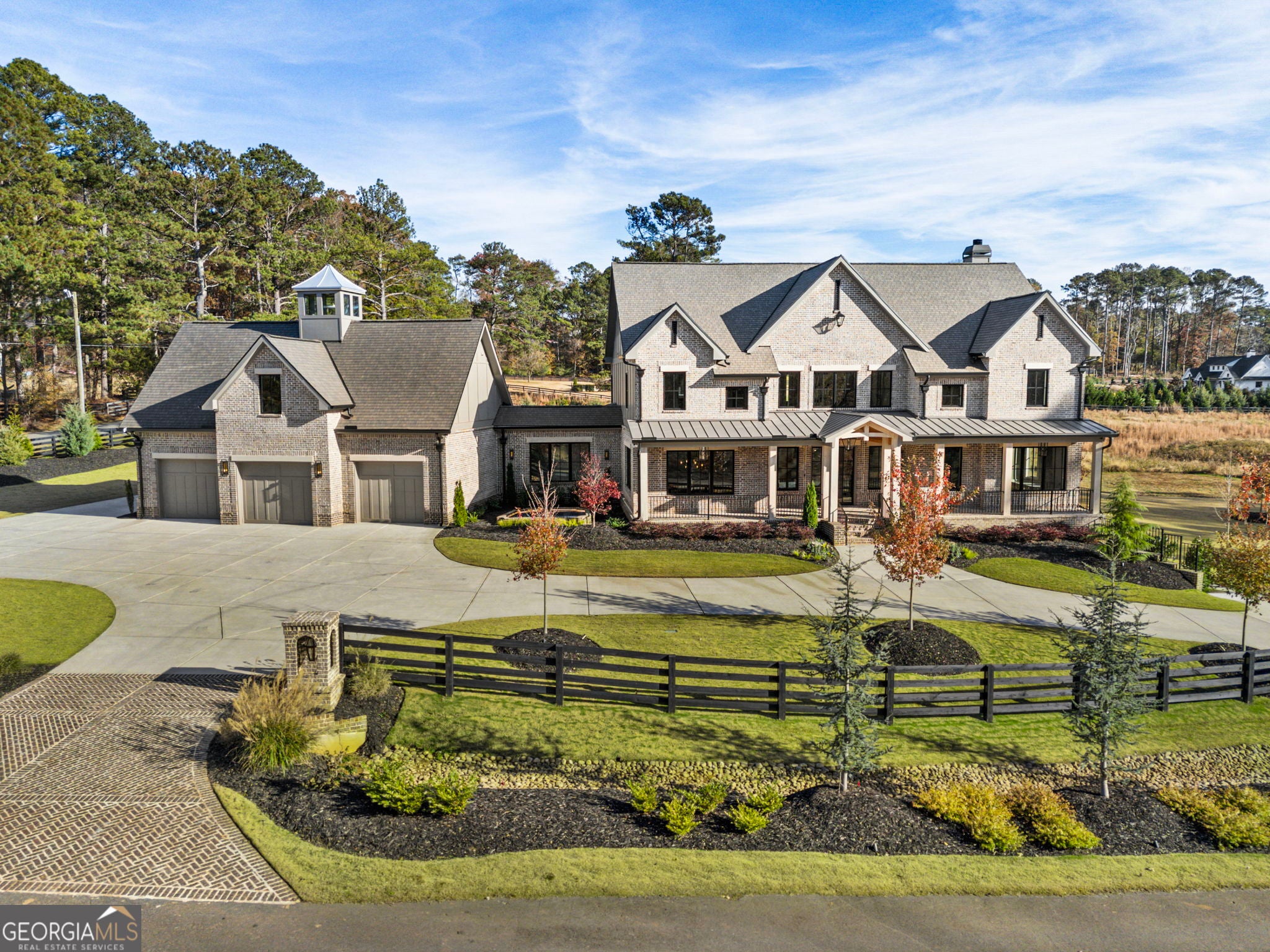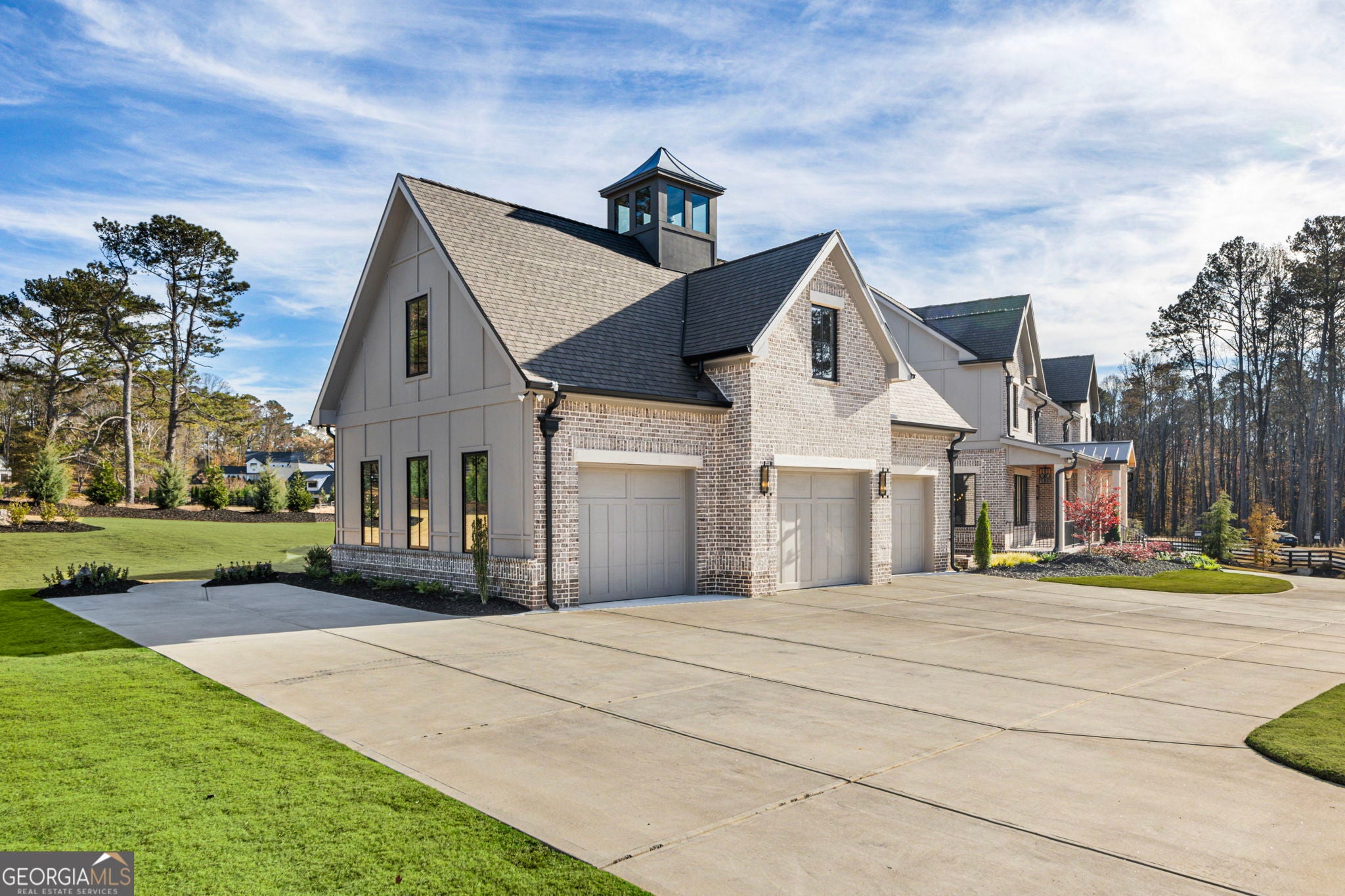 Welcome to a remarkable blend of craftsmanship, sophistication, and modern comfort. Arriving through one of two stately driveways, you're met by grand brick columns topped with glowing gas lanterns-a warm and distinguished introduction to the refined living that awaits. Thoughtfully designed and masterfully built, this new construction residence marries timeless architectural presence with cutting-edge technology and enduring materials. Every detail has been curated to elevate daily living, creating a home that feels both elegant and inviting. Nestled in the heart of Alpharetta's prestigious Cherokee County, the property offers the tranquility of a private enclave with effortless access to acclaimed schools-Avery, Creekland, Creekview, and The Haven Academy-along with premier dining, boutique shopping, and expansive parks. The exterior showcases striking brick construction and classic Craftsman styling. Inside, rich stain-in-place hardwoods, handcrafted cabinetry, and high-performance concrete countertops with integrated sinks set the tone for exceptional quality. The chef's kitchen and outdoor culinary space feature professional Wolf and Sub-Zero appliances, perfect for gatherings or intimate evenings at home. A 1,000-sq-ft covered patio extends the living space, finished with herringbone brickwork, built-in heaters, and generous open-air seating for year-round enjoyment. The primary suite is a serene retreat with heated tile floors and a boutique-inspired custom closet. This smart home offers full mobile control of HVAC, lighting, surround sound, and Lutron window shades, along with EV-ready wiring. The F-Wave premium synthetic roof carries a lifetime warranty and provides top-tier protection from high winds, hail, and fire. Jeld-Wen casement windows include a 10-year frame and 20-year glass warranty. With nearly 10,000 sq ft under roof-including garage and covered porches-the home offers an impressive scale and thoughtful functionality. The backyard is approved for a future in-ground pool. Set within a private collection of just seven curated new homes (lots not sold individually), this residence offers rare exclusivity. Once all seven homes are finished the homeowners are welcome to install a Private Gate and the Main Entrance for further privacy.