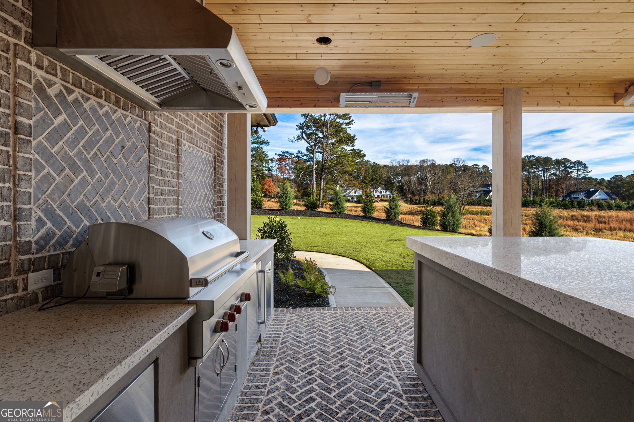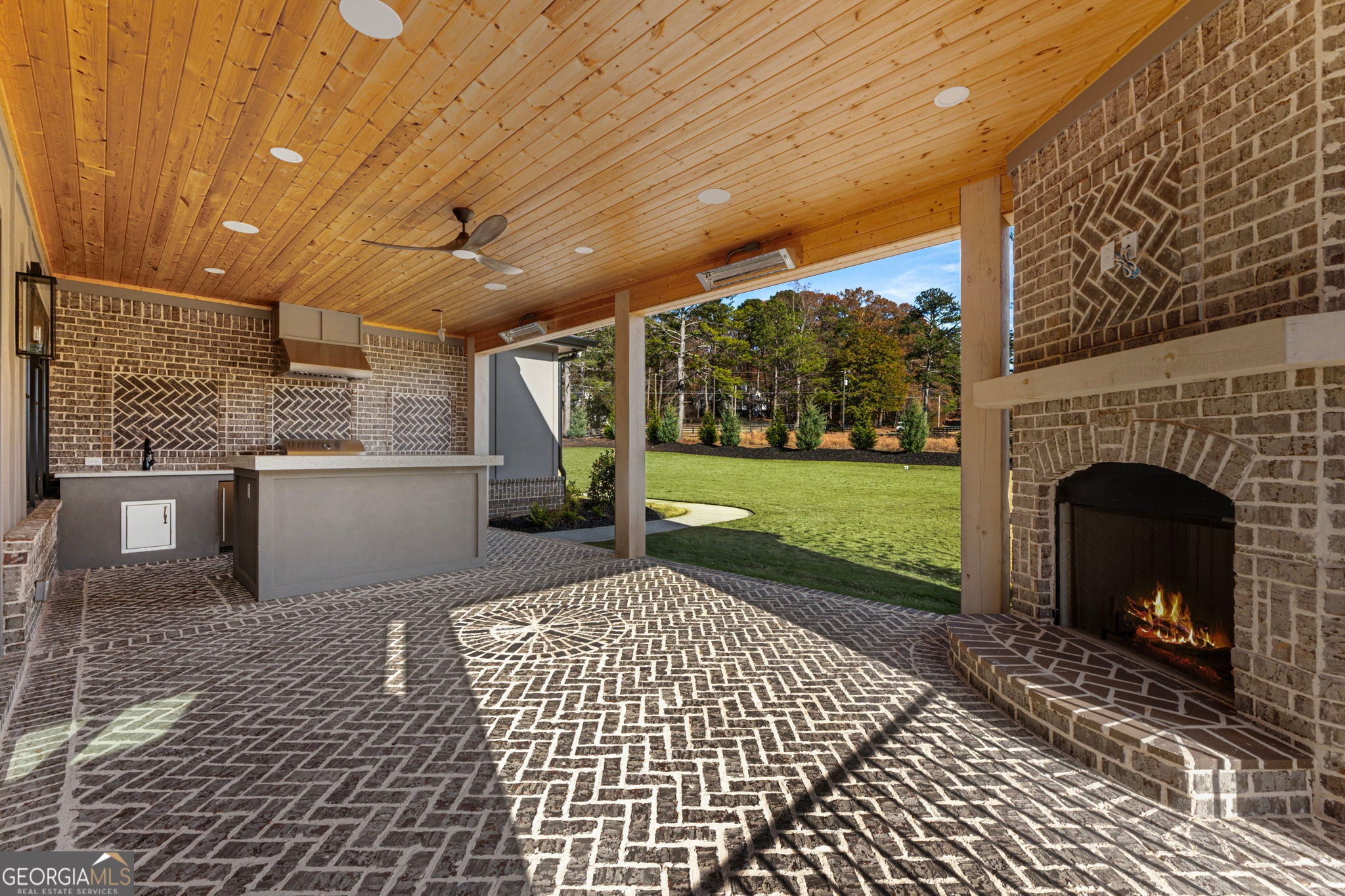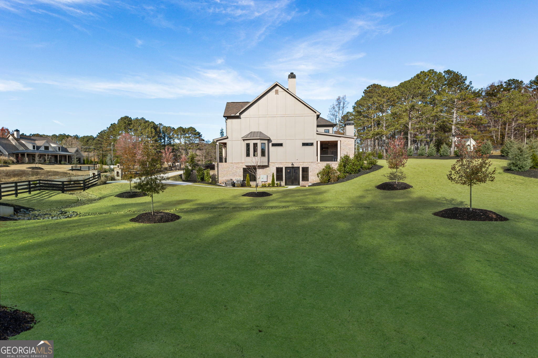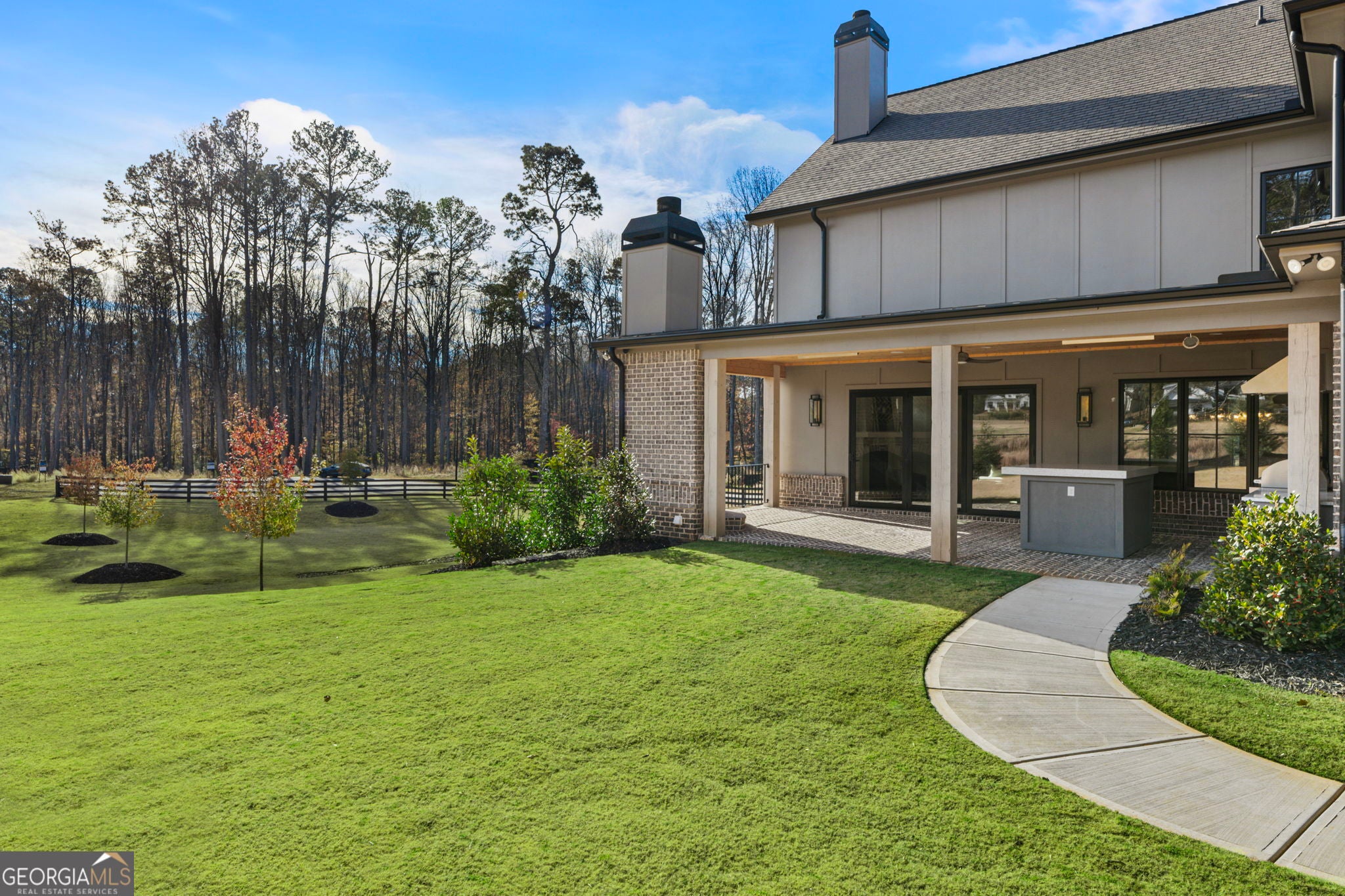 Welcome to a remarkable blend of craftsmanship, sophistication, and modern comfort. Arriving through one of two stately driveways, you're met by grand brick columns topped with glowing gas lanterns-a warm and distinguished introduction to the refined living that awaits. Thoughtfully designed and masterfully built, this new construction residence marries timeless architectural presence with cutting-edge technology and enduring materials. Every detail has been curated to elevate daily living, creating a home that feels both elegant and inviting. Nestled in the heart of Alpharetta's prestigious Cherokee County, the property offers the tranquility of a private enclave with effortless access to acclaimed schools-Avery, Creekland, Creekview, and The Haven Academy-along with premier dining, boutique shopping, and expansive parks. The exterior showcases striking brick construction and classic Craftsman styling. Inside, rich stain-in-place hardwoods, handcrafted cabinetry, and high-performance concrete countertops with integrated sinks set the tone for exceptional quality. The chef's kitchen and outdoor culinary space feature professional Wolf and Sub-Zero appliances, perfect for gatherings or intimate evenings at home. A 1,000-sq-ft covered patio extends the living space, finished with herringbone brickwork, built-in heaters, and generous open-air seating for year-round enjoyment. The primary suite is a serene retreat with heated tile floors and a boutique-inspired custom closet. This smart home offers full mobile control of HVAC, lighting, surround sound, and Lutron window shades, along with EV-ready wiring. The F-Wave premium synthetic roof carries a lifetime warranty and provides top-tier protection from high winds, hail, and fire. Jeld-Wen casement windows include a 10-year frame and 20-year glass warranty. With nearly 10,000 sq ft under roof-including garage and covered porches-the home offers an impressive scale and thoughtful functionality. The backyard is approved for a future in-ground pool. Set within a private collection of just seven curated new homes (lots not sold individually), this residence offers rare exclusivity. Once all seven homes are finished the homeowners are welcome to install a Private Gate and the Main Entrance for further privacy.