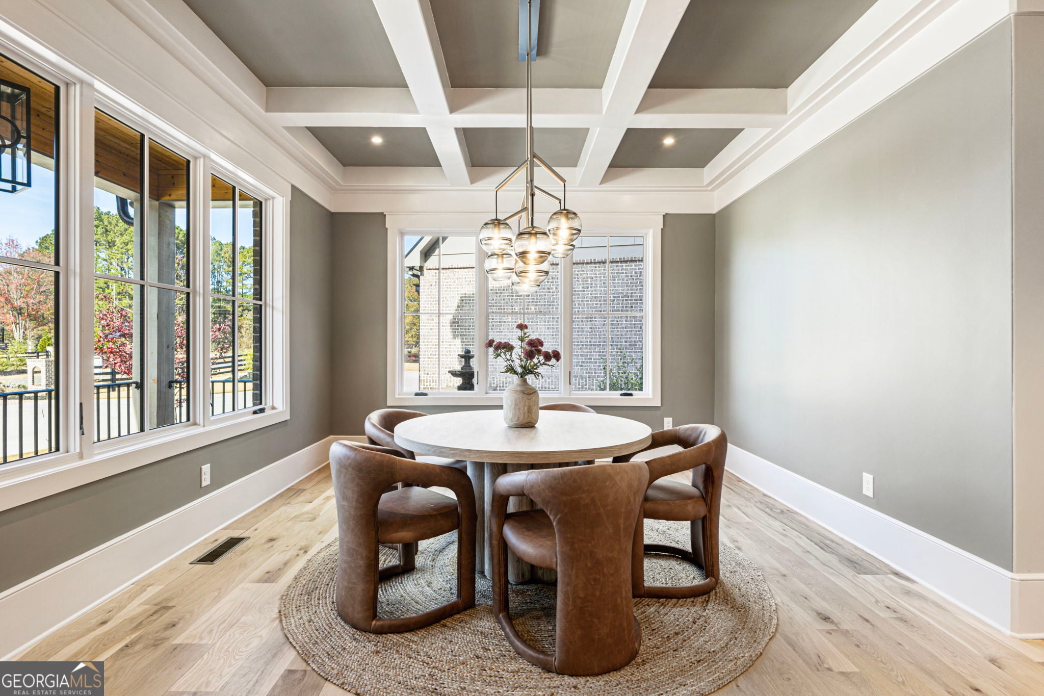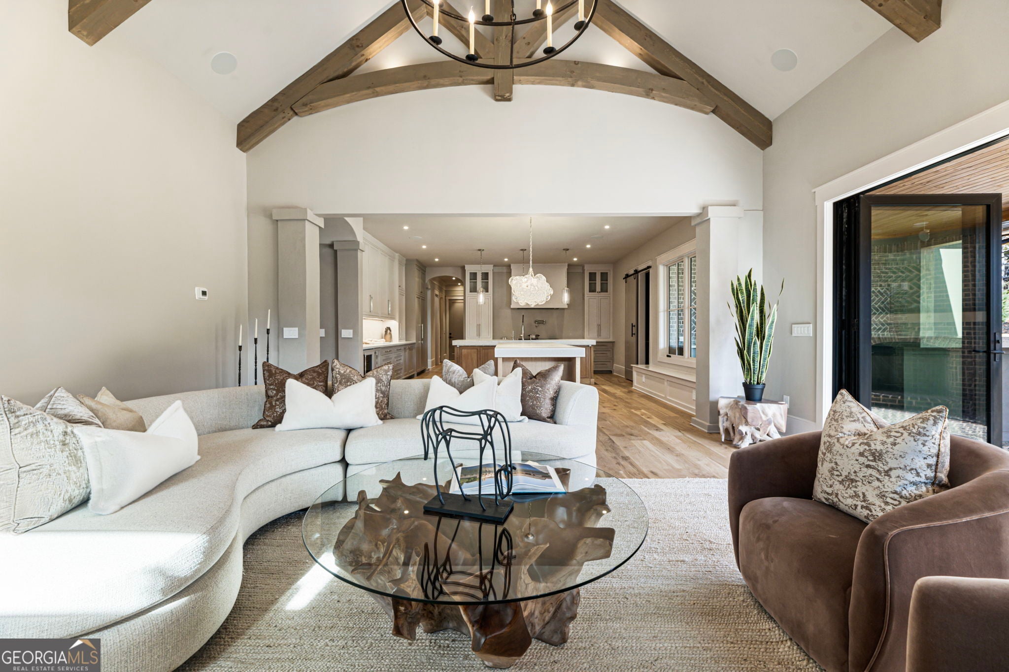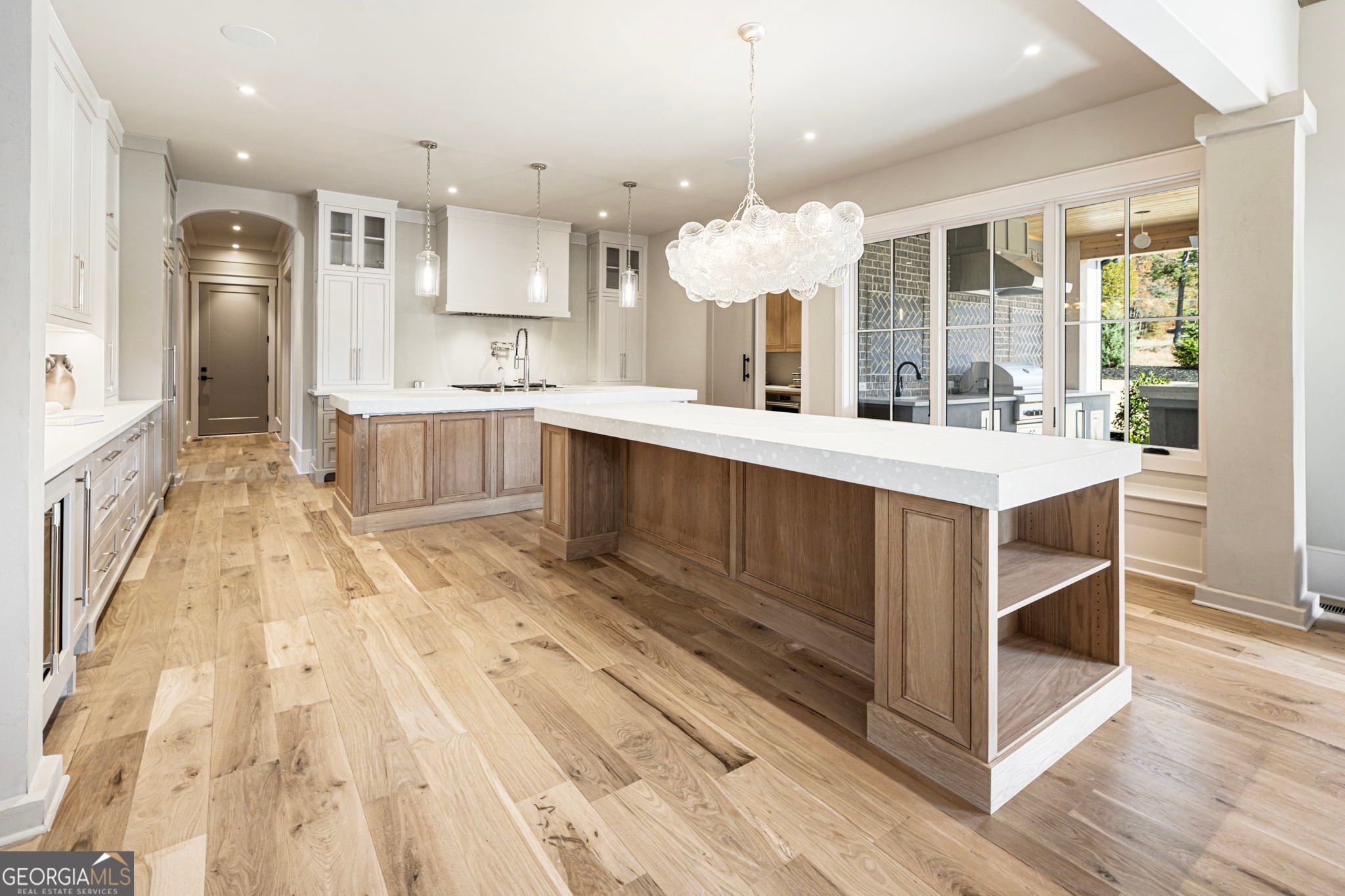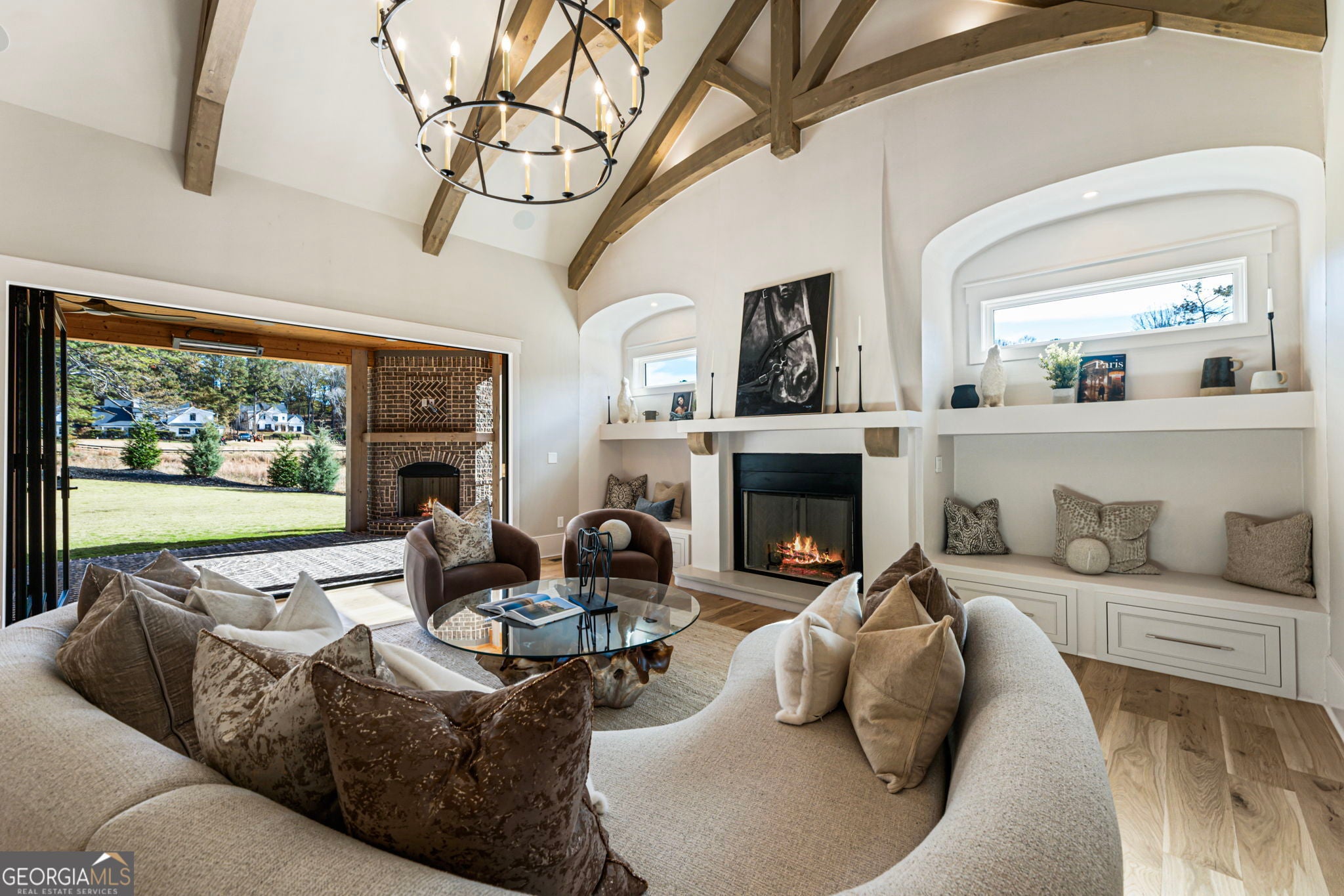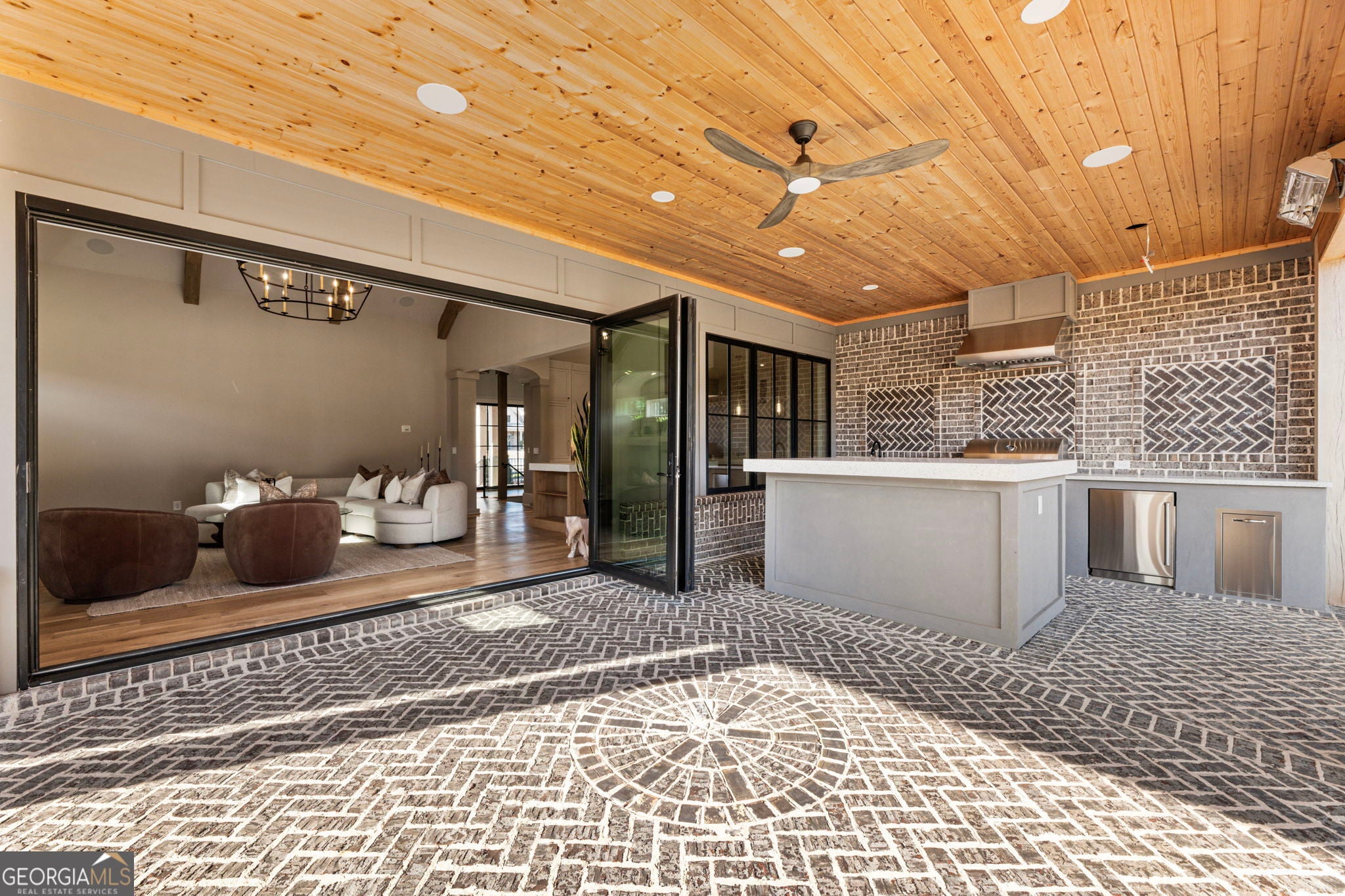 Welcome to a remarkable blend of craftsmanship, sophistication, and modern comfort. Arriving through one of two stately driveways, you're met by grand brick columns topped with glowing gas lanterns-a warm and distinguished introduction to the refined living that awaits. Thoughtfully designed and masterfully built, this new construction residence marries timeless architectural presence with cutting-edge technology and enduring materials. Every detail has been curated to elevate daily living, creating a home that feels both elegant and inviting. Nestled in the heart of Alpharetta's prestigious Cherokee County, the property offers the tranquility of a private enclave with effortless access to acclaimed schools-Avery, Creekland, Creekview, and The Haven Academy-along with premier dining, boutique shopping, and expansive parks. The exterior showcases striking brick construction and classic Craftsman styling. Inside, rich stain-in-place hardwoods, handcrafted cabinetry, and high-performance concrete countertops with integrated sinks set the tone for exceptional quality. The chef's kitchen and outdoor culinary space feature professional Wolf and Sub-Zero appliances, perfect for gatherings or intimate evenings at home. A 1,000-sq-ft covered patio extends the living space, finished with herringbone brickwork, built-in heaters, and generous open-air seating for year-round enjoyment. The primary suite is a serene retreat with heated tile floors and a boutique-inspired custom closet. This smart home offers full mobile control of HVAC, lighting, surround sound, and Lutron window shades, along with EV-ready wiring. The F-Wave premium synthetic roof carries a lifetime warranty and provides top-tier protection from high winds, hail, and fire. Jeld-Wen casement windows include a 10-year frame and 20-year glass warranty. With nearly 10,000 sq ft under roof-including garage and covered porches-the home offers an impressive scale and thoughtful functionality. The backyard is approved for a future in-ground pool. Set within a private collection of just seven curated new homes (lots not sold individually), this residence offers rare exclusivity. Once all seven homes are finished the homeowners are welcome to install a Private Gate and the Main Entrance for further privacy.