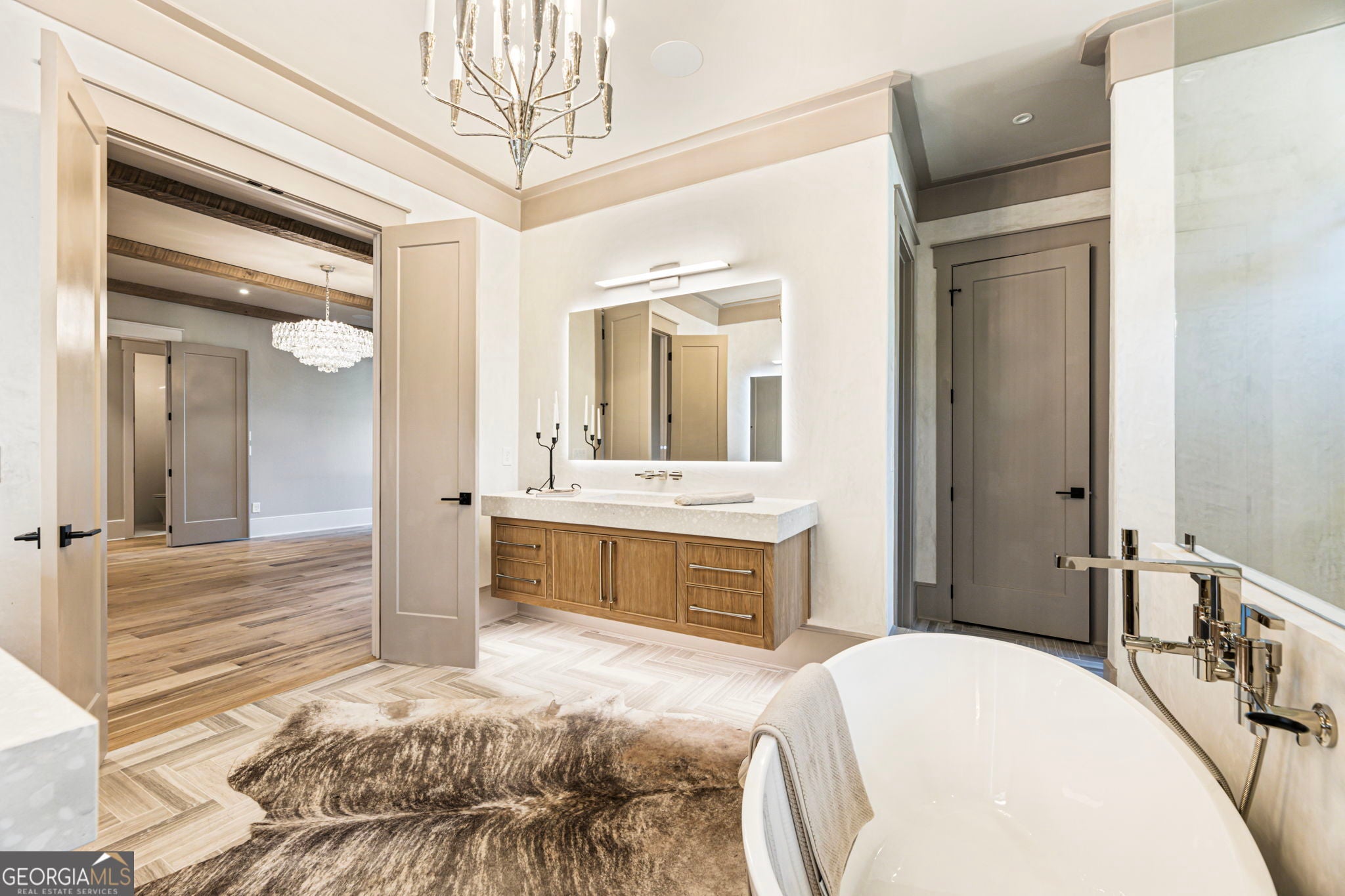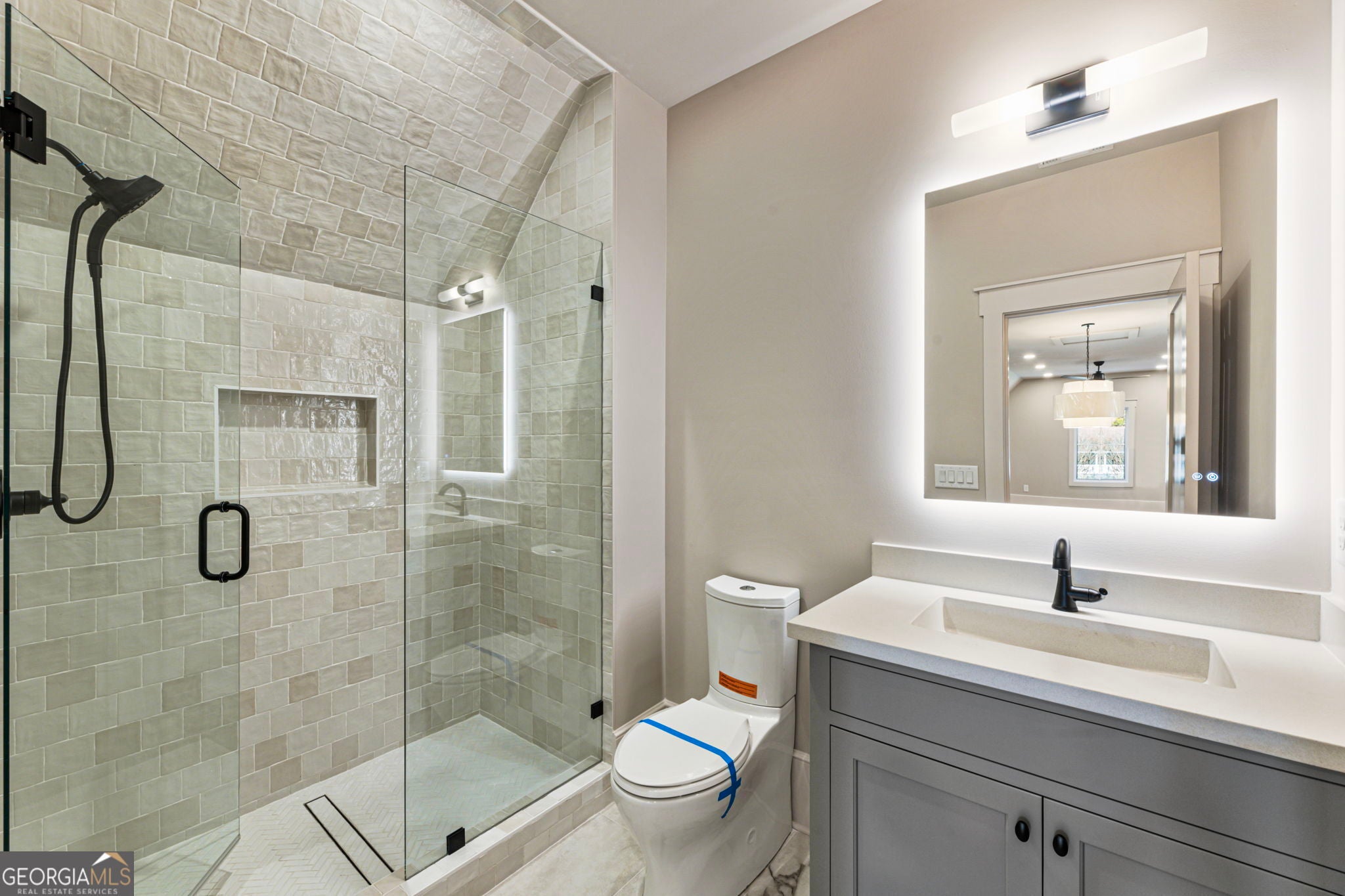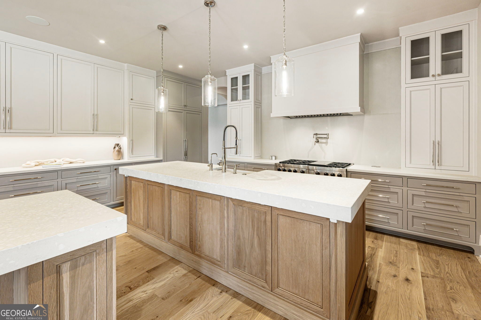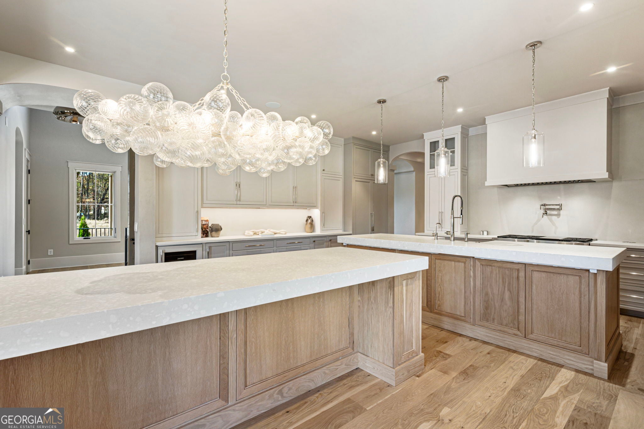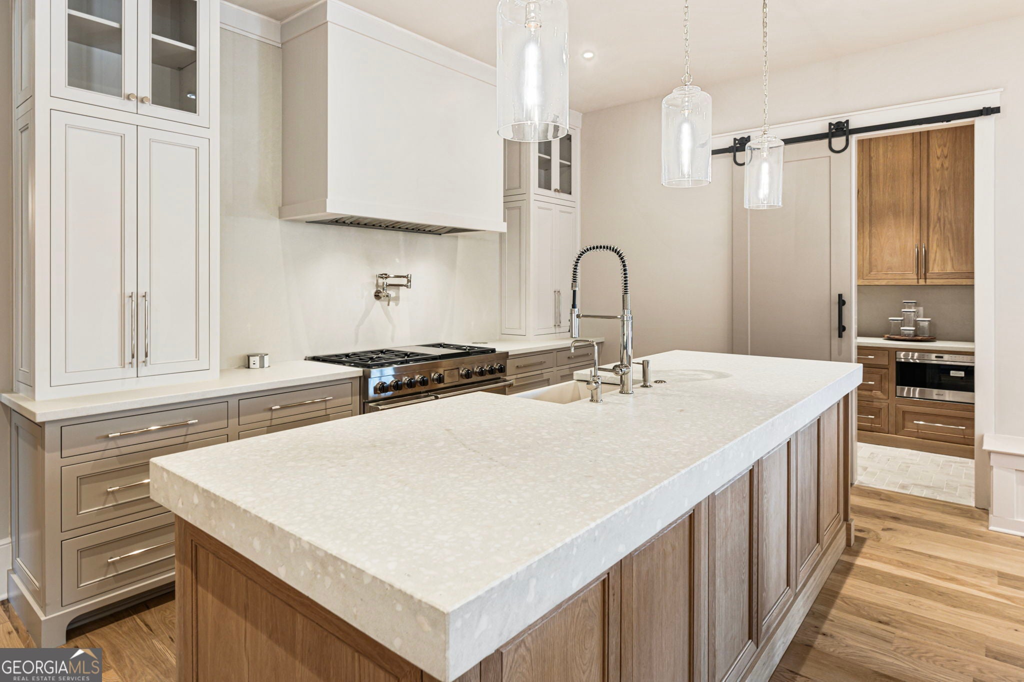 Welcome to a remarkable blend of craftsmanship, sophistication, and modern comfort. Arriving through one of two stately driveways, you're met by grand brick columns topped with glowing gas lanterns-a warm and distinguished introduction to the refined living that awaits. Thoughtfully designed and masterfully built, this new construction residence marries timeless architectural presence with cutting-edge technology and enduring materials. Every detail has been curated to elevate daily living, creating a home that feels both elegant and inviting. Nestled in the heart of Alpharetta's prestigious Cherokee County, the property offers the tranquility of a private enclave with effortless access to acclaimed schools-Avery, Creekland, Creekview, and The Haven Academy-along with premier dining, boutique shopping, and expansive parks. The exterior showcases striking brick construction and classic Craftsman styling. Inside, rich stain-in-place hardwoods, handcrafted cabinetry, and high-performance concrete countertops with integrated sinks set the tone for exceptional quality. The chef's kitchen and outdoor culinary space feature professional Wolf and Sub-Zero appliances, perfect for gatherings or intimate evenings at home. A 1,000-sq-ft covered patio extends the living space, finished with herringbone brickwork, built-in heaters, and generous open-air seating for year-round enjoyment. The primary suite is a serene retreat with heated tile floors and a boutique-inspired custom closet. This smart home offers full mobile control of HVAC, lighting, surround sound, and Lutron window shades, along with EV-ready wiring. The F-Wave premium synthetic roof carries a lifetime warranty and provides top-tier protection from high winds, hail, and fire. Jeld-Wen casement windows include a 10-year frame and 20-year glass warranty. With nearly 10,000 sq ft under roof-including garage and covered porches-the home offers an impressive scale and thoughtful functionality. The backyard is approved for a future in-ground pool. Set within a private collection of just seven curated new homes (lots not sold individually), this residence offers rare exclusivity. Once all seven homes are finished the homeowners are welcome to install a Private Gate and the Main Entrance for further privacy.