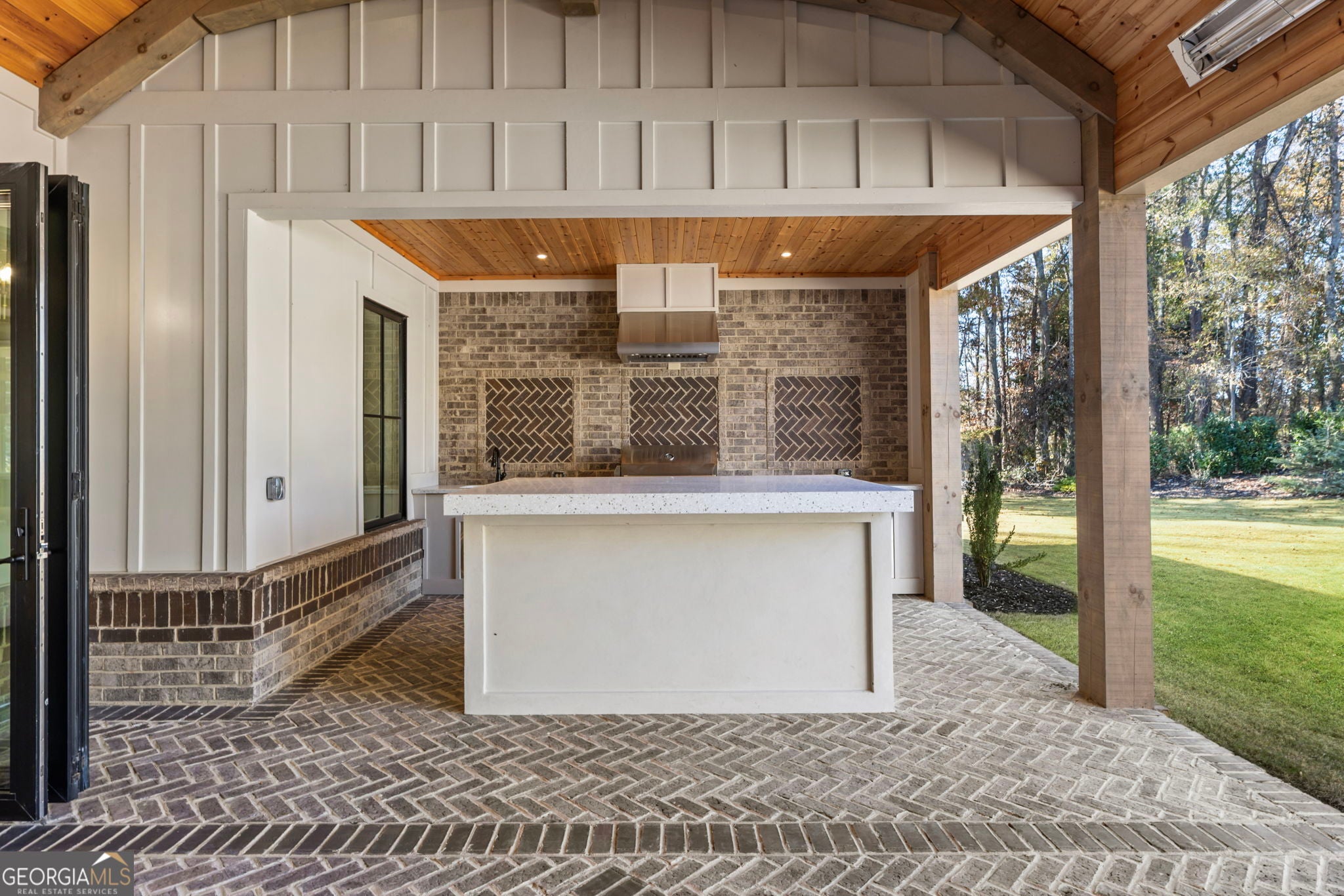 Discover exceptional new construction in Alpharetta's sought-after Cherokee County. A pair of brick columns with gas lanterns welcomes you into this beautifully crafted Craftsman-style home, built with premium materials, advanced technology, and meticulous attention to detail. The brick exterior, timeless architecture, and serene location offer the perfect blend of luxury and convenience, minutes from top-rated schools including Avery, Creekland, Creekview, and The Haven Academy. Inside, the home features top-of-the-line appliances, locally crafted custom cabinetry, stain-in-place hardwood flooring, high-performance concrete countertops with integrated sinks, designer fixtures, and extensive trim work. The primary suite includes heated tile floors and a beautifully designed custom closet. A true entertainer's dream, the 1,000 sq ft covered patio showcases herringbone brick detailing, built-in heaters, and a full outdoor kitchen with Wolf and Sub-Zero appliances. The backyard is approved for an inground pool. Additional highlights include smart-home control of HVAC, lighting, surround sound, and Lutron shades; prewired EV outlet; casement windows with extended warranties; and F-Wave synthetic shingles offering a lifetime warranty, Class 4 hail rating, and 130-mph wind resistance. This pre-planned community will feature seven luxury homes. Once all homes are built, homeowners have the option to add a Private Gate at the Entrance. Lots are not sold individually. Total area under roof, including porches and garage, is 6,434 sq ft.