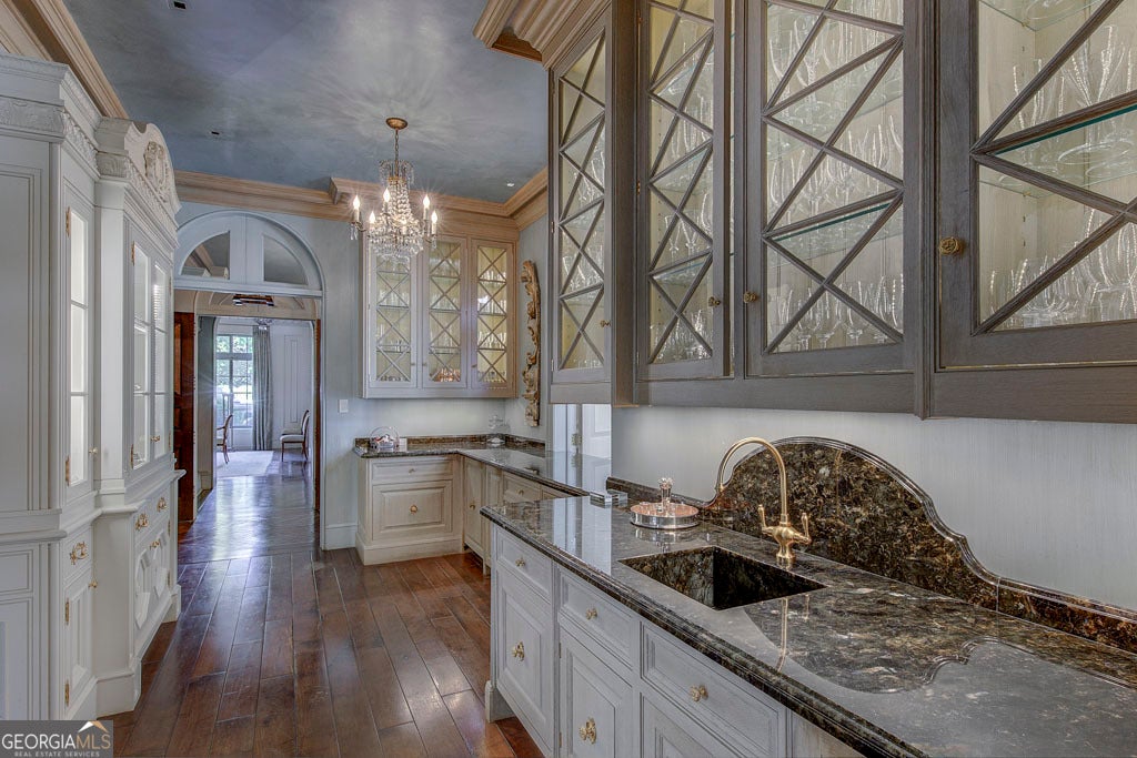 Welcome to LONGVIEW, a distinguished lakefront estate on pristine Lake Oliver in Columbus, Georgia. Originally designed by architect Yong Pak and thoughtfully renovated by Spitzmiller & Norris along with builder Johnny Cargill, this home blends timeless Southern elegance with refined craftsmanship. Interiors by Suzanne Kasler and landscape design by Page | Duke and Carmen Johnston create a seamless harmony between home and gardens. A formal oak allee leads to the gated, fully fenced property with rose gardens, parterre garden, and a private "secret garden." Inside, the Jerusalem stone foyer opens to a double staircase and a two-story living room with Venetian plaster walls and sweeping lake views. The family room features lime-washed white oak paneling, and the river room is accented with a pecky cypress coffered ceiling. The new kitchen includes Calcutta gold marble, Christopher Peacock cabinetry, Waterworks fixtures, and a butler's pantry. A new main level primary suite offers completely redesigned bath & closets. Upstairs are six additional ensuite bedrooms. The terrace level includes a commercial-grade catering kitchen, walk-in cooler, dumbwaiter, wellness suite with sauna and steam room, large exercise room, wine cellar and fully automated three-stall gun range. Additional features include concrete and steel structure, geothermal HVAC, Lutron lighting, Hope's steel windows and doors, Elevator to all three levels, a whole-house generator, cedar-lined closets, four-car garages, pebble tec heated pool, custom chicken coop, playhouse, and a newly rebuilt two-story boathouse with motorized lifts and cedar shake roof. Lake Oliver offers one of the most refined & private waterfront living environments in the region. Exclusive, intimate & gorgeous, the lake stretches along the Chattahoochee River and worlds away from city noise but within fifteen minutes to Columbus Airport & 1.5 hours to Atlanta's Hartsfield-Jackson International Airport. Columbus, Georgia offers a sophisticated yet relaxed lifestyle and conveniently located within 1.5 hours of Atlanta. A city well known for its outdoor living, with miles of riverfront walking & cycling paths, top tier golf courses, private clubs, private airport & access to one of the premier urban whitewater courses in the world. Columbus is also anchored by the presence of Fortune 500 & Fortune 1000 companies.