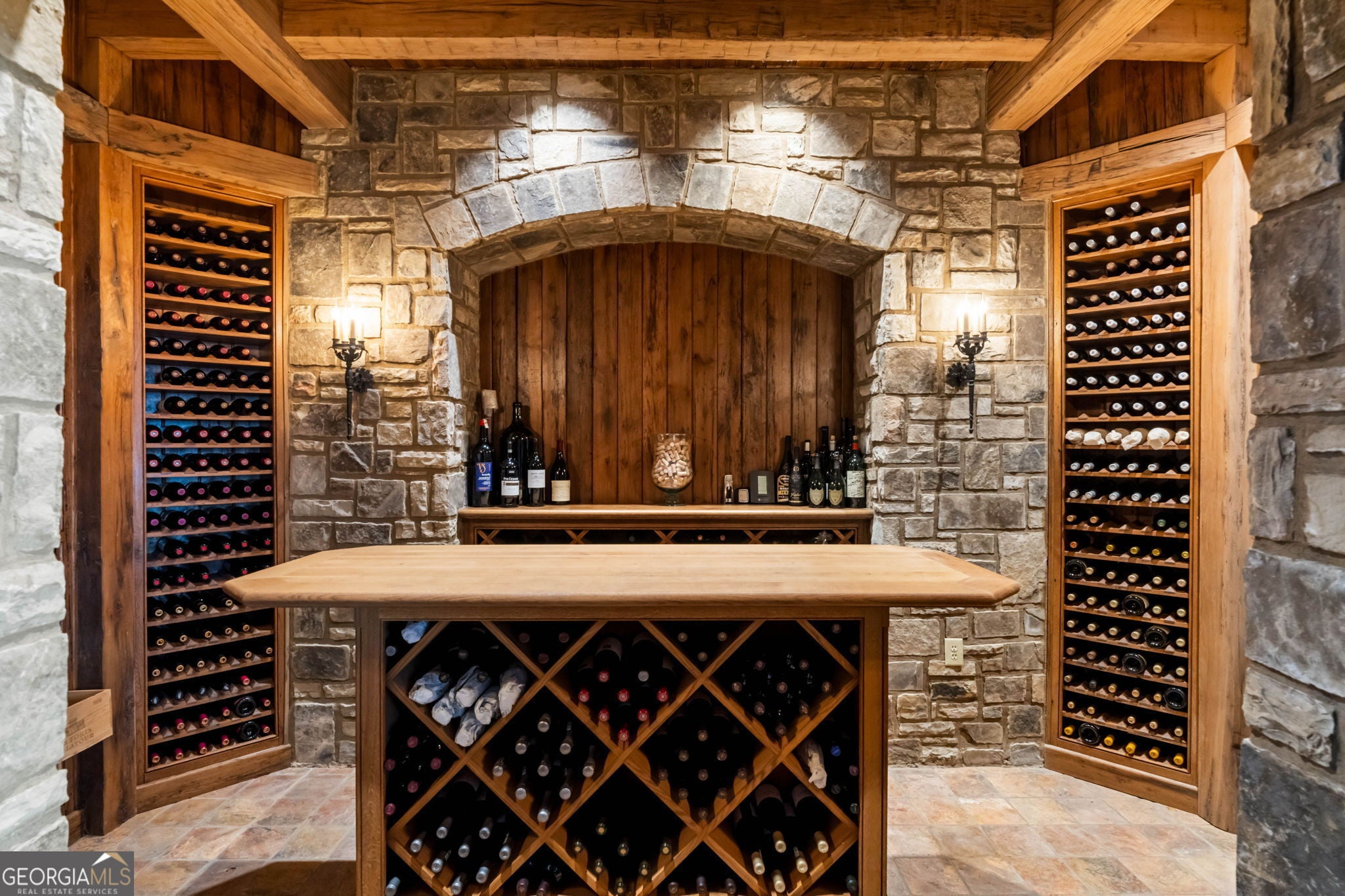 - Interior FeaturesBeamed Ceilings, Bookcases, Double Vanity, Master On Main Level, Rear Stairs, Sauna, Walk-In Closet(s), Wet Bar, Wine Cellar