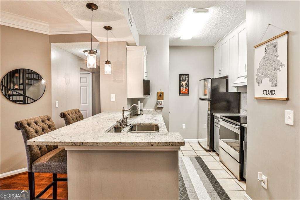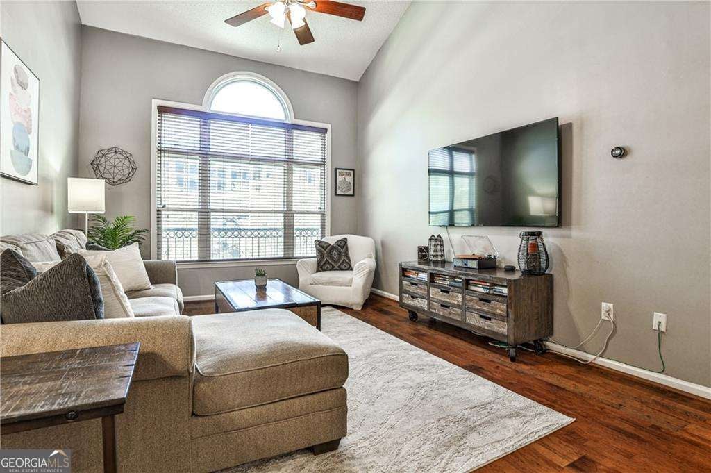 Fabulous renovated 1BR+LOFT nestled in the heart of Midtown minutes from your favorite intown amenities. Own one of the limited top-floor lofted plans featuring extraordinary design and space with a deeded GARAGE parking space. This unit has it all, boasting hardwoods, 16-foot ceilings in the two-story living room and the west facing position brings in an abundance of afternoon natural light. Bright white kitchen renovations included the cabinets adding a custom microwave shelf, tile backsplash, granite counters and SS appliances. The open concept connects the Kitchen, the Breakfast Nook and the Living Room all enjoying views of the expansive elliptical window. The main floor bedroom offers elevated II-foot ceilings seamlessly continuing the highly desirable open and airy concept. This bedroom also benefits from a generously sized window, a ceiling fan to enhance the comfort and a spacious walk-in closet. The well appointed and refreshed bathroom is easily accessed from all the living areas. The huge loft functions well as a home office, den or an extra bedroom. Laundry closet stores a side-by-side washer/dryer. Move-in condition! Newer HVAC system (2017). Tuscany. is a charming gated community with a fitness center, pool. stunning community courtyards with grills for outdoor gatherings 2 dog runs, EV station all in a superb Midtown location just a few blocks from Piedmont Parka Peachtree and 10th Streets, the Midtown Marta Station, and so many restaurants and bars offering a modern urban lifestyle with the ultimate in convenience.