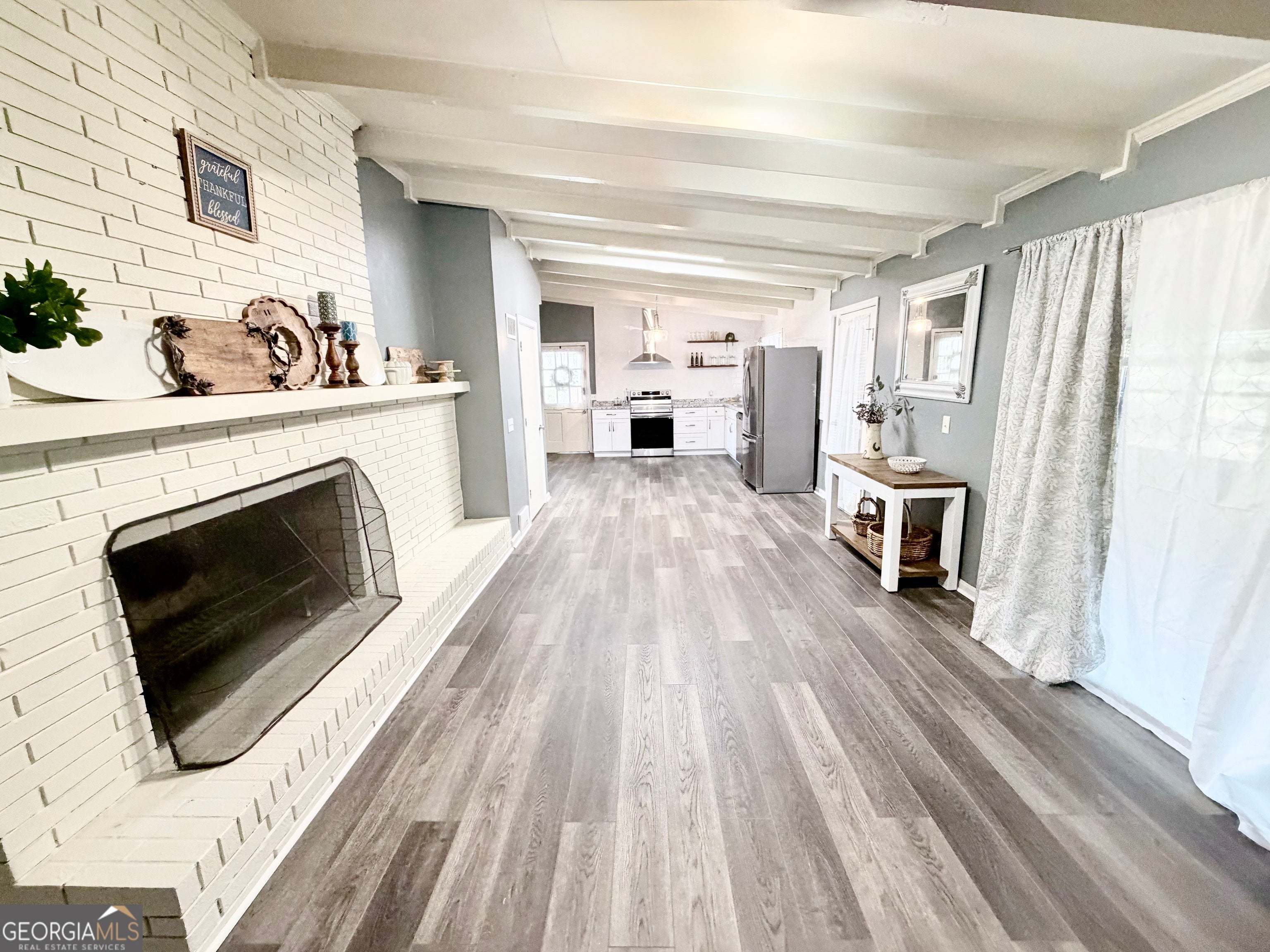 Welcome home to this beautifully updated 3 bed, 2 bath brick residence offering 2,366 sq. ft. of spacious, comfortable living right in the heart of Metter, Georgia. Full of charm and character, this home blends modern updates with timeless appeal. Step inside to find stunning beam-vaulted ceilings that create an open, airy feel throughout the main living spaces. The completely updated kitchen features sleek stainless steel appliances, contemporary finishes, and plenty of space-perfect for the home cook who loves to entertain. the centerpiece of the home is the massive double-sided fireplace, adding warmth and ambiance to both the living room and dining area. Ideal for cozy nights in or hosting gatherings, this unique feature enhances the home's inviting atmosphere. An additional sunroom offers even more living space-great for a playroom, home office, reading nook, or year-round relaxation with views of the outdoors. With its generous layout, modern upgrades, and exceptional charm, this home is truly made for entertaining family and friends. Enjoy the ease of being close to all that Metter has to offer while living in comfort and style. Don't miss this beautiful brick home filled with character and modern convenience-your perfect blend of Southern charm and updated living!