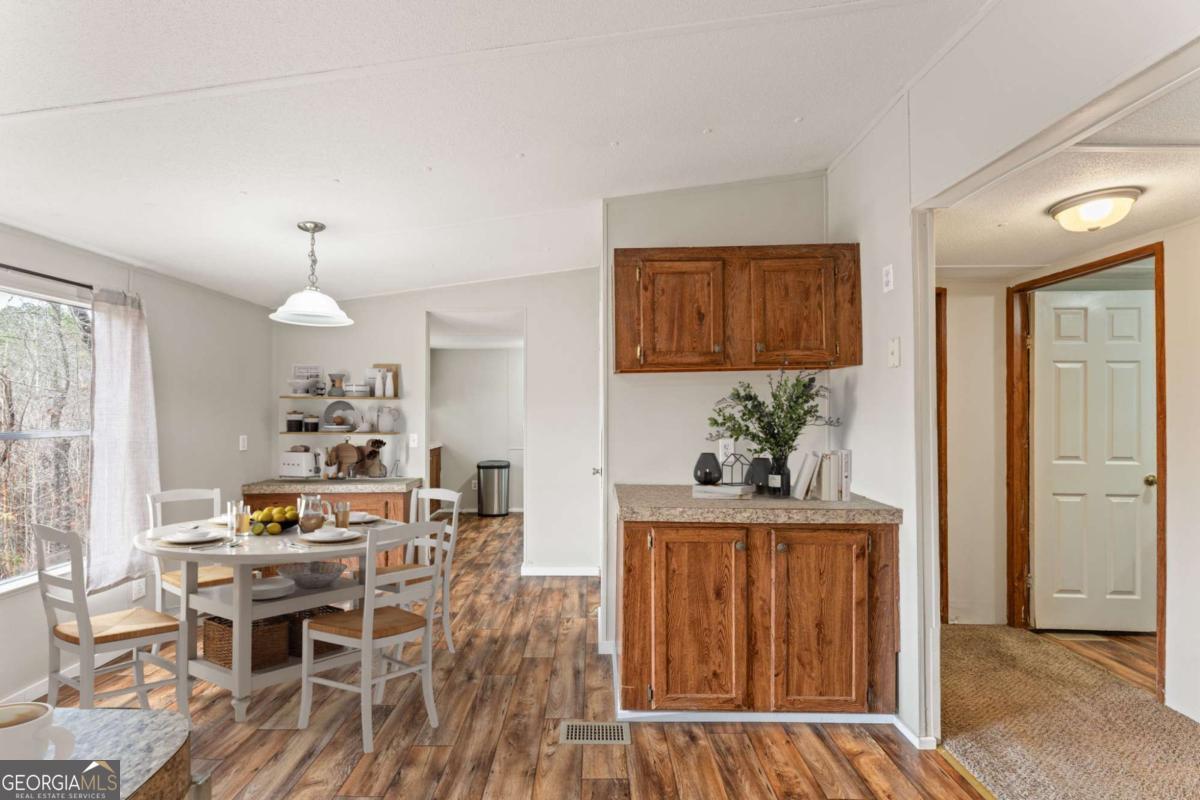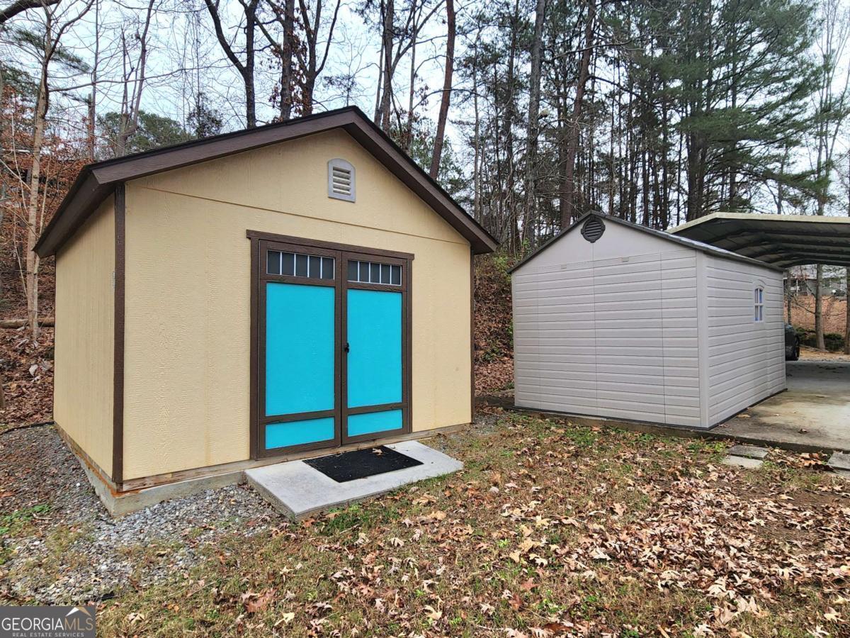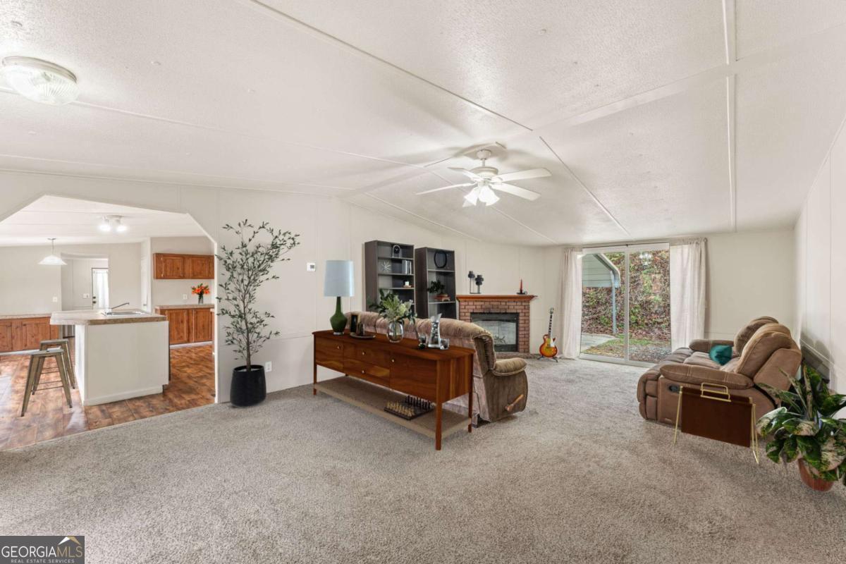 Enjoy peaceful one-level living on more than 3 acres of beautiful land near Lake Allatoona, complete with a creek, abundant wildlife, and exceptional privacy. Inside, the home features a spacious and comfortable open living and dining area with a charming fireplace and large windows that showcase the natural surroundings. The kitchen offers newer appliances, including a refrigerator and dishwasher, plus counter seating and easy flow to both the dining area and the breakfast nook. Three large windows bring in abundant natural light and provide stunning forest views. Next to the breakfast nook is additional storage and pantry space, with convenient access to the full-size laundry and mudroom. From here, step directly onto the expansive back deck, perfectly positioned for outdoor enjoyment. The primary bedroom is generously sized and includes an ensuite bathroom with double vanities and two closets, offering excellent storage and functionality. Two additional bedrooms sit off the hallway near the kitchen, with a full bathroom located between them. Outside, the large wood deck overlooks the peaceful acreage and sets the stage for relaxation or gatherings. With more than 3 acres, there is room for gardening, outdoor games, exploring the wooded areas, target practice, or simply enjoying quiet mornings and evenings surrounded by nature. The property features a beautiful creek, multiple berry bushes, and regular friendly wildlife sightings. A two-car carport provides covered parking with additional space in the driveway. A garden shed sits off the carport, and a new outbuilding built on a concrete slab expands the possibilities, ideal for a gym, storage, hobbies, a workshop, or future customization. The metal roof with gutter guards adds to its low-maintenance appeal. This quiet neighborhood offers significant space between homes and a serene, natural setting while remaining close to modern conveniences, including a nearby fire station and quick access to Lake Allatoona. From GA-20, onto Ficklen Church Way, then a quick right, and you'll be right home. A comfortable home on stunning land, ready for your next chapter.