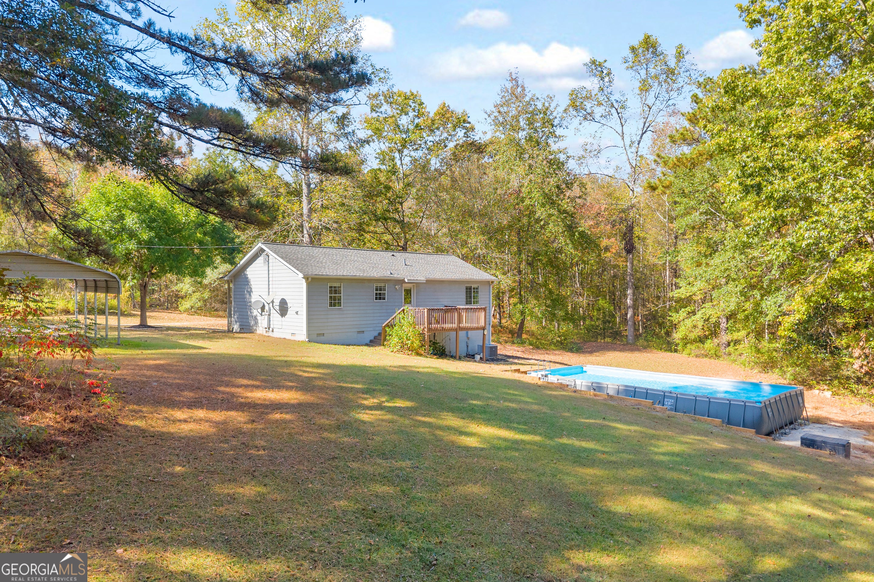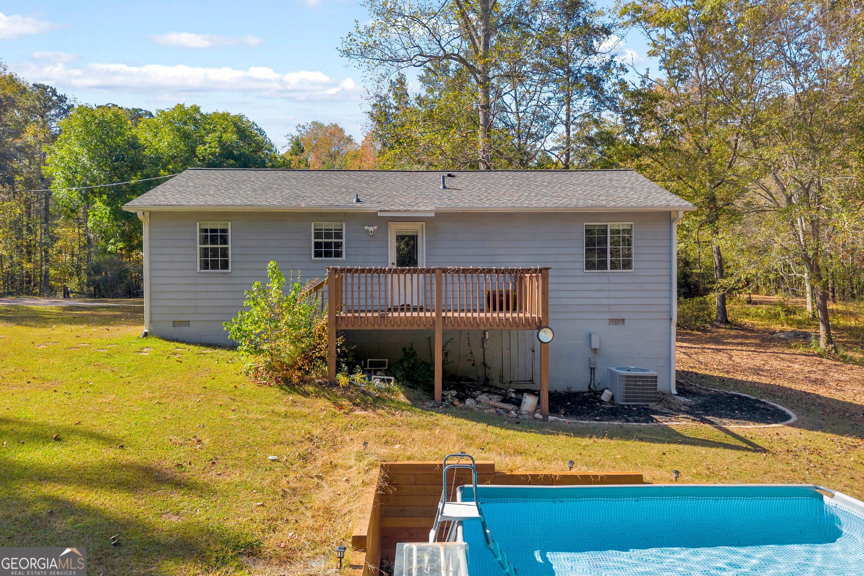 Country home on 3.8 private, useable acres in Newnan. The land is beautiful. The kitchen has granite countertops with stainless steel appliances. Huge above ground pool is in great shape. Architectural roof with plenty of life left. The crawlspace offers additional room for storage, and is in great condition as it was fully encapsulated in 2024. As soon as you pull up to this property you won't want to leave!