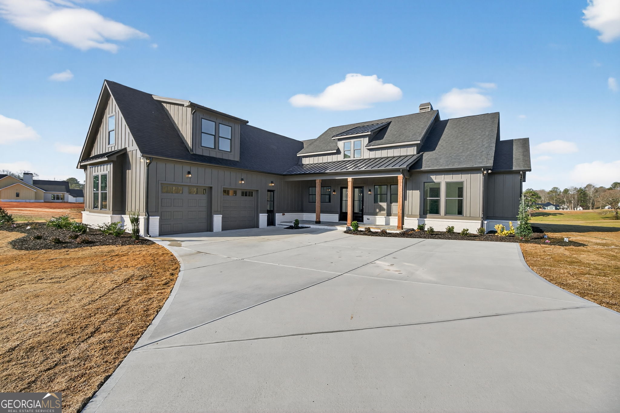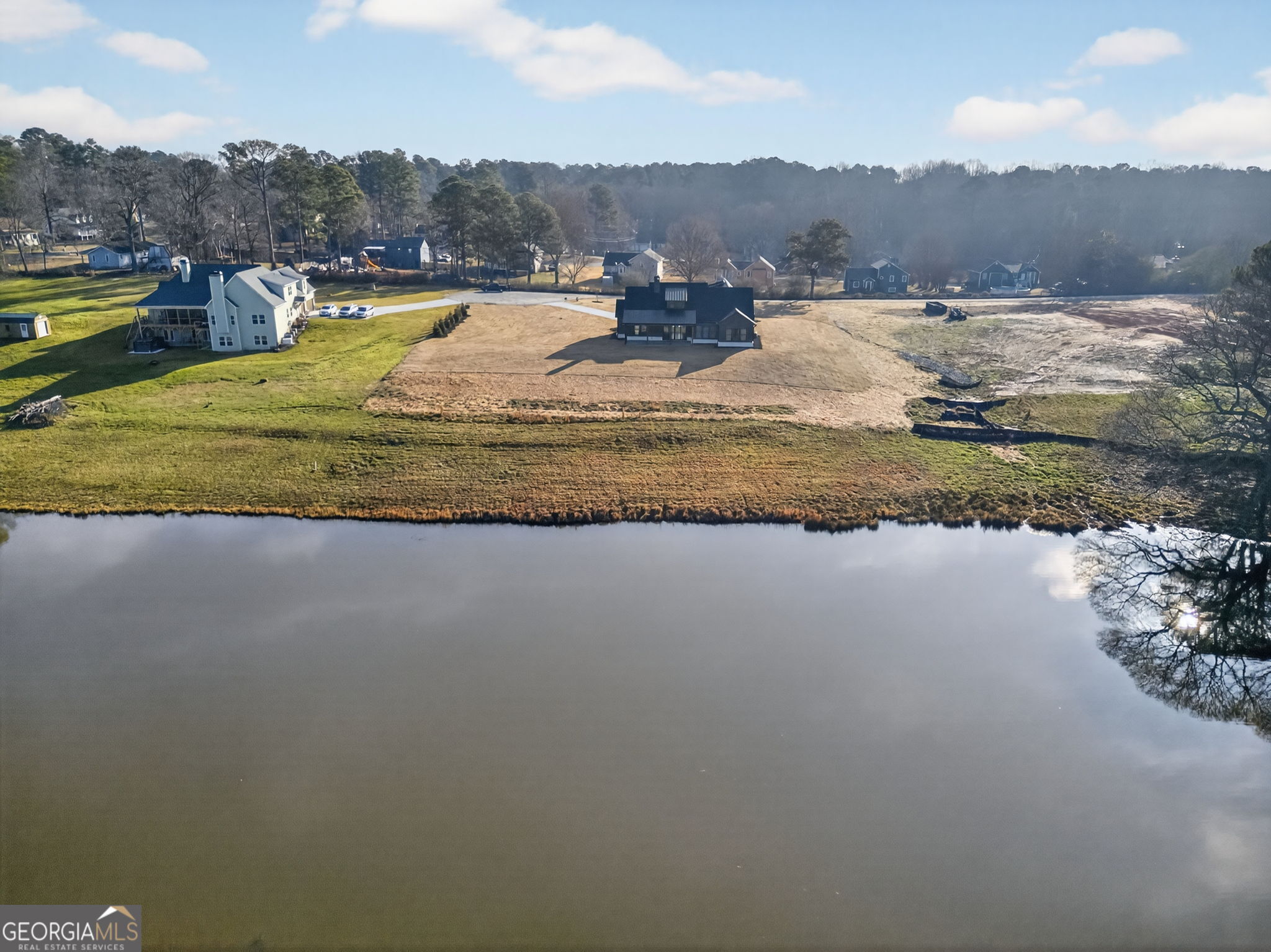 LAKE FRONT PROPERTY sitting beautifully on Lake Jane. NO HOA....new home under construction is the Keily floorplan, 4 BR/3 BA beautiful Farmhouse Ranch style home on 3.57-acre lot. This home is built on a slab with beautiful features including a brick water table on all four sides with brick accent(brick will be painted white), black window package, hardi plank siding, 18 ft garage door with opener, 30 Year architectural shingles, 5" gutters. Kitchen with large walk-in pantry, beautiful upgraded wood inset cabinets, island, farmhouse sink, quartz countertops in the kitchen and master bath, granite countertops in the baths, beautiful Cafe brand stainless-steel appliances including a range, dishwasher, microwave AND refrigerator. Dining Room with 10 ft ceilings off of the kitchen, Spacious Living Room with fireplace and open concept plan,Office, split bedroom plan,jack and jill bath for two spare bedrooms, finished bedroom with full bath upstairs, ceramic tile flooring in baths, hardwood flooring throughout. Master bathroom has his/her split double vanity, ceramic tile shower, huge walk-in closet. Upgraded closet systems throughout, huge laundry room with utility sink. This home will feature a 12 ft dual bifold door (3 pane sliders each 4 ft in size that will give you an open 12 ft door area) that opens to the covered rear back porch area with flag stoned flooring with a breathtaking view of the lake. Closing attorney is Talley, Richardson and Cable in Dallas, GA. Lake Jane Path will be paved in the Spring of 2026. When using the preferred lender, Marybeth Zimmerman with SWBC Mortgage the buyer will receive up to a $3,000 credit towards closing costs from lender and the builder will pay an additional $3,000 towards closing when using the preferred lender*****Builder may make changes/substitutions****. *****plan shown is rendering and some changes made be made by the builder****.