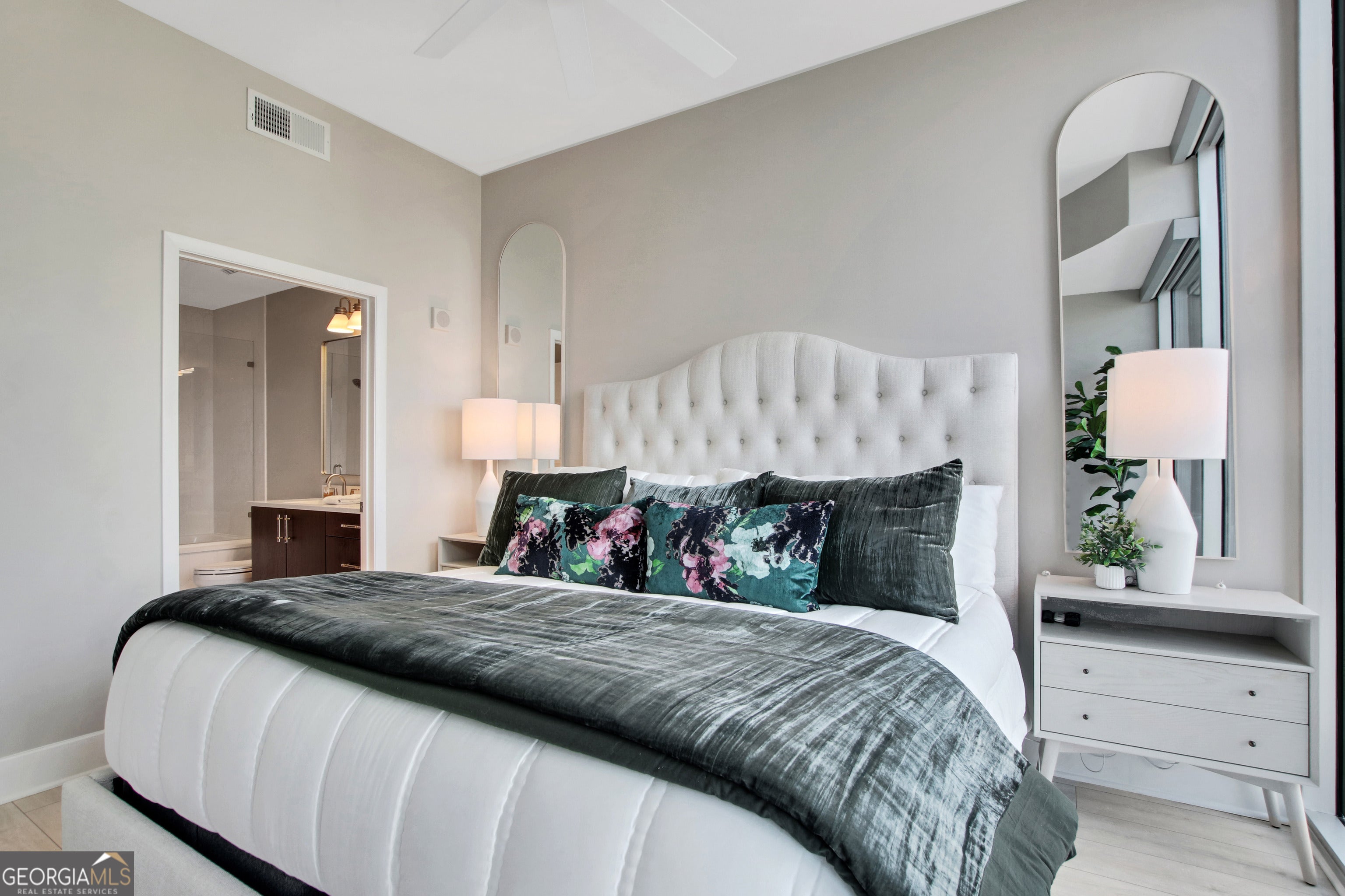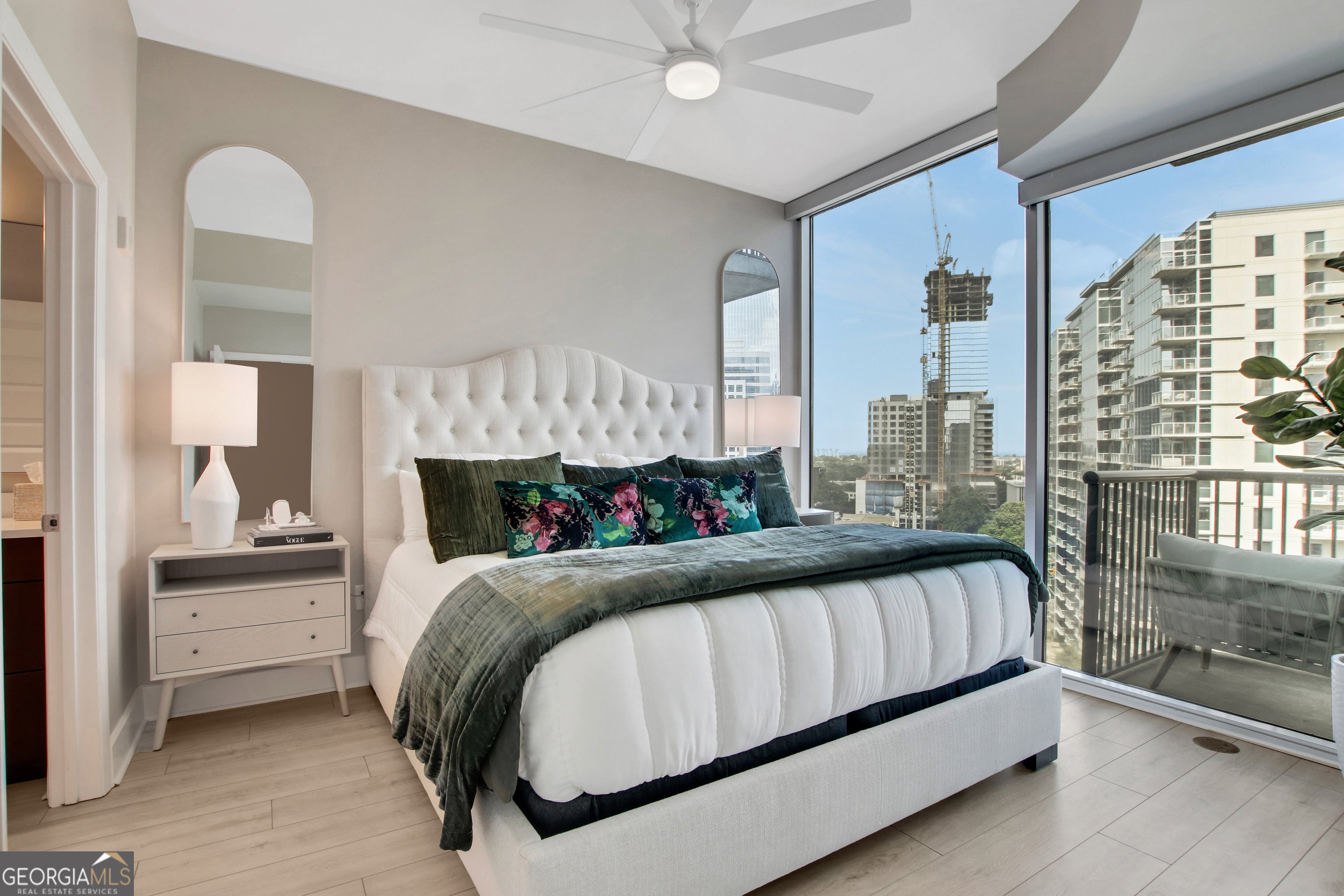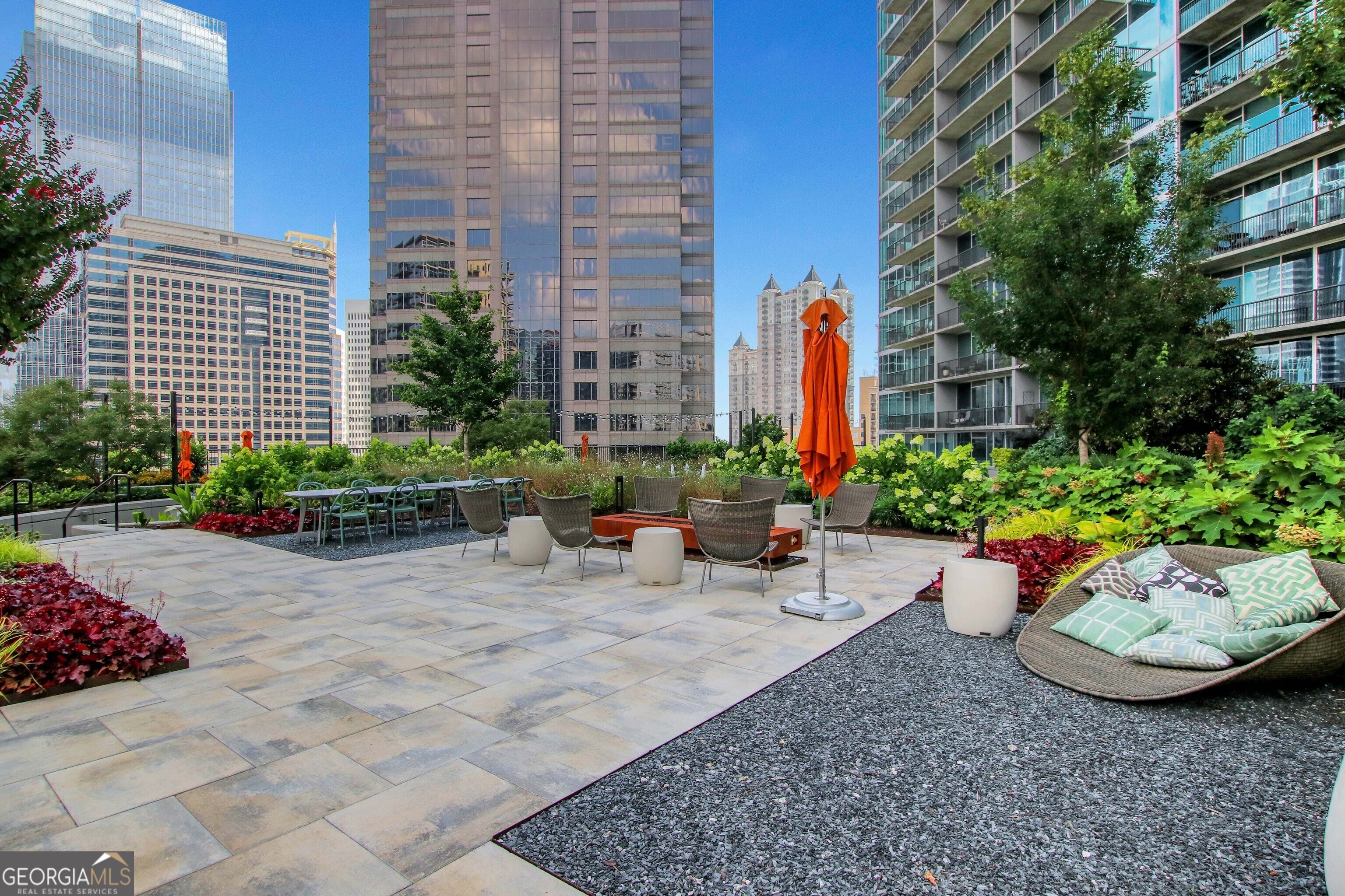 Welcome to 1010 Midtown-where skyline views, modern design, and unbeatable walkability come together in one of Atlanta's most iconic addresses. This freshly updated 1-bedroom residence puts you right on the Peachtree Curve with incredible west-facing views of Midtown and Downtown, plus nightly sunsets that steal the show. Recent updates include, new flooring throughout, kitchen backsplash, kitchen counters with waterfall, fans and lighting, custom closet, bathroom counters and shower tile, new hardware throughout, custom cabinets and shelving, new HVAC, and custom built desk in foyer. Inside, floor-to-ceiling windows with electric shades allow the space to flood with natural light, creating a dramatic yet calming backdrop whether you're relaxing or entertaining. The open kitchen is equipped with stainless steel appliances, granite countertops, and sleek cabinets, while the bedroom offers sweeping views. 1010 Midtown offers resort-style amenities including a rooftop Sky Park with saline pool, outdoor kitchen, grilling stations, gardens, and plenty of space to unwind. Stay active in the fully equipped fitness center-complete with Peloton bikes-or host friends in the clubroom with lounge and billiards. The building is pet-friendly, has 24-hour concierge service, and offers secure, premium parking plus free in-unit and building-wide WiFi. You're just steps from Piedmont Park, MARTA, the Fox Theatre, High Museum, and some of the best restaurants in the city. Modern comfort, a coveted location, and that golden-hour skyline view-this is Midtown living done right.