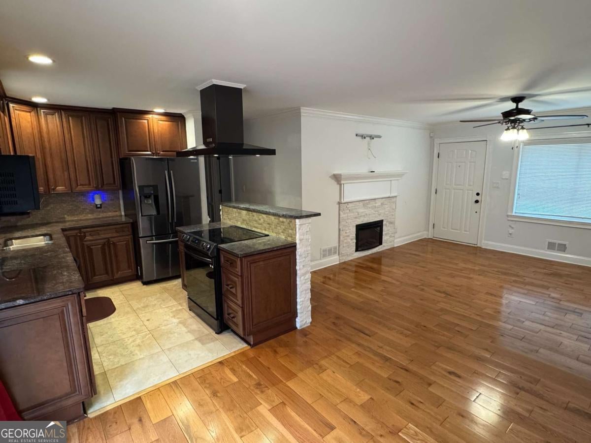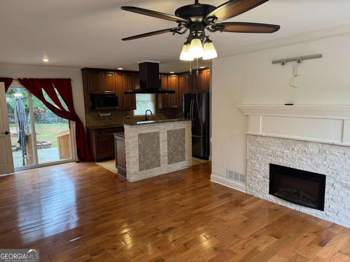 Beautifully Renovated 3-Bedroom, 2-Bath Home - 837 Parkstone Dr., Stone Mountain, GA 30083 Discover comfort and style in this beautifully renovated single-family home located in a quiet, established Stone Mountain neighborhood. This spacious 3-bedroom, 2-bath property features an inviting open-concept floor plan filled with natural light and modern finishes throughout. Step into the large living area highlighted by a cozy fireplace, perfect for relaxing evenings at home. The renovated kitchen is a showstopper-complete with stainless steel appliances, granite countertops, stylish cabinetry, and a seamless flow into the dining and living spaces. Both bathrooms have been updated with elegant travertine tile, giving them a spa-like feel. The bedrooms offer ample space and comfort, making this home ideal for families, professionals, or anyone seeking modern living in a peaceful setting. Washer and Dryer remains with the property for an added convenance. Outside, enjoy a large backyard with a built-in fire pit-great for entertaining, weekend gatherings, or quiet nights under the stars. Also included is a large shed/workshop - great for extra storage. Location is a strong highlight: you're just minutes from the amenities of Stone Mountain Village with shopping, dining, and entertainment nearby, while still enjoying a residential suburban feel. The area is part of the broader Stone Mountain, GA community - a suburban city about 20 miles east of downtown Atlanta, offering a mix of small-town charm and convenient access to city amenities. This home combines modern upgrades with classic charm, delivering a warm and welcoming living experience in the heart of Stone Mountain.