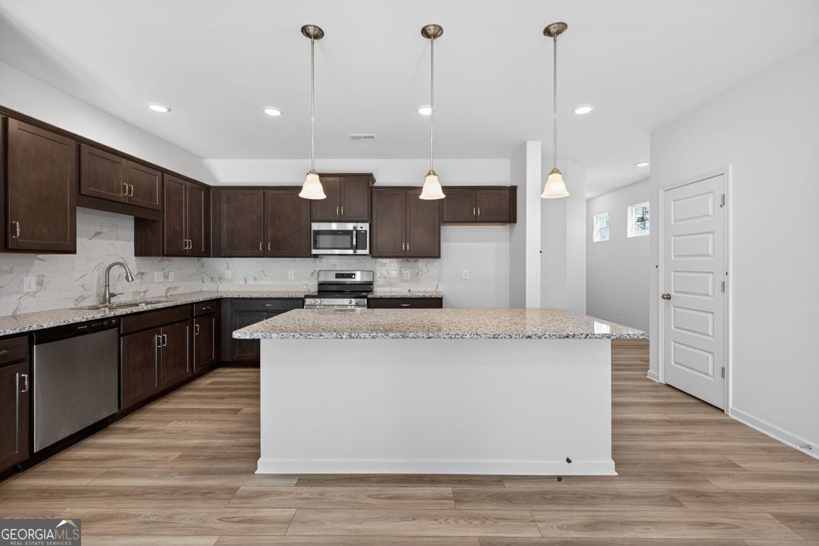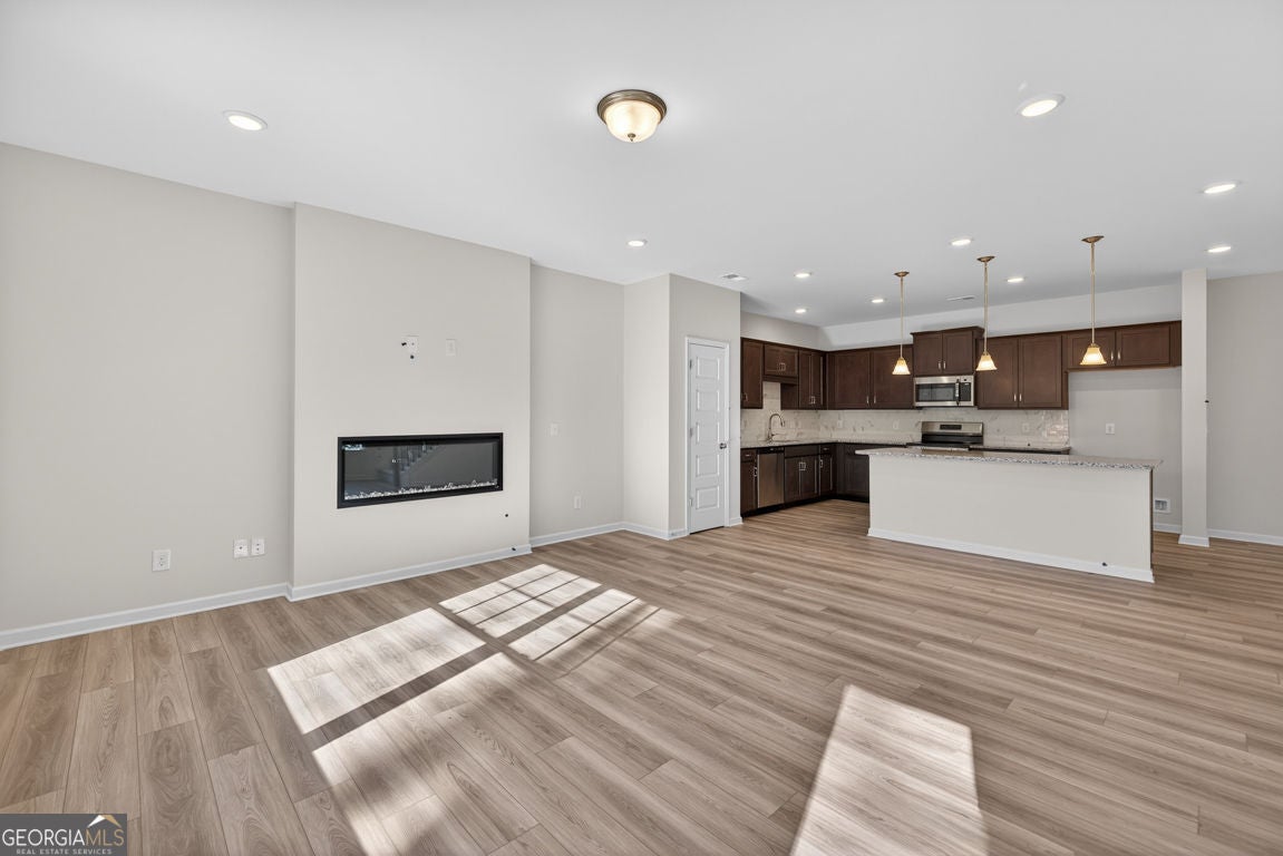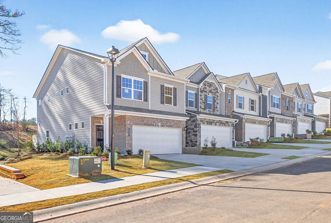 Move-in Ready December 2025! Welcome home to The Ellison II by Smith Douglas Homes, located in the exciting new Jameson Towns community in Villa Rica, GA! This end unit is one of our most popular 3-bedroom, 2.5-bath townhome plans offering the perfect blend of style, comfort, and low-maintenance living. Step inside from the welcoming foyer to an open-concept main level featuring luxury vinyl plank flooring, a spacious great room with a modern linear fireplace, and a kitchen complete with a large center island, granite countertops, upgraded cabinetry, tile backsplash, stainless steel appliances, and a walk-in pantry. The kitchen flows seamlessly to the rear patio and private yard-ideal for relaxing or hosting friends and family. Upstairs, the open iron staircase leads to a luxurious primary suite designed for comfort, featuring a tray ceiling, dual vanity bath, tiled shower, Garden tub, separate water closet, and a generous walk-in closet. Two additional bedrooms, a shared hall bath, and a convenient laundry room round out the upper level. Enjoy 9-foot ceilings on both floors, enhancing the home's bright and airy feel throughout. Residents at Jameson Towns will love planned community amenities including a pool with cabana, playground, and lawn maintenance included in the HOA, giving you more time to enjoy life. Photos are of actual home. Seller incentives with use of preferred lender.
