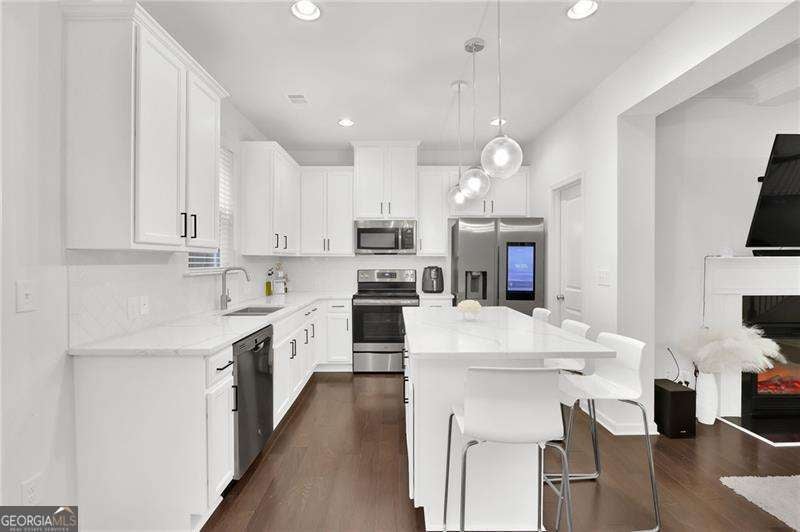 Welcome to your expansive, move-in-ready townhouse nestled in the sought-after gated Ashbrooke Trace community of Stone Mountain. As a bonus, a brand new HVAC heat pump system has been installed prior to listing which includes a transferable warranty, giving you immense peace of mind that you wouldn't get with neighboring listings. From the moment you arrive, this magnificent home will impress with its elegance, striking curb appeal, and beautifully landscaped exterior. Designed by Rocklyn Homes, this floor plan stands out as the largest 3 bedroom plan in the community, boasting nearly 2,000 square feet of living space and tons of storage. Thoughtfully crafted for both comfort and style, this 3-bedroom, 2.5-bath residence offers generous room for relaxation, entertaining, and growth. The main level features an inviting open concept family room, dining room and kitchen leading to your fenced backyard - perfect for hosting guests, entertaining and pet owners. The kitchen has been updated to brighten up and create beautiful contrast with new white quartz countertops, white cabinetry, upgraded cabinet pulls, new lighting, new fixtures and a new sink. Upstairs, the oversized primary suite with tray ceiling and a large walk-in closet with shelving systems creates a true retreat overlooking the private backyard. It also showcases an oversized spa-like en suite bath with soaking tub, walk in shower and double vanities. Two additional bedrooms, a loft area, a laundry room and a secondary full bath upstairs provide ample space for versatile living arrangements. Impeccable upgrades throughout this home are brimming with high-end finishes. Hardwood flooring throughout most of the main level are complemented by hardwood stair treads-especially beneficial for pets. A beautiful electric fireplace with interchangeable light settings is the focal point of the living room where you can mount your large screen TV and enjoy movies, shows or the big games. The home also features a nice loft area at the top of the stairs, a powder room on the main level, a large storage area underneath the main level staircase, a large walk in pantry, multiple walk-in closets and charm at every turn. Conveniently located, you're just: 10 minutes to Downtown Stone Mountain and Stone Mountain Park, 25-30 minutes to Buckhead, Midtown or Downtown Atlanta and 30 minutes to Hartsfield-Jackson International Airport. Ashbrook Trace is close to schools, dining and shopping. This stunning home is turnkey, with a neutral palette awaiting your personal touch and design. Don't miss your chance to own one of the most impressive properties in Bedford Estates-schedule a tour today! SPECIAL FINANCING OPPORTUNITIES AVAILABLE. $0 Down Payment with No PMI for 'first time' Homebuyers (no ownership in 3+ years) or possibly up to $7500 Closing Cost Grants. Investors welcome as well to add a lovely property to their long term rental portfolio or a great one to start your portfolio.