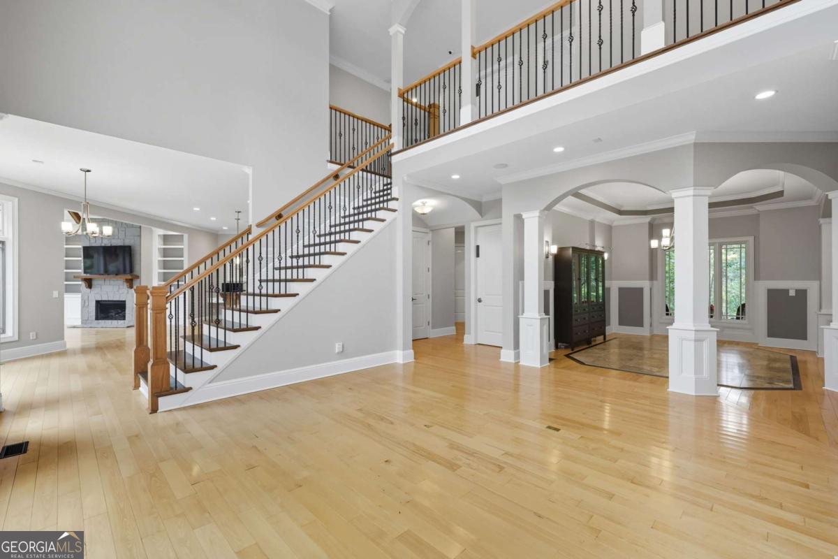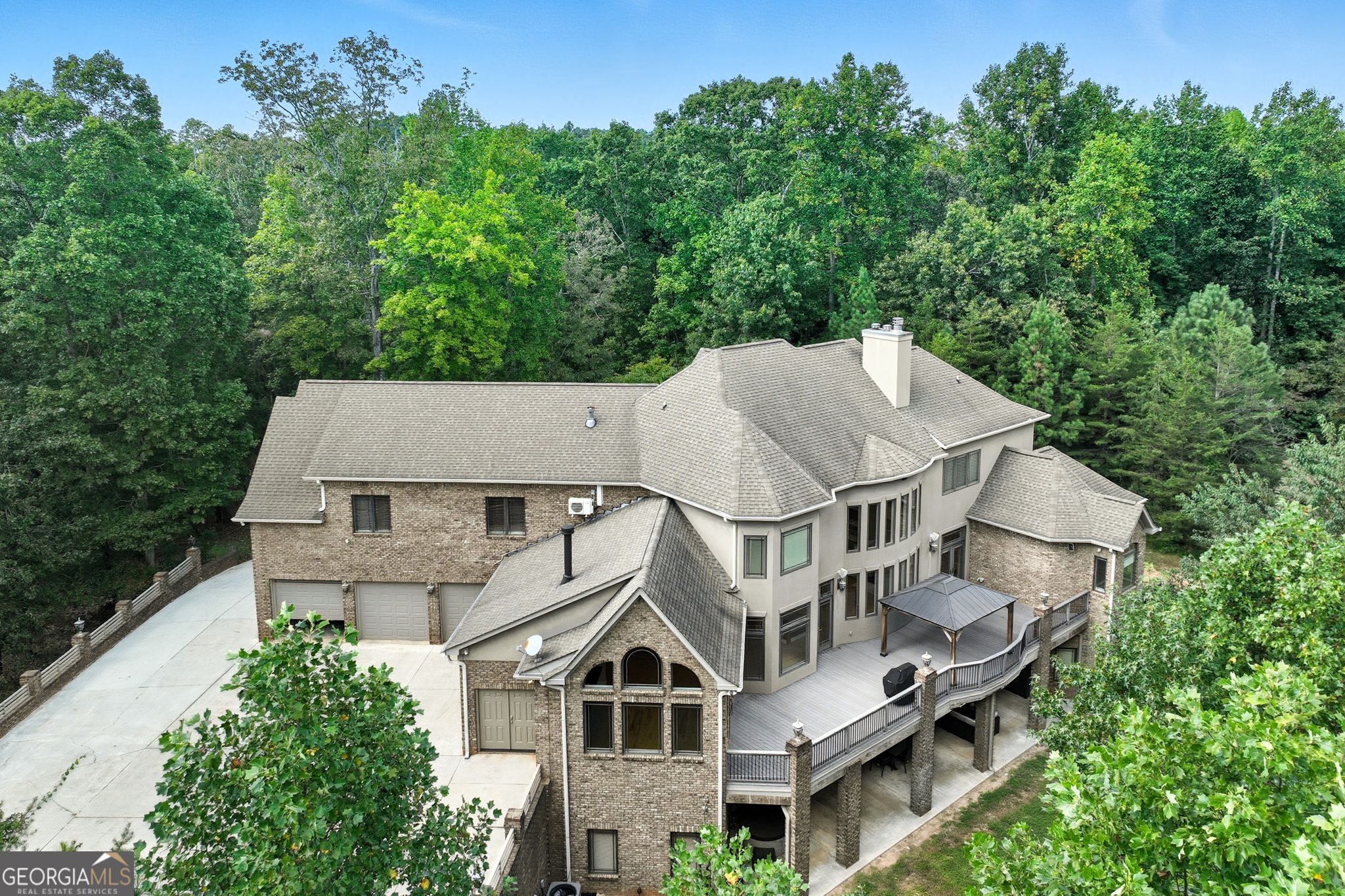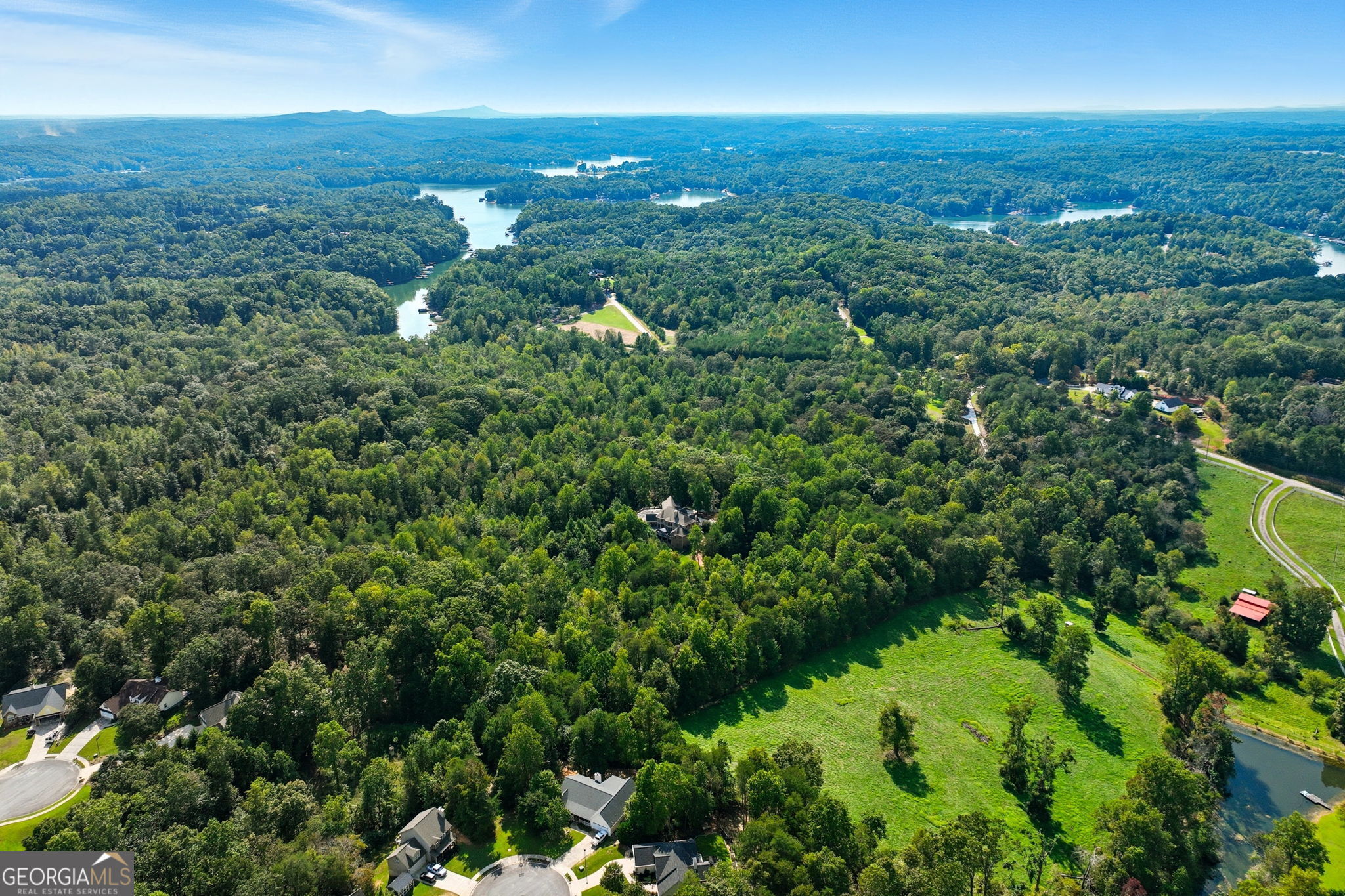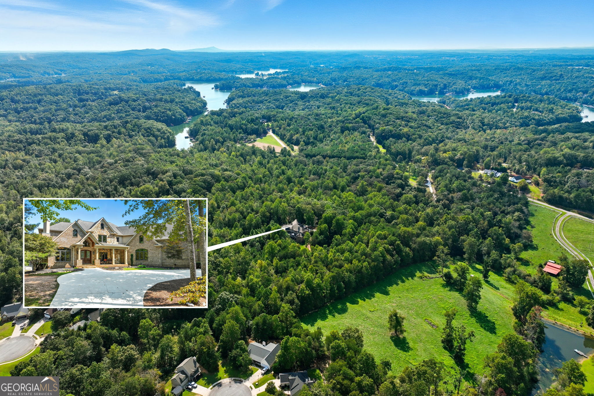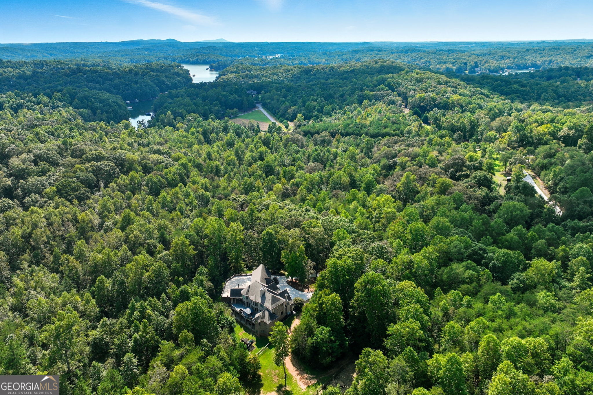 Welcome to your dream estate on the northern end of Lake Lanier and located in Hall County. This exceptional 42 acre property offers unparalleled privacy and endless possibilities, making it a unique find. Here is your opportunity to enjoy 42 acres that borders the Corp of Engineers property of Lake Lanier and access to use the 300+ feet of shoreline, non-dockable, where you can easily launch your paddle boards and canoes for afternoon adventures. The centerpiece of the estate is a stunning 8,103 sq ft custom-built home that was built in 2007. The foyer welcomes you with an open view of the dining room and an invitation to travel up the gently curved staircase or to make your way into the living room, adorned with natural light. Step inside to discover the inviting and airy interior with expansive floor-to-ceiling windows in the living room that cascade the space with natural light, built-in bookcases, and a fireplace. Here you can access the expansive back deck to soak up some sunlight or relax under a covered seating area and enjoy the breeze. As you walk toward the kitchen, the natural wood touches throughout and the detailed cabinetry welcomes you to a spacious kitchen with plenty of room to entertain. Off the kitchen, a keeping room provides a cozy yet sophisticated atmosphere with built-in bookcases, large windows, and another fireplace. Also located on the main level, you will be drawn to an exquisite primary suite complete with a fireplace and spacious en suite with separate custom vanities, a jetted spa tub, and a fully tiled shower. You can access the office/library from the primary suite or the foyer. Move from floor to floor with ease on an elevator, accessing all levels of the home. Upstairs, you will find 3 additional bedrooms and 3 roomy bathrooms, and to complete the upstairs, there is a large flex room and semi-private reading nook. Now, let's head down to the lower level, sit back, and enjoy the movie theater experience with a projector and multi-level seating options, and there's plenty of room for your family gatherings and a designated game room or workspace. Here you also have easy access to the lower patio with endless outdoor seating and entertaining options, a hot tub, and in the fenced backyard, you will find a child's swing set and plenty of room to run, play games, and enjoy. At the gated entrance of this property, there is a fenced area with a small shed for feeding livestock, and near the back of the home, you will find another perfectly fenced area for small livestock to roam, as well as a building complete with power suitable for storing a large RV, off-road vehicles, and mowers. This home is also equipped with a backup generator. Conveniently located just 12 miles from downtown Gainesville, 9 miles from the North Georgia Premium Outlets in Dawsonville, 30 miles from Alpharetta, and 59 miles from Hartsfield-Jackson Atlanta Airport via GA-400, this property allows you to enjoy the peaceful seclusion of nature while still being close to many essential amenities. Whether you're seeking a peaceful retreat, a hobby farm, or an investment opportunity, this property is ready to deliver! Property is under Hall County Timber Conservation until December 2031.