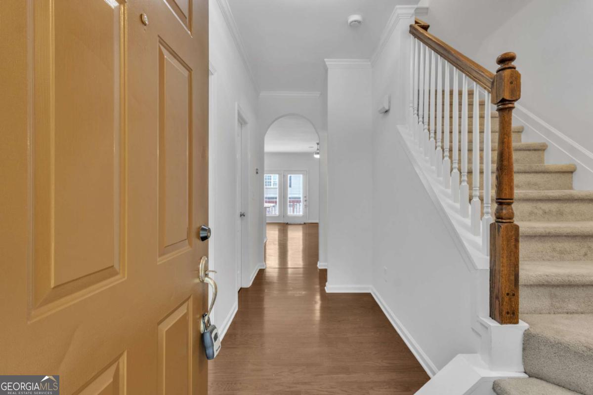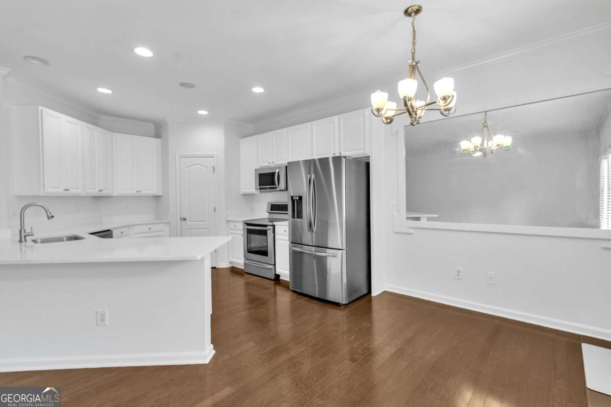 Welcome to the heart of Smyrna where we have this beautiful townhouse close to everything, Braves Stadium, eateries, Cumberland Mall are just around the corner. This is a 3 bed 3 bath house with a huge bonus room. Fresh paint, new carpet in the lower level, new light fixtures, beautiful quartz countertop and white cabinets in the kitchen. Step into this open floor plan house all hardwood floor on the main level, kitchen with all SS appliances and onto a huge deck for your entertainment. Upper level you have the roommate floor plan with first room with a huge closet, bathroom with a huge tub and separate shower. Secondary bedroom spacious room, closet and huge tub/shower combo. The lower level is a great open space, a bonus room that could be used as desired man cave, gym, office media room. Two car garage painted. A must see and i tell you don't miss it.
