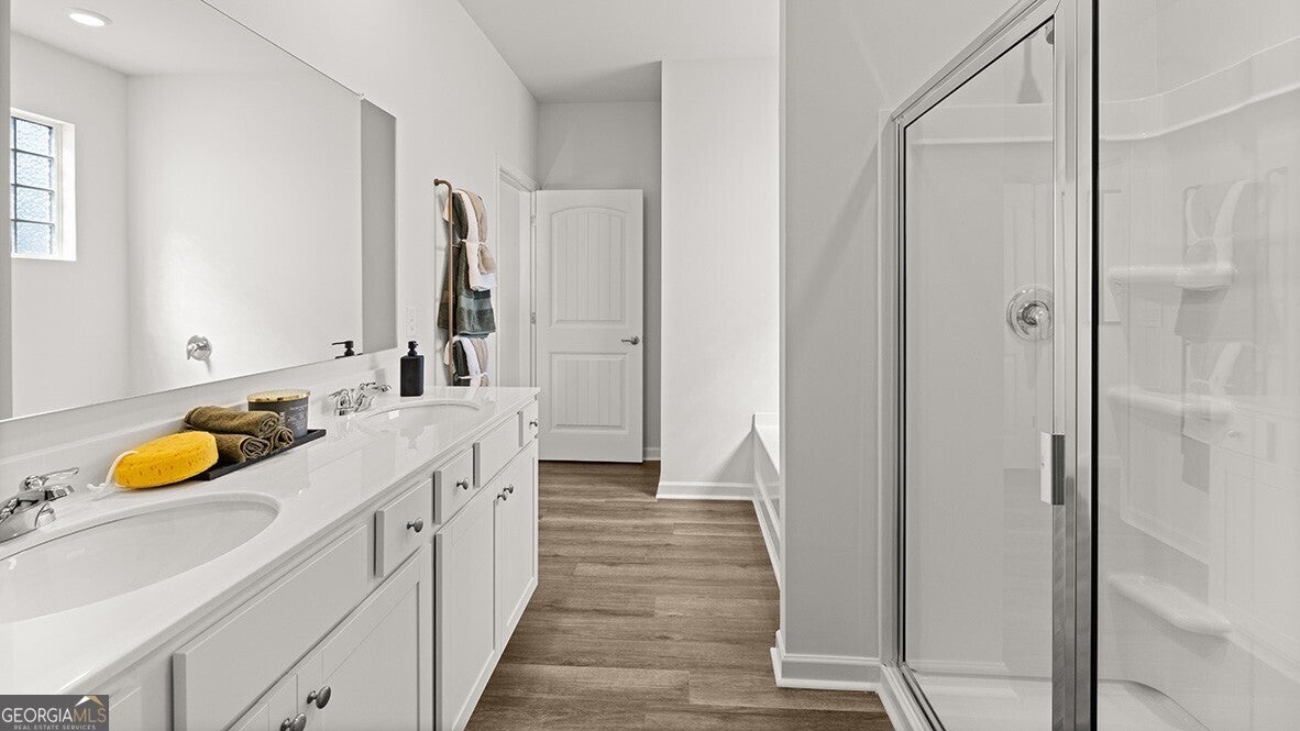 Now available the North Paulding High school district and ready to move in at the Lost Creek community in Dallas, Georgia, is 509 Majestic Oak Circle, a new construction, ranch plan home! The Booth floorplan offers homeowners plenty of space to gather with family and friends in the 1,891 square feet. Step from the covered front porch into the front foyer, with a convenient coat close. Immediately to the right at the end of the foyer are where the 2 additional bedrooms are located. Each bedroom is equipped with a walk-in closet and window for good natural lighting. Enjoy easy access to the dual vanity bathroom also located in this area of the home. Stepping back out to the open main living area, you find a large kitchen island offering bar seating for quick meals or talking with family while cooking. The chef in your family will enjoy all the kitchen as to offer, including stainless-steel appliances, granite countertops, and tile backsplash. A dining room is situated off the kitchen with easy access to the large covered back porch. The laundry room is located directly off the mud area with easy access into the 2-car garage. Homeowners can relax and enjoy all that the large primary suite has to offer, including a large walk-in closet and luxurious primary bathroom. The primary suite bathroom features a separate soaking tub and walk-in shower, dual vanity, and separate water closet. If 509 Majestic Oak Circle sounds like a dream come true, call us today at Lost Creek to come visit us in Dallas, GA!