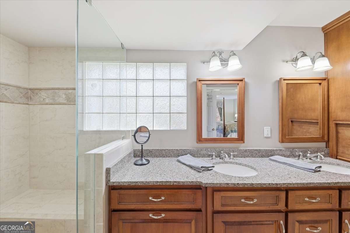 Discover this beautifully upgraded, four-sided brick home, nestled on a 0.59-acre Corner lot, in the desirable Pine Ridge Country Club Estates. With 4 bedrooms, 3 full bathrooms, a possible 5th bedroom (oversized Bonus Room w/ new light fixtures & its own back staircase leading to the garage) & over 3,000 sq ft of thoughtfully designed living space, this home offers comfort, elegance & room to grow. Master Suite on Main: The spacious primary bedroom is located on the main floor for ease and convenience. 2nd Master suite on upper level. Recently Renovated Bathrooms: All 3 full baths have been beautifully upgraded w/ modern finishes. The primary bath includes a walk-in shower & Quartz Cambria countertops. Gourmet Kitchen: Features quartz Cambria countertops, double wall ovens, a warming drawer & new custom solid-wood cabinetry with pull-outs - blending style & function. Elegant Flooring: Hardwood floors in the kitchen, family room & primary bath. A formal living room & dining room, both outfitted w/ custom wood blinds, create a refined feel. Cozy Family Room: A brick masonry fireplace anchors a warm, welcoming family room - ideal for relaxing or entertaining. Luxurious Closets: (3) Walk-in closets feature a custom closet system for maximum organization. The entire upstairs was freshly painted in 2025. Basement Storage & Potential: The full, waterproofed basement gives you tons of storage space plus potential for future finished living areas. Modern Systems: Includes 2 HVAC units with Safeguard filter systems & a newly updated septic system (May 2023). Just added: a NEW ROOF in October 2025. Outdoor Living: A covered back porch overlooks a professionally landscaped, fenced backyard w/ stairs leading to the yard -wooded lot for extra privacy, a serene space for family & entertaining. Garage Upgrades: The garage features a newly finished epoxy floor (2024) - both durable and stylish. No HOA: Enjoy the freedom of living w/out homeowners association restrictions. Neighborhood Perks: Part of Pine Ridge Country Club Estates, this home benefits from a quiet, established community w/ lush landscaping & mature trees. Convenience: Just minutes away from shopping, dining & attractions - including Mall of Georgia, a major shopping destination in the Buford-Lawrenceville area.