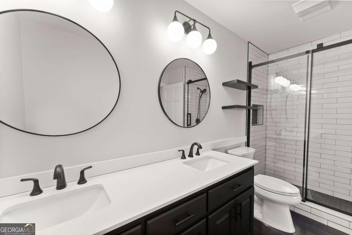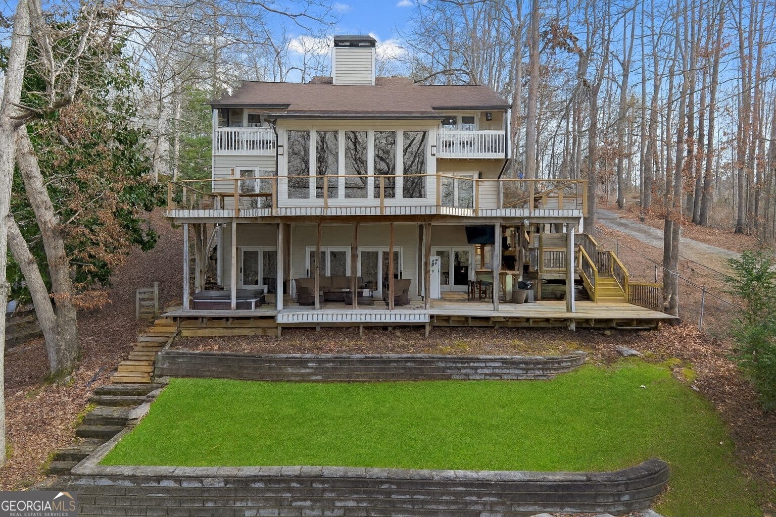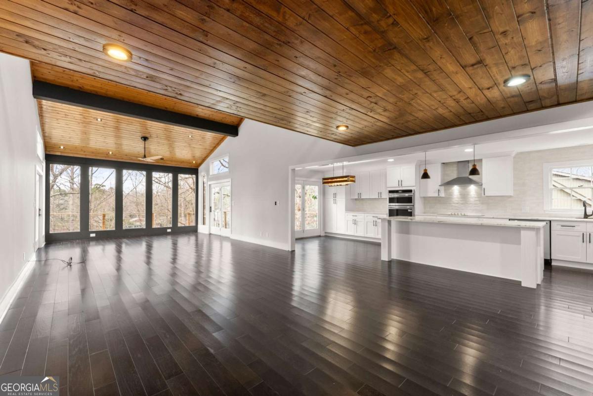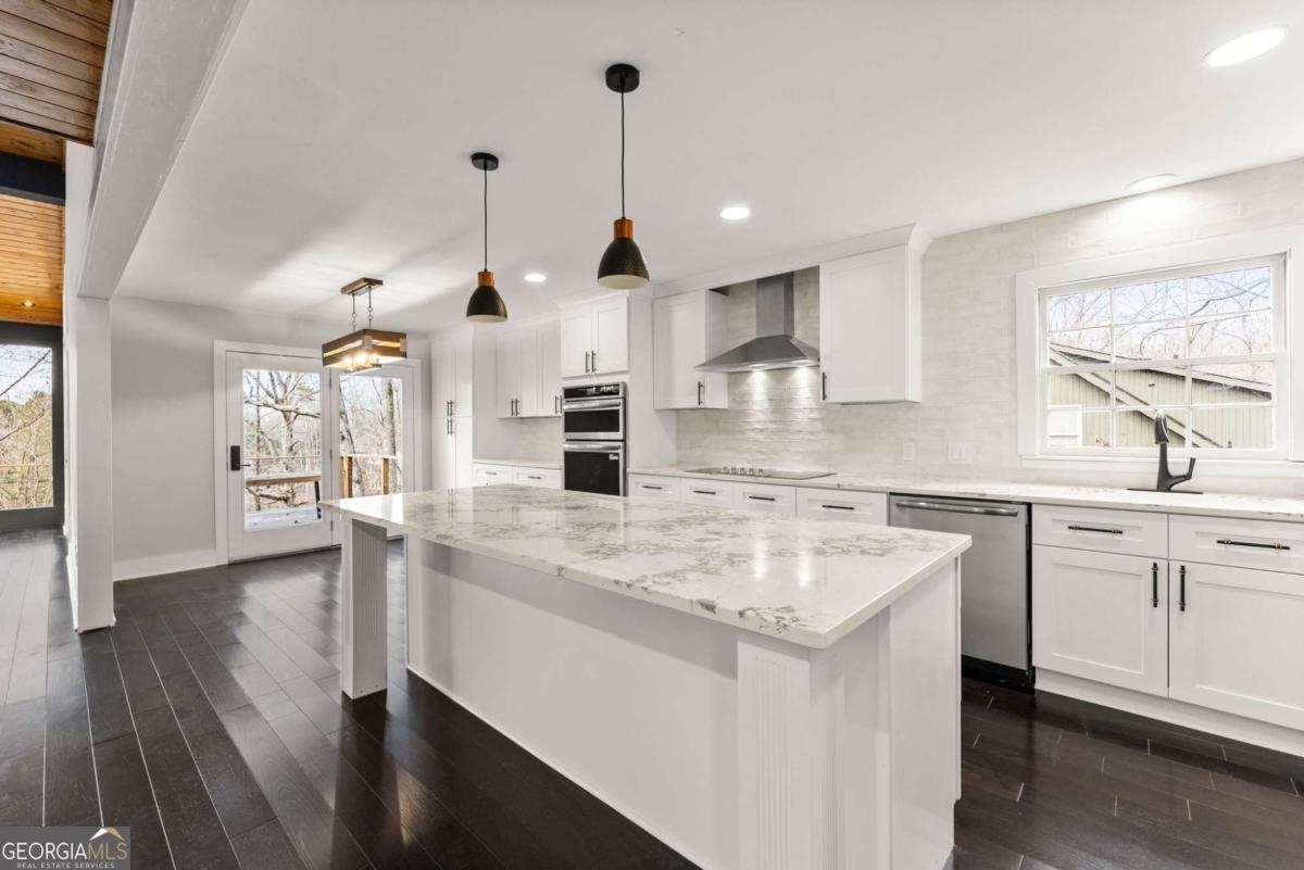 Discover the perfect Lake Lanier retreat-move-in ready, beautifully updated, with a DEEP WATER single slip DOCK just steps from your back door! Eligible for short-term rental, this 4-bedroom, 4-bath home combines lakefront living with modern comfort, featuring a full finished basement with room for another bedroom, multiple outdoor living spaces, and year-round water views. Step inside to a bright, brand-new kitchen complete with abundant counter space, custom cabinetry, new stainless steel appliances, granite countertops, and a wine refrigerator-ideal for entertaining. The stunning two-story living room showcases tongue-and-groove wood ceilings and large windows that frame views of the lake. The main level includes a bedroom and a beautifully updated bathroom. You'll enjoy NEW wood floors on the main and second floor and LVP throughout the terrace level-no carpet anywhere. Upstairs, the oversized primary suite feels like a true retreat with a spa-inspired bathroom featuring a huge walk-in shower and new vanity along with two additional bedrooms, a spacious loft and a full bathroom. The full finished basement expands your living space with a bar, refrigerator, game room area, secondary living room, and a dedicated storage room-perfect for entertaining, guests, or maximizing STR occupancy. Outside, you'll fall in love with the sunken hot tub on the covered back porch, ideal for enjoying cool evenings after a day on the water. Multiple decks offer plenty of outdoor living space with new wire railings designed to preserve unobstructed views of Lake Lanier from the porch, and the deep-water single-slip dock provides effortless lake access year-round. A separate shed provides great storage for lawn equipment or lake toys. Located in a quiet, peaceful neighborhood with plenty of parking-2-car garage, driveway, and additional roadside parking-this home offers freedom and flexibility with No HOA and excellent short-term rental potential. Whether you're seeking full-time lake living, a weekend getaway, or a STR investment, this Lake Lanier home truly has it all.