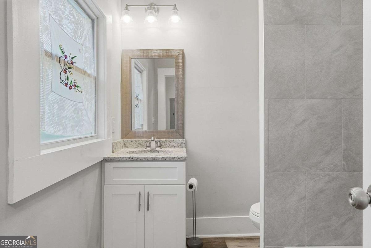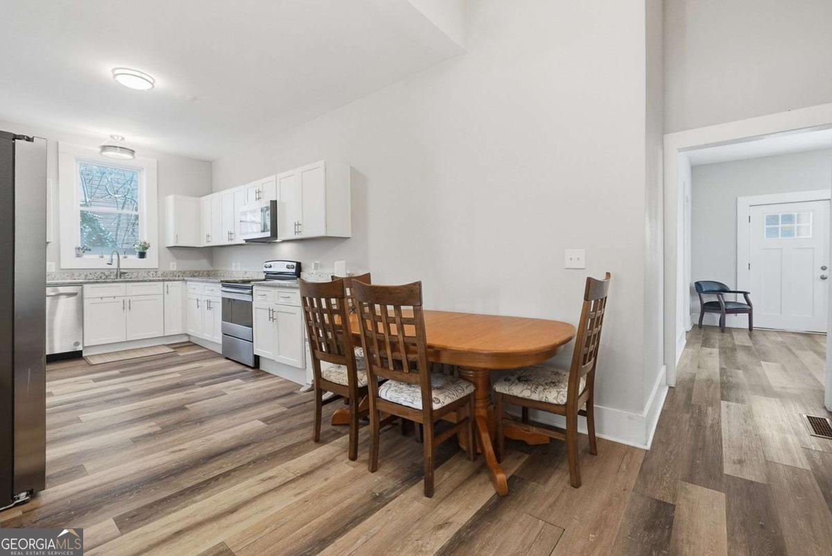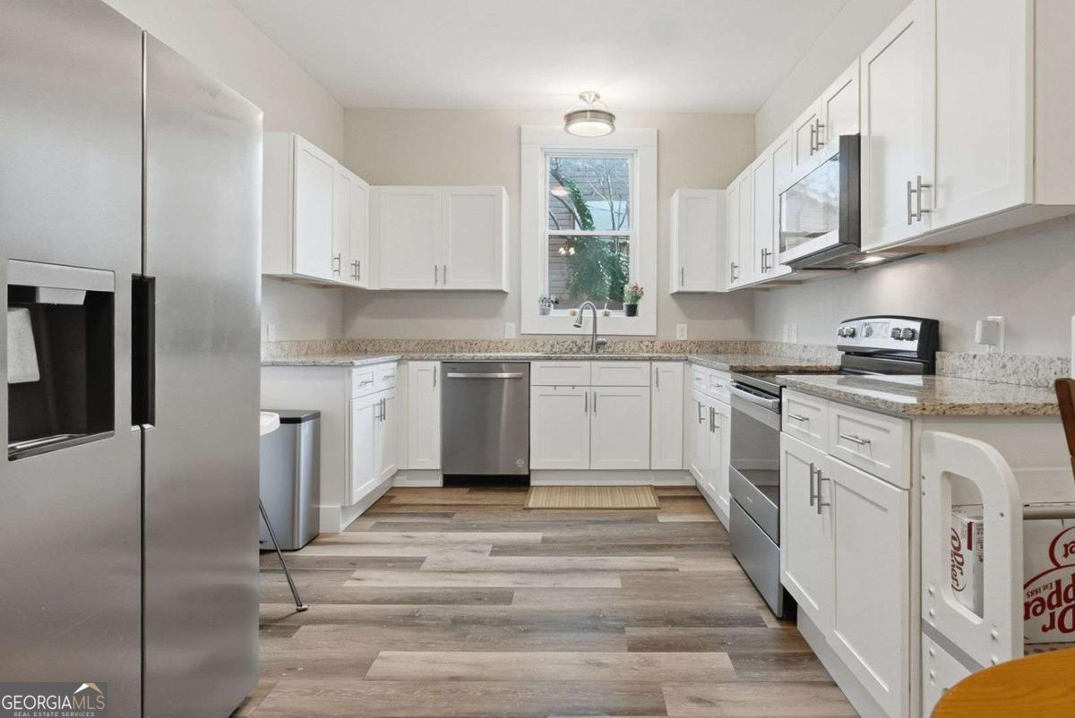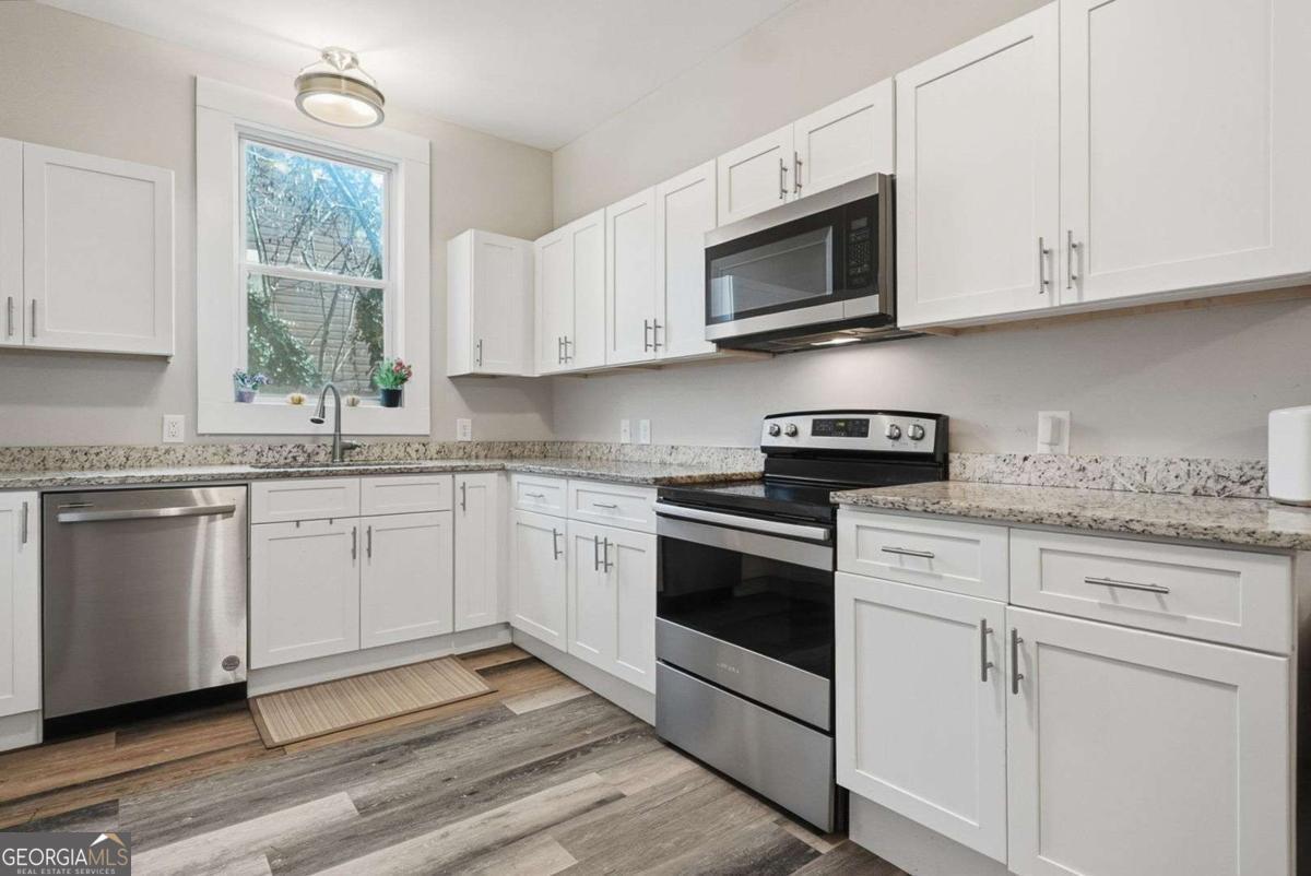 Step into the charm of this 1915 bungalow with all the comforts of a brand-new home at 18 Butler Street, perfectly located just minutes from everything downtown Rome has to offer. This beautifully renovated 3-bedroom, 2-bath home pairs soaring 10-foot ceilings with fresh, modern finishes to create a bright and airy feel from the moment you walk through the door. The inviting front porch leads into an open living and dining area featuring new flooring, neutral paint, and updated lighting that make decorating effortless. The fully updated kitchen shines with white soft-close cabinetry, granite counters, and all stainless-steel appliances included. The spacious primary bedroom features ample closet space and a private, updated bathroom. Both additional bedrooms are nicely sized and share a stylishly remodeled full bath. A dedicated laundry space, updated systems, and a newer roof add peace of mind, while the level lot provides plenty of yard space for pets, play, or a future fire pit and garden. Just minutes to downtown Rome's restaurants, shopping, and parks, this fully updated in-town cottage is the perfect blend of historic character and fresh, move-in-ready style.