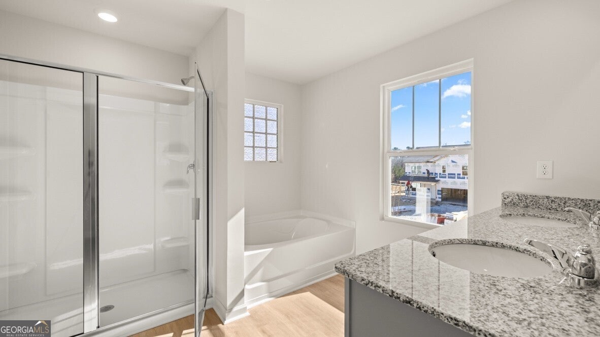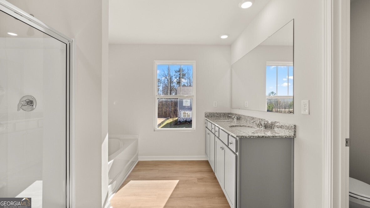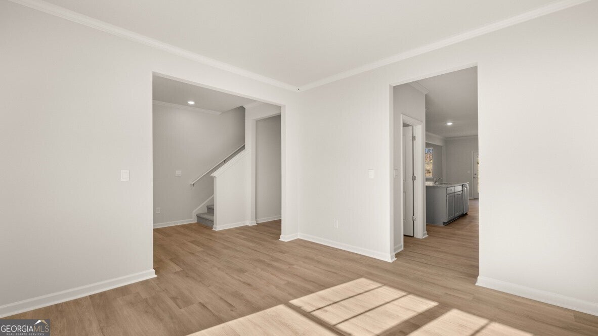 Welcome to South Wind a new community in Union City, GA and home to 6079 Airedale Drive! This Halton floorplan home is easy to fall in love with all the space offered. This plan offers 5 bedrooms and 3 bathrooms in 3,209 with a 2-car garage. A spacious foyer leads you into the home, with access to the stairs, a hallway leading into the living room, and an entryway into the flex room at the front of the home. Through the flex room you'll enter a butler's pantry that connects to the and provides access to the roomy walk-in pantry. The large kitchen feels boundless with seamless flow into the attached dining area and adjacent living room. Stainless steel appliances, an oversized island, and bountiful counterspace make this kitchen a chef's dream. A bedroom and full bathroom round out the main living area. At the top of the stairs, you will find another living area. On one side, there are three secondary bedrooms and a bathroom with double vanity and a linen closet. On the other side, the primary suite sprawls from the front of the home to the back, boasting a roomy bedroom with its own sitting area, two large walk-in closets, and a primary bathroom with double vanity, separate soaking tub and shower, and a water closet. An ample laundry room completes the second level. Call your agent today to learn more about this beautiful plan and how to make 6079 Airedale Drive your new home! Photos are representative in nature and do not depict actual home listed. Features may differ.