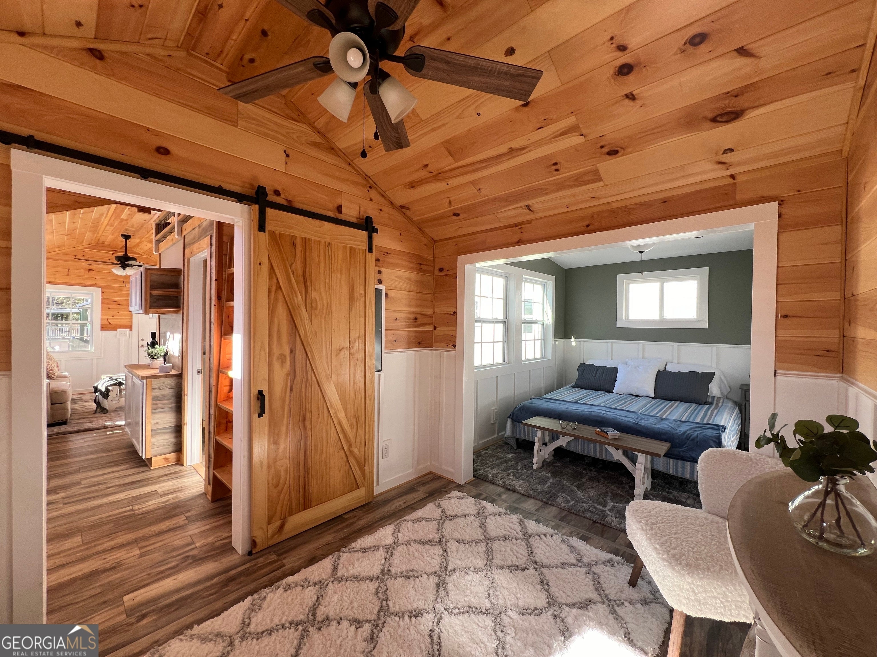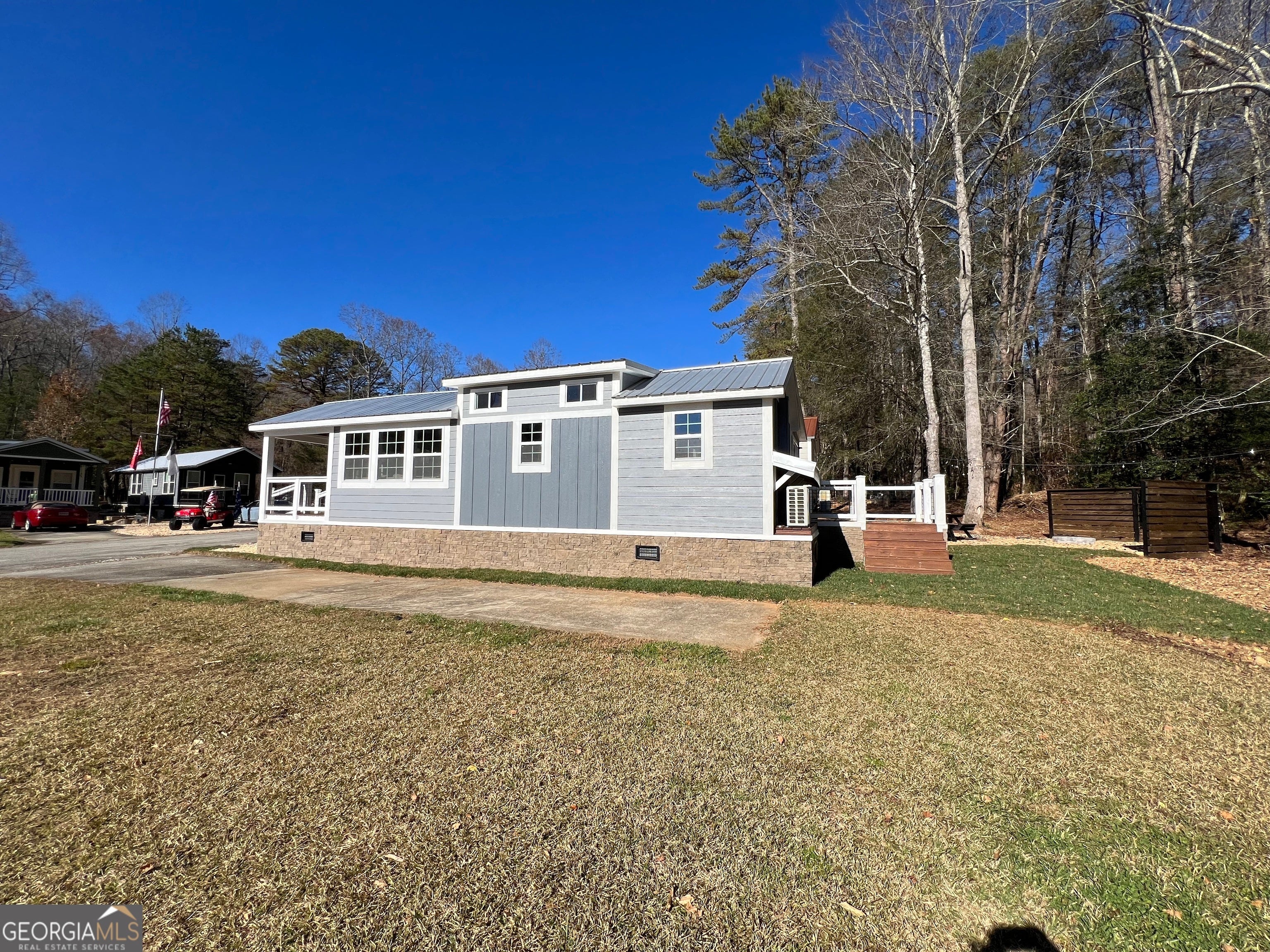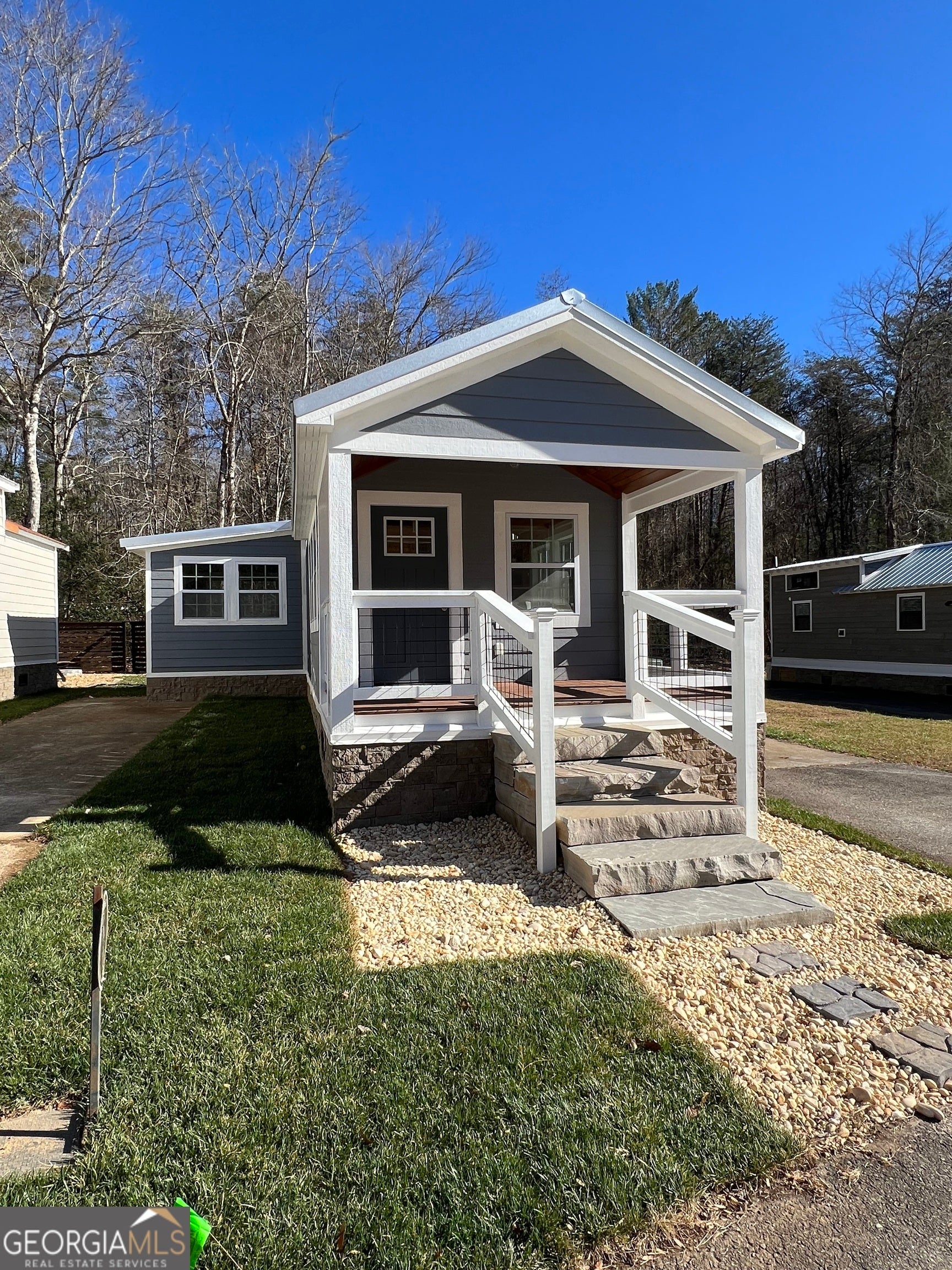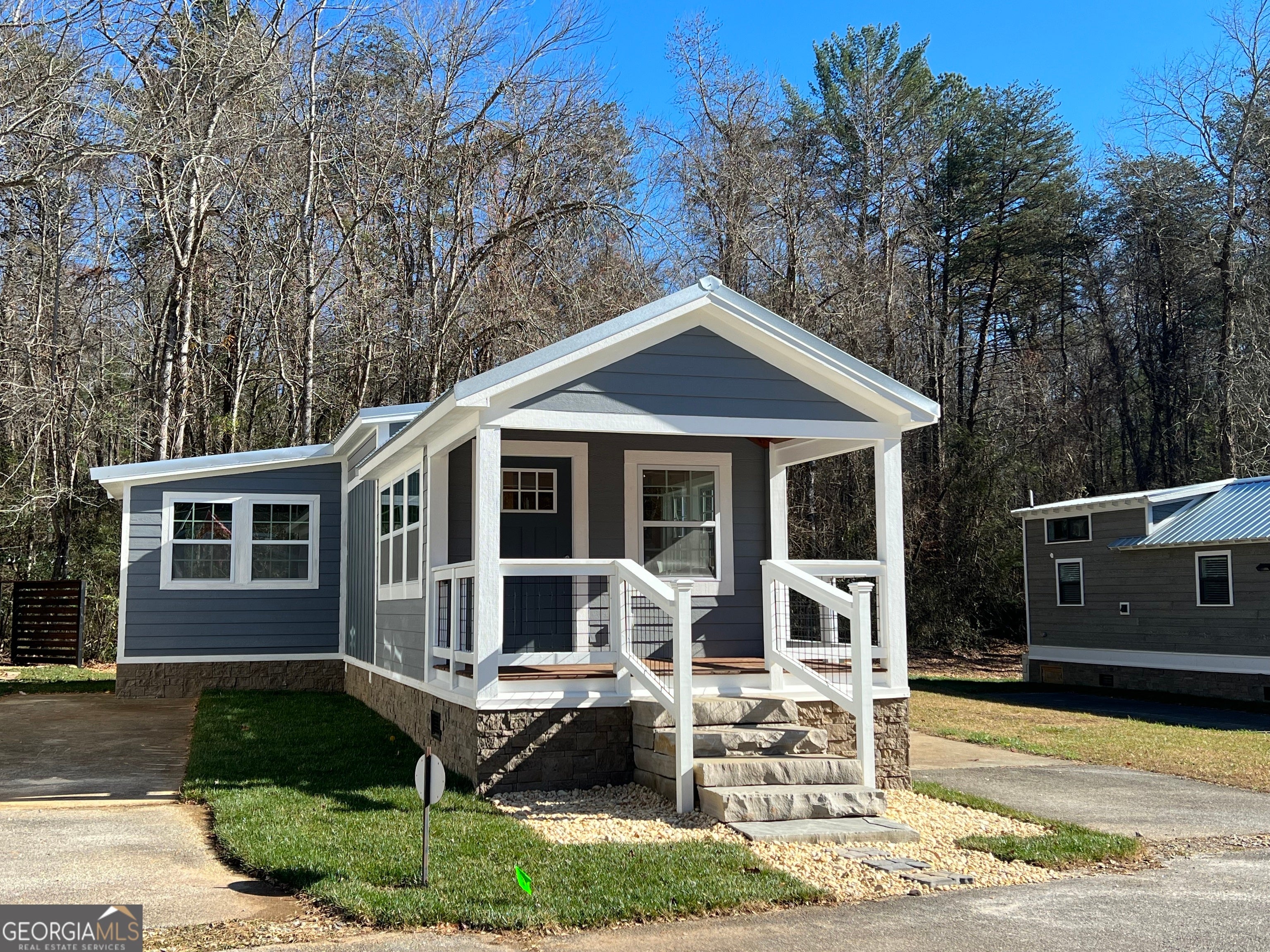 This custom "magnolia" titled Park Model RV brings tiny living to an all new level. Featuring spacious open concept Living, small loft, and added 10X10 room off the master with private deck.The front porch is perfect for enjoying quiet evenings in this lovely community. Fiber internet has just been installed. Conveniently located near Lake Burton, Laprades Marina, Moccasin Creek State Park, several "local" restaurants and perfectly situated between Clayton, Helen, and Clarkesville, Georgia. Whether you are looking to travel and have a place to call home, have a possible income producing property or prefer a safe full time neighborhood, Sugar Mill Creek community is sure to impress offering gated, coded access, beautiful creek, dog park, clubhouse and fire pits. $598.08 lot lease which includes all of the above as well as water, septic, grounds maintenance, trash and more.