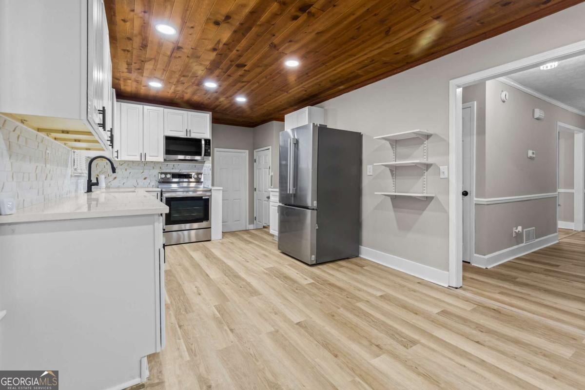 MOVE-IN READY, LIKE NEW! 800 Post Road Ln is a beautifully updated 4-bedroom, 2.5-bathroom two-story home sits on a corner lot in the Mainstreet community, which offers a pool, tennis courts, and clubhouse. The home features a new kitchen, bathrooms, flooring, paint, lighting, and appliances, with LVP, carpet, and tile throughout. Modern kitchen details include wood-textured ceilings, recessed lighting, abundant cabinet space, and a breakfast nook, flowing seamlessly into the family room with a fireplace and designer trimmed accent wall. Enjoy formal dining and living areas, while the upper-level primary suite boasts barn doors opening to a bathroom with dual sinks and a walk-in shower. All bedrooms have carpet and ceiling fans. Outside, relax on the huge hardwood deck or the covered rocking chair front porch, shaded by mature trees for added privacy. HVAC is 2 years old and the roof is 5 years old. Conveniently located near Walker Road and Mainstreet Park Road off S. Stone Mountain Lithonia Road in Stone Mountain, GA. Schedule a tour today to see this exceptional home! Discounted rate options and no lender fee future refinancing may be available for qualified buyers of this home.
