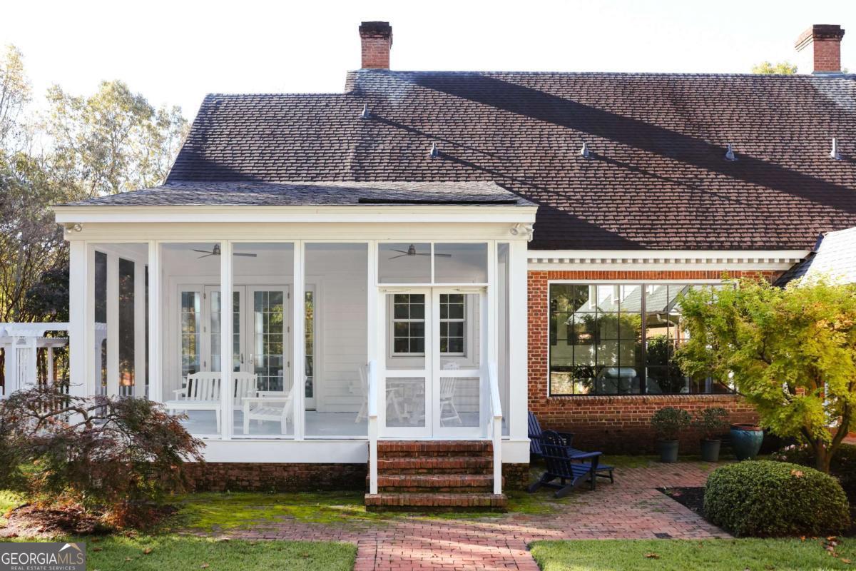 Set on 14 privatSet on 14 private acres, this Williamsburg-inspired estate offers architectural charm and beautifully designed grounds created by a UGA landscape architect. Gardens, terraces, a large pool, and a covered outdoor grilling pavilion create a setting ideal for outdoor living. Inside, floor-to-ceiling windows bring natural light and views of the property into the main-level primary suite, living areas, and gourmet kitchen-an exceptional space for entertaining. A screened porch overlooks the garden terrace, and the property is fully enclosed by a discreet deer fence that protects plantings and vegetable beds without interrupting the views. The home has been meticulously maintained and includes a three-car garage with an upper-level guest or in-law suite. A rare opportunity to own a serene, magazine-worthy estate with timeless character and exceptional privacy.