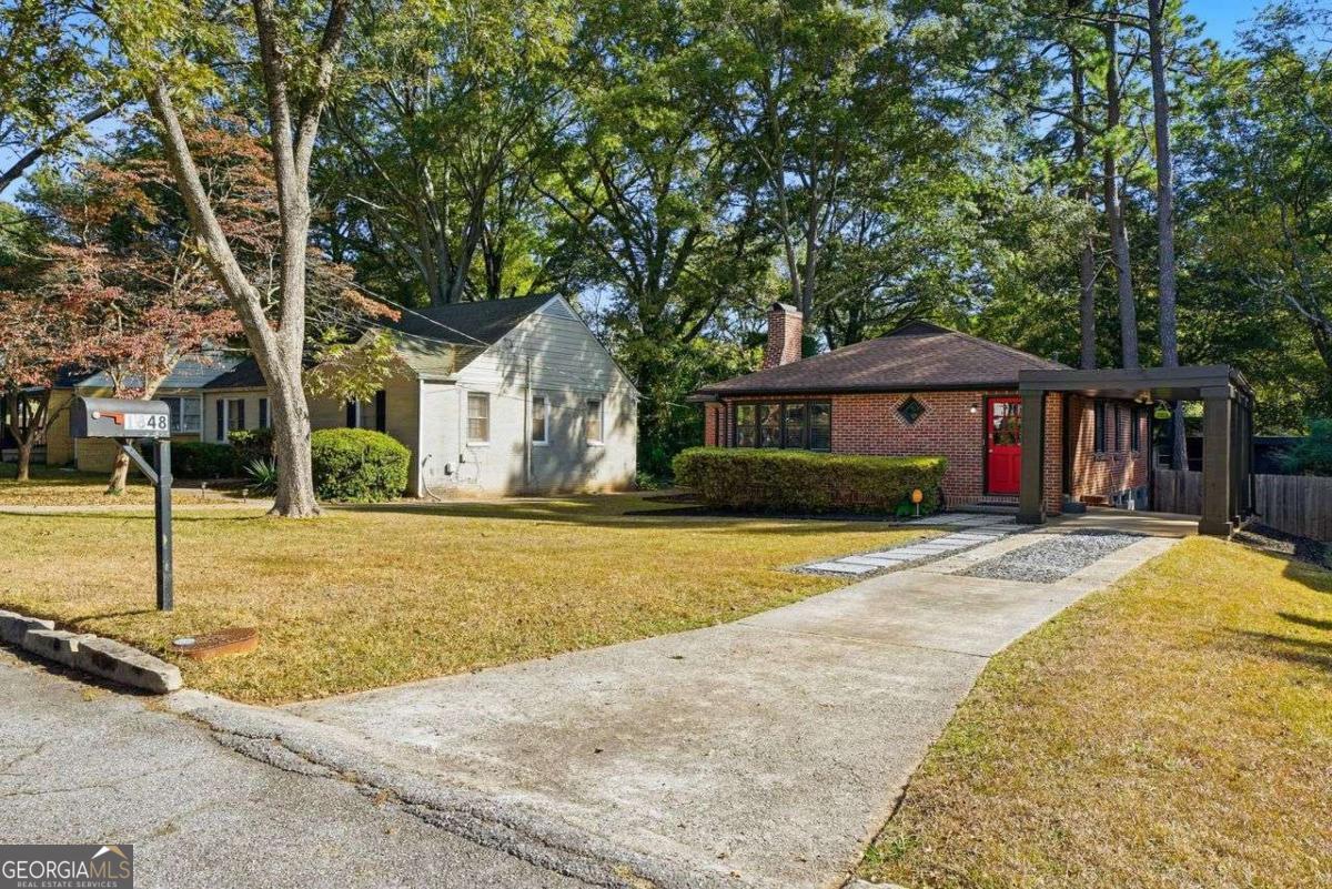 Welcome to 1848 Brandywine St SW, a turn-key gem in Sylvan Hills where classic 1950s charm meets ultimate modern entertainment. This striking, four-sided brick ranch makes an immediate statement with its enhanced curb appeal, accented by a bold red front door and elegant black trim against the exterior. Inside, the functional 3-bedroom, 1-bathroom home spans 1,149 square feet and features gleaming original hardwood floors throughout. The interior is filled with great natural light, maintaining a sophisticated, neutral aesthetic and a crisp, move-in ready atmosphere. The cozy family room is centered around a charming, decorative fireplace. The true highlight of this property is the incredible outdoor oasis: a private, fully fenced-in backyard featuring a gathering-ready raised fire pit and a massive, custom-built 500+ square foot covered patio. Designed as a spectacular outdoor living room, this space is fully equipped for epic entertaining, boasting a custom-built sectional with custom cushions, a high-definition projector with a 15-foot powered screen for movie nights, two remote-controlled ceiling fans, and six dedicated power outlets. This home offers unparalleled lifestyle and convenience, situated just moments from the BeltLine, the vibrant Lee + White food and brewery district, the under-renovation John A. White Golf Course, Perkerson Park, and Tyler Perry Studios. Enjoy easy access to major downtown attractions like Mercedes-Benz Stadium (MBS), State Farm Arena, and the exciting Centennial Yards development. Commuting is a breeze with quick access to MARTA and all major interstates, including I-20, I-75, I-85, and GA-166, all while maintaining close proximity to Hartsfield-Jackson Atlanta International Airport. This is the perfect charming brick home for the owner who loves to entertain and demands prime connectivity.