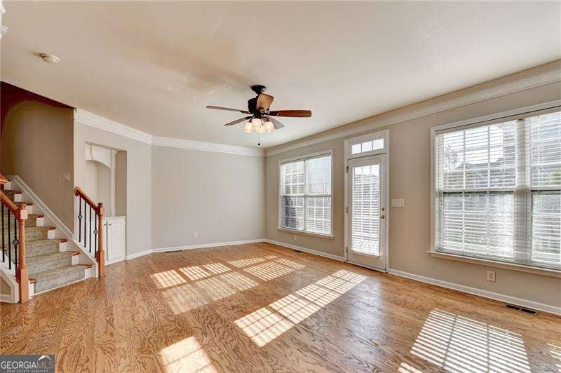 Gorgeous sun-filled corner unit in the gated community of Abbotts Bridge Place, featuring 4 bedrooms and 3.5 baths, including a spacious terrace-level suite with a full bath. This end-unit offers one of the community's best floorplans with abundant natural light, warm hardwood floors on the main level, a freshly painted interior and deck, new carpet, and an open kitchen with granite countertops, stained cabinets, and view to the family room. Enjoy a private deck overlooking a walk-out backyard, a large walk-in closet in the master bedroom, and exceptional community amenities including swim, tennis, playground, guest parking, and includes water, landscaping, and trash. Perfectly located near restaurants, groceries, Johns Creek Emory Hospital, Regal Cinemas, and top-rated North Fulton schools-Northview High, River Trail Middle, and Wilson Creek Elementary-this home offers unmatched convenience and comfort. Hurry before it's gone!