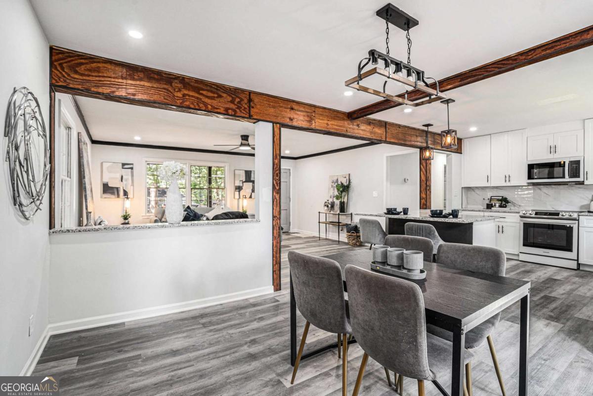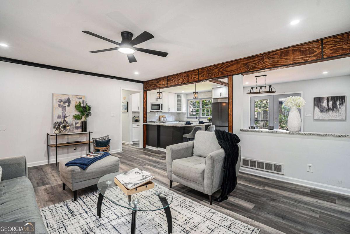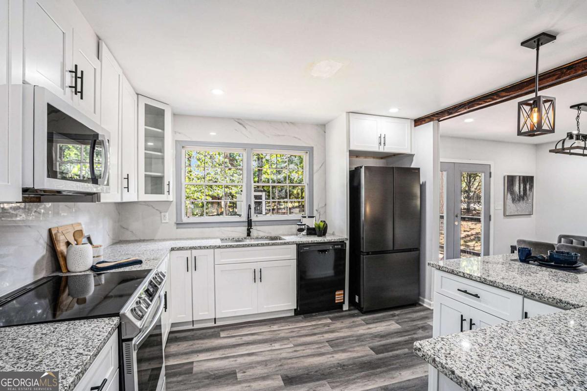 GORGEOUS, MODERN RENOVATION! OPEN CONCEPT floor plan welcomes you into the spacious living room with a cozy fireplace. Enjoy the Chef's kitchen surrounded by white cabinets, breakfast bar seating, granite countertops, elegant marble backsplash, and stainless steel appliances. Through the French doors, discover the beautiful new deck and fenced backyard with storage shed, perfect for entertaining, playing, or relaxing. Relax in your primary bedroom retreat with tray ceiling, ceiling fan, and an attached bathroom. The 2 car carport and large, level driveway allows ample room for parking for friends, family & guests. Walking distance to Snapfinger Elementary! $5,000 TOWARD RATE BUY DOWN/BUYER'S CLOSING COSTS!