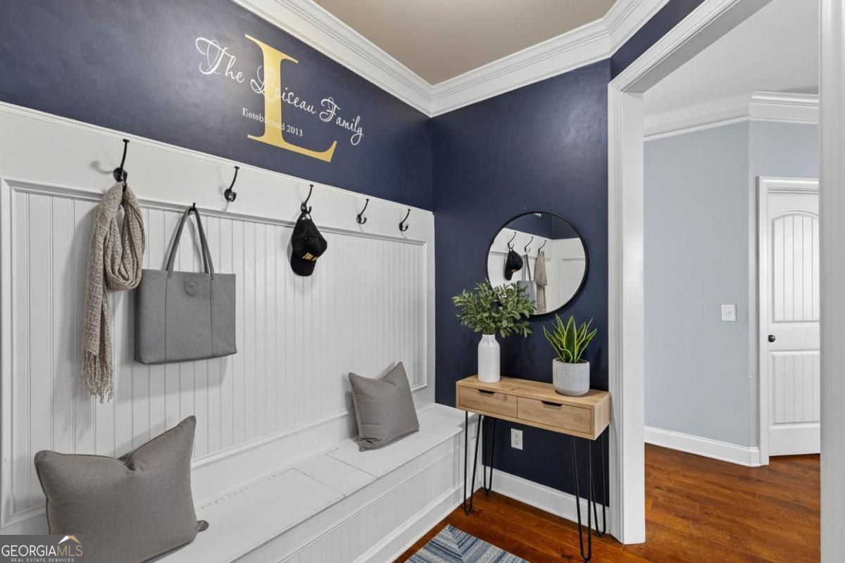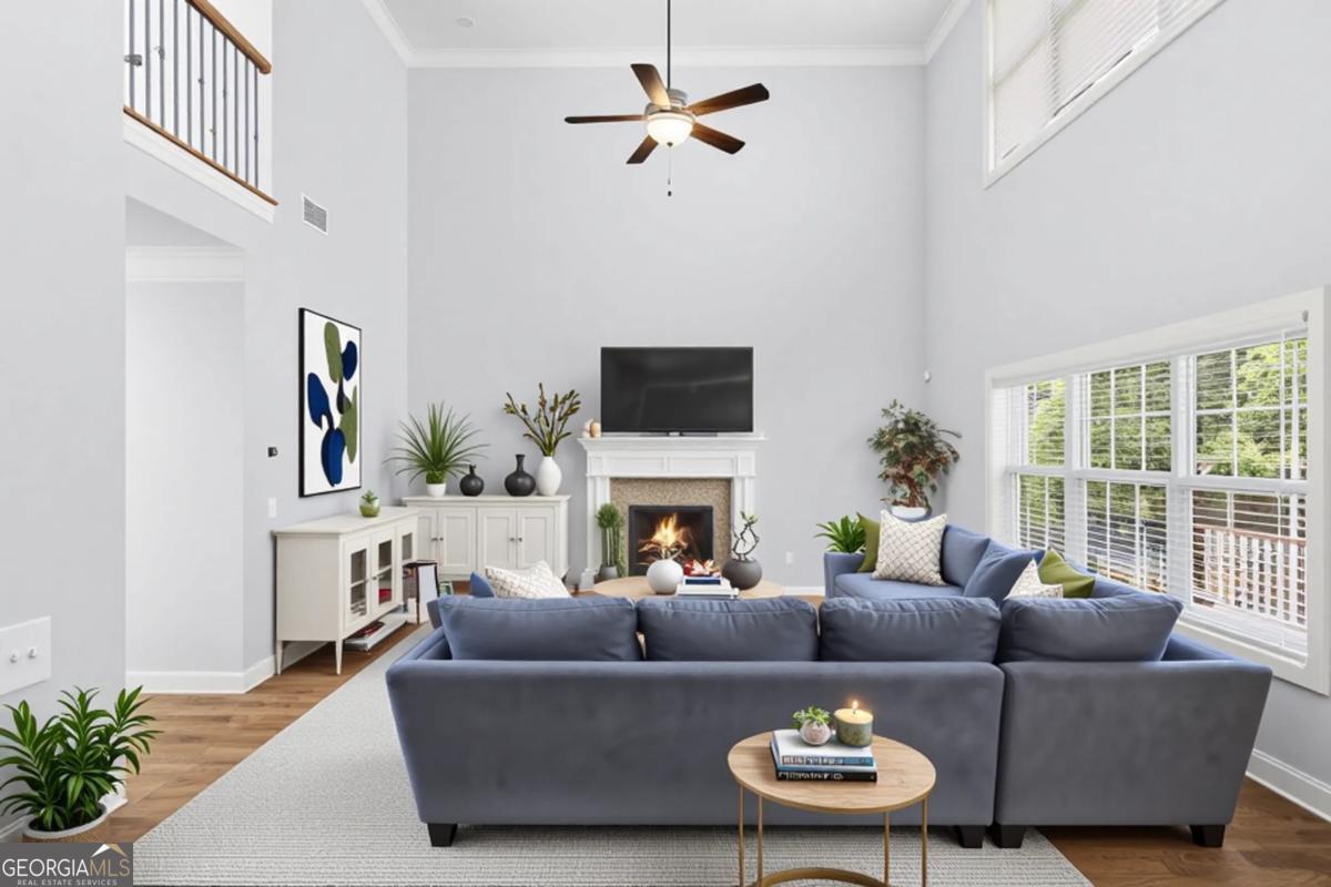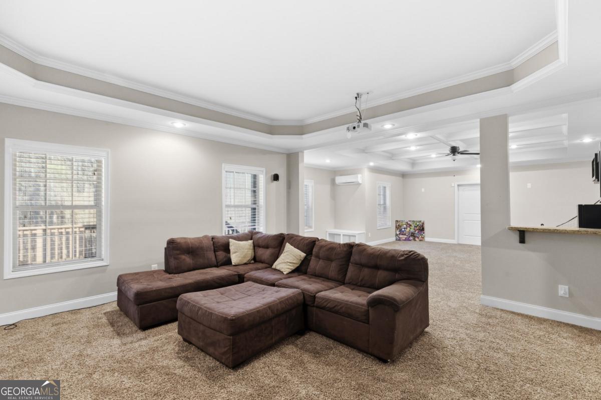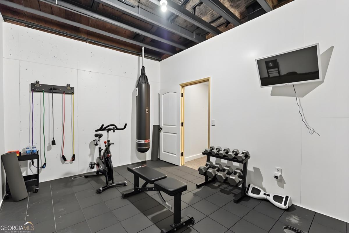 Discover a rare 1-acre retreat in a desirable Swim/Tennis community and the top-rated Grayson High School district. This beautifully updated home on a full finished basement offers a bright, open layout with soaring ceilings and an expansive eat-in kitchen with island overlooking the fireside family room. A mud room and custom built-ins add everyday convenience. Step onto the two-level deck to unwind, and enjoy the peaceful wooded views. The main level features a true en-suite bedroom plus an additional half bath, separate coffered ceiling dining and spacious living room. The finished terrace level includes a dedicated Home Gym, Media Room with projector, full bath, entertainment area, and a versatile flex room ideal as an office or bedroom. The private-entry workshop is perfect for tools, hobbies, or storage. Set on a full acre with mature landscaping, this home offers privacy while remaining close to Bay Creek Park, Tribble Mill Park, The Shoppes at Webb Gin, The Grove at Towne Center, Hwy 124, and Sugarloaf Pkwy. If you're looking for land, space, upgraded interiors, and a finished basement in one of Grayson's best locations, this home has it all.