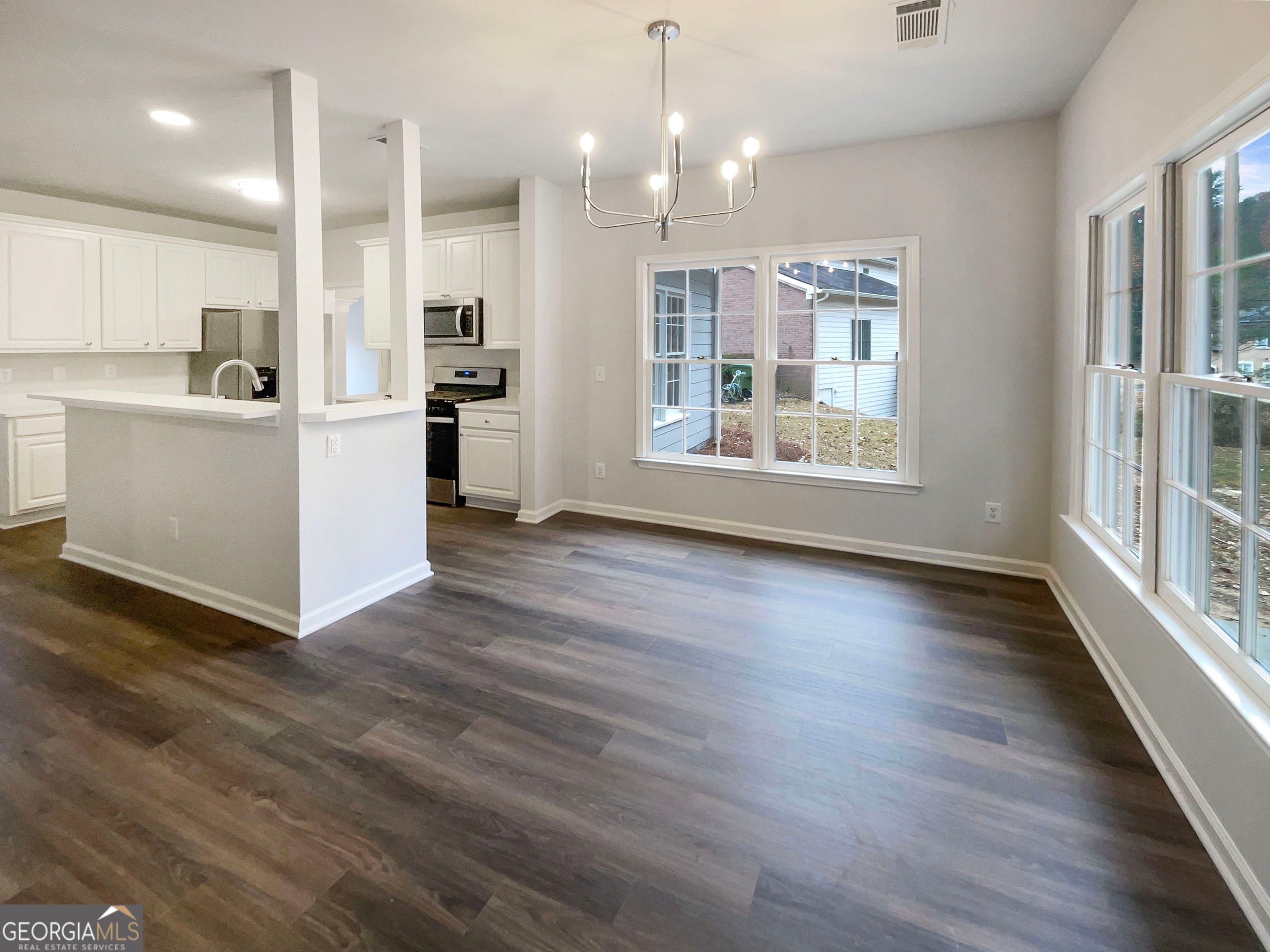 Discover this beautifully remodeled 4-bed, 2.5-bath traditional home in the quiet, desirable Niskey Lake Cove community. With a classic stucco exterior and fresh updates throughout, this home is truly move-in ready. Enjoy new LVP floors on the main, fresh interior paint, and an airy all-white open-concept living room and eat-in kitchen filled with natural light. The kitchen features a stylish farmhouse sink and the perfect flow for everyday living. Upstairs, all bedrooms offer brand-new carpet, and the oversized owner's suite impresses with tall ceilings, a relaxing soaking tub, dual vanity, and an expansive walk-in closet. Close to Cascade Springs Nature Preserve, Camp Creek Marketplace, and nearby dining and shopping, this home blends comfort, style, and convenience. Come see why this one stands out!